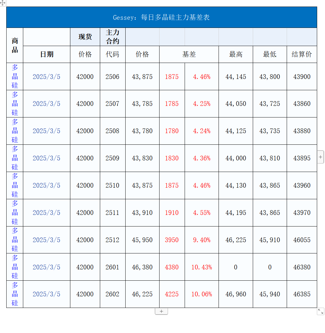 現貨(huo)市場(chang)價格變動: 多晶硅: 今(jin)日硅(gui)料(liao)價格(ge)(ge)整體維穩(wen),N型料(liao)主(zhu)流(liu)價格(ge)(ge)在(zai)(zai)40-45元(yuan)(yuan)(yuan)(yuan)(yuan)/公(gong)(gong)(gong)(gong)斤(jin)(jin)(jin)(jin)(jin),均價42元(yuan)(yuan)(yuan)(yuan)(yuan)/公(gong)(gong)(gong)(gong)斤(jin)(jin)(jin)(jin)(jin)。N型顆粒硅(gui)主(zhu)流(liu)價格(ge)(ge)在(zai)(zai)38-40元(yuan)(yuan)(yuan)(yuan)(yuan)/公(gong)(gong)(gong)(gong)斤(jin)(jin)(jin)(jin)(jin),均價39元(yuan)(yuan)(yuan)(yuan)(yuan)/公(gong)(gong)(gong)(gong)斤(jin)(jin)(jin)(jin)(jin)。國(guo)產復投特級硅(gui)料(liao)主(zhu)流(liu)價格(ge)(ge)在(zai)(zai)33-36元(yuan)(yuan)(yuan)(yuan)(yuan)/公(gong)(gong)(gong)(gong)斤(jin)(jin)(jin)(jin)(jin),均價35元(yuan)(yuan)(yuan)(yuan)(yuan)/公(gong)(gong)(gong)(gong)斤(jin)(jin)(jin)(jin)(jin),國(guo)產致(zhi)密特級硅(gui)料(liao)主(zhu)流(liu)價格(ge)(ge)在(zai)(zai)32-35元(yuan)(yuan)(yuan)(yuan)(yuan)/公(gong)(gong)(gong)(gong)斤(jin)(jin)(jin)(jin)(jin),均價34元(yuan)(yuan)(yuan)(yuan)(yuan)/公(gong)(gong)(gong)(gong)斤(jin)(jin)(jin)(jin)(jin)。 硅片: 今日硅片(pian)(pian)價(jia)格(ge)(ge)小幅上漲, 182mm單(dan)晶(jing)(jing)硅片(pian)(pian)主流(liu)現(xian)(xian)貨價(jia)格(ge)(ge)維(wei)持1-1.15元(yuan)(yuan)(yuan)/片(pian)(pian),均(jun)價(jia)1.08元(yuan)(yuan)(yuan)/片(pian)(pian)。210mm單(dan)晶(jing)(jing)硅片(pian)(pian)主流(liu)現(xian)(xian)貨價(jia)格(ge)(ge)維(wei)持1.6-1.7元(yuan)(yuan)(yuan)/片(pian)(pian),均(jun)價(jia)1.65元(yuan)(yuan)(yuan)/片(pian)(pian)。N型-183.75mm單(dan)晶(jing)(jing)硅片(pian)(pian)主流(liu)現(xian)(xian)貨價(jia)格(ge)(ge)維(wei)持1.15-1.18元(yuan)(yuan)(yuan)/片(pian)(pian),均(jun)價(jia)1.18元(yuan)(yuan)(yuan)/片(pian)(pian)。N型-210mm單(dan)晶(jing)(jing)硅片(pian)(pian)主流(liu)現(xian)(xian)貨價(jia)格(ge)(ge)維(wei)持1.5-1.55元(yuan)(yuan)(yuan)/片(pian)(pian),均(jun)價(jia)1.55元(yuan)(yuan)(yuan)/片(pian)(pian)。N型-210Rmm單(dan)晶(jing)(jing)硅片(pian)(pian)主流(liu)現(xian)(xian)貨價(jia)格(ge)(ge)1.3-1.35元(yuan)(yuan)(yuan)/片(pian)(pian),均(jun)價(jia)1.35元(yuan)(yuan)(yuan)/片(pian)(pian),上漲(zhang)3.85%。 電池片: 今日電(dian)池片價格小幅上漲(zhang),23%以(yi)上(shang)183.75mm尺寸(cun)雙(shuang)面(mian)單晶(jing)perc主流價(jia)(jia)格在0.27-0.29元/瓦(wa),均價(jia)(jia)0.275元/瓦(wa)。23%以(yi)上(shang)210mm雙(shuang)面(mian)單晶(jing)perc主流價(jia)(jia)格在0.28-0.3元/瓦(wa),均價(jia)(jia)0.28元/瓦(wa)。24.3%以上183.75mm雙面Topcon電池片主流價格在0.29-0.305元/瓦,均價0.298元/瓦,上漲1.02%。24.3%以上210mm雙面Topcon電池片主流價格在0.285-0.3元(yuan)/瓦,均(jun)價0.295元(yuan)/瓦。24.3%以上(shang)210Rmm雙面Topcon電池片(pian)主流價(jia)格(ge)在0.29-0.305元(yuan)/瓦,均價(jia)0.298元(yuan)/瓦,上漲1.02%。 組件: 今日組(zu)件(jian)(jian)(jian)價(jia)格(ge)(ge)小(xiao)幅上漲,雙面單晶(jing)perc組(zu)件(jian)(jian)(jian)(182系(xi)列(lie))價(jia)格(ge)(ge)在0.6-0.67元(yuan)(yuan)/ 瓦(wa)(wa)(wa)(wa),均(jun)(jun)價(jia)為0.665元(yuan)(yuan)/瓦(wa)(wa)(wa)(wa)。雙面單晶(jing)perc組(zu)件(jian)(jian)(jian)(210系(xi)列(lie))價(jia)格(ge)(ge)在0.62-0.68元(yuan)(yuan)/ 瓦(wa)(wa)(wa)(wa),均(jun)(jun)價(jia)為0.67元(yuan)(yuan)/瓦(wa)(wa)(wa)(wa)。N型(xing)雙面Topcon 組(zu)件(jian)(jian)(jian)(182系(xi)列(lie))價(jia)格(ge)(ge)在0.65-0.7元(yuan)(yuan)/ 瓦(wa)(wa)(wa)(wa),均(jun)(jun)價(jia)為0.69元(yuan)(yuan)/瓦(wa)(wa)(wa)(wa)。N型(xing)雙面Topcon 組(zu)件(jian)(jian)(jian)(210系(xi)列(lie))價(jia)格(ge)(ge)在0.65-0.71元(yuan)(yuan)/ 瓦(wa)(wa)(wa)(wa),均(jun)(jun)價(jia)為0.695元(yuan)(yuan)/瓦(wa)(wa)(wa)(wa)。N型(xing)雙面HJT組(zu)件(jian)(jian)(jian)(210系(xi)列(lie))價(jia)格(ge)(ge)在0.69-0.78元(yuan)(yuan)/ 瓦(wa)(wa)(wa)(wa),均(jun)(jun)價(jia)為0.75元(yuan)(yuan)/瓦(wa)(wa)(wa)(wa)。中(zhong)國(guo)區(qu)分(fen)布(bu)式項目(mu)(≥580W)價(jia)格(ge)(ge)在0.66-0.73元(yuan)(yuan)/瓦(wa)(wa)(wa)(wa),均(jun)(jun)價(jia)為0.69元(yuan)(yuan)/瓦(wa)(wa)(wa)(wa),上漲(zhang)2.22%,中國區集(ji)中式項目(≥585W)價(jia)(jia)格在(zai)0.645-0.71元/ 瓦(wa),均(jun)價(jia)(jia)為0.685元/瓦(wa)。歐洲港(gang)口(kou)現貨(huo)價(jia)(jia)格在(zai)0.088-0.96美(mei)元/ 瓦(wa),均(jun)價(jia)(jia)為0.092美(mei)元/瓦(wa)。印度港(gang)口(kou)現貨(huo)價(jia)(jia)格在(zai)0.086-0.22美(mei)元/ 瓦(wa),均(jun)價(jia)(jia)為0.21美(mei)元/瓦(wa)。美(mei)國港(gang)口(kou)現貨(huo)價(jia)(jia)格在(zai)0.26-0.28美(mei)元/ 瓦(wa),均(jun)價(jia)(jia)為0.265美(mei)元/瓦(wa)。 玻璃: 今日玻璃價格小幅上漲,3.2mm雙層鍍膜光伏玻璃價格在19.5-22元/ 平方(fang)米,均價為20元/ 平(ping)方米(mi),上漲(zhang)2.56%。2.0mm雙層鍍膜光伏玻璃價格在12-14元/ 平(ping)方米,均價為13元(yuan)/ 平方米(mi),上(shang)漲8.33%。 聚焦價格波動: 今日硅片價格小幅上漲 N型-210Rmm單晶硅片(pian)(pian)主流現貨(huo)價(jia)格1.3-1.35元(yuan)/片(pian)(pian),均價(jia)1.35元(yuan)/片(pian)(pian),上漲3.85%。 今日電池片價格小幅上漲 24.3%以(yi)上183.75mm雙面Topcon電池(chi)片主(zhu)流價(jia)格在(zai)0.29-0.305元/瓦,均(jun)價(jia)0.298元/瓦,上(shang)漲(zhang)1.02%。 24.3%以上210Rmm雙面Topcon電(dian)池片(pian)主流價格在0.29-0.305元/瓦,均價0.298元/瓦,上漲(zhang)1.02%。 今日組件價格小幅上漲 中國區分布式項目(mu)(≥580W)價(jia)格在0.66-0.73元(yuan)/瓦,均價(jia)為0.69元(yuan)/瓦,上漲2.22%。 今(jin)日(ri)組件企(qi)業(ye)價(jia)(jia)格繼續上漲(zhang)(zhang),一線企(qi)業(ye)針(zhen)對分(fen)布式項(xiang)目報價(jia)(jia