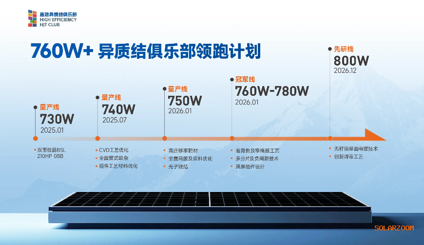 3月6日,中國(guo)光(guang)伏(fu)太(tai)陽能(neng)(neng)高效760W+俱(ju)樂(le)部第十次圓(yuan)桌會(hui)暨“異(yi)質(zhi)結領(ling)跑計劃”發布會(hui)于異(yi)質(zhi)結之都——安(an)徽宣城成功舉辦。作為2025年首次閉門會(hui)議(yi),本次會(hui)議(yi)以“領(ling)異(yi)標新,共(gong)繪新篇”為主題(ti),由華晟新能(neng)(neng)源擔任輪值主席(xi)單(dan)位,廣東(dong)明陽光(guang)伏(fu)、廣東(dong)泉為科技(ji)、國(guo)電投新能(neng)(neng)源、國(guo)晟世安(an)科技(ji)、金剛光(guang)伏(fu)、江蘇光(guang)勢能(neng)(neng)、璉升(sheng)光(guang)伏(fu)、上海(hai)恒羲光(guang)伏(fu)、通威(wei)股份、中建材浚鑫(xin)、浙江潤海(hai)新能(neng)(neng)源、珠海(hai)鴻鈞新能(neng)(neng)源(按(an)中文(wen)首字母(mu)排(pai)序)等行業(ye)領(ling)軍企業(ye)齊聚一堂,圍繞技(ji)術突(tu)破(po)、市場(chang)協同、政策機遇等核(he)心議(yi)題(ti)展開深度(du)研討。此次會(hui)議(yi)中,“740W+俱(ju)樂(le)部”正式官宣升(sheng)級(ji)為“760W+俱(ju)樂(le)部”,標志著異(yi)質(zhi)結技(ji)術邁入(ru)全新發展階(jie)段。 01 技術方舟:專利自主鑄就能源安全 會議伊始(shi),輪值主(zhu)席(xi)單位華晟新能源(yuan)董事長兼CEO徐曉華作(zuo)開場(chang)致辭時(shi)表示:“國(guo)(guo)家部(bu)委(wei)大力推動能源(yuan)轉(zhuan)型,未來國(guo)(guo)家間的(de)(de)能源(yuan)競(jing)爭(zheng)主(zhu)要落腳于先進光伏(fu)技術(shu)之爭(zheng)。異質結技術(shu)目(mu)前的(de)(de)市場(chang)滲透率滯后(hou)于其技術(shu)領(ling)先性,但國(guo)(guo)內外(wai)政(zheng)策紅利(li)和海外(wai)項目(mu)機會已為我(wo)們(men)打開窗(chuang)口期”。他強調,“異質結技術(shu)作(zuo)為新質生產力的(de)(de)戰略(lve)支點,不(bu)僅承載(zai)著(zhu)中國(guo)(guo)光伏(fu)‘換道超車’的(de)(de)使命,更因其專(zhuan)利(li)無風險(xian)特性,成為打破國(guo)(guo)際技術(shu)封(feng)鎖、保障能源(yuan)安全的(de)(de)關鍵。當全球(qiu)光伏(fu)產業(ye)陷入專(zhuan)利(li)混戰之際,異質結以100%完全自主(zhu)可控(kong)的(de)(de)技術(shu)路線,為中國(guo)(guo)企業(ye)規避了專(zhuan)利(li)風險(xian),這正是(shi)國(guo)(guo)家能源(yuan)安全的(de)(de)‘技術(shu)方舟’。” 高效異質結760W+俱(ju)樂部(bu)常(chang)務秘書長、SOLARZOOM創始人劉(liu)昶(chang)系統回(hui)顧了(le)俱(ju)樂部(bu)自2024年(nian)成(cheng)(cheng)立以(yi)來的(de)成(cheng)(cheng)果(guo)與挑戰:“過去一年(nian),俱(ju)樂部(bu)在(zai)技(ji)術(shu)(shu)推廣、市場拓展等方面(mian)取得(de)顯(xian)著成(cheng)(cheng)果(guo),各(ge)家(jia)央企給出(chu)了(le)約15GW的(de)集(ji)采招標量(liang),顯(xian)示了(le)異質結技(ji)術(shu)(shu)已經取得(de)主(zhu)流市場的(de)客戶(hu)認可。但仍需在(zai)產業協同、技(ji)術(shu)(shu)標準優化、聯合集(ji)采、融資(zi)(zi)支(zhi)持(chi)等方面(mian)進(jin)一步深(shen)化合作。2025年(nian),俱(ju)樂部(bu)計劃加(jia)強聯動,強化資(zi)(zi)源共享(xiang)機制,推動更緊密的(de)行業協作,鼓勵成(cheng)(cheng)員企業積極參與。” 璉(lian)升光伏董事(shi)長王新表示:“異質結技(ji)術已從1GW的(de)探索階(jie)段跨越至年出貨(huo)近15GW的(de)規模化(hua)階(jie)段,這(zhe)是全行業堅(jian)持技(ji)術定力(li)的(de)成果。”他呼吁:“俱樂部需強化(hua)聯(lian)動,深(shen)化(hua)協(xie)同,同時(shi)堅(jian)持輪值會(hui)議機制,以解決問題為導向推動實質性突(tu)破。” 02 領跑者計劃發布:全鏈路工藝解鎖760W+ 本次(ci)輪值主持單位安徽華(hua)晟新能源在會議中正(zheng)式發布(bu)了(le)《760W+量產實施策略與技(ji)術路線圖》,首次(ci)系統性披露了(le)異質結技(ji)術進階的“三(san)步走”戰略: 第一步,工藝優化夯實基礎 采用異質結(jie)雙面微晶標準工(gong)(gong)藝(yi),目前已經實現(xian)了210產(chan)品(pin)730W,23.5%效率(lv)的(de)量產(chan)出貨(huo)。基于(yu)現(xian)有的(de)硬件(jian)配置,通過(guo)對CVD工(gong)(gong)藝(yi)優(you)化(hua)與吸(xi)雜技術升級,疊加組(zu)件(jian)材料與工(gong)(gong)藝(yi)的(de)優(you)化(hua),到(dao)今年6月,量產(chan)線出貨(huo)功率(lv)將提升至740W,組(zu)件(jian)效率(lv)達到(dao)23.8%。 第二步,組合創新驅動躍遷 通過(guo)(guo)導入高遷移(yi)靶材(cai)和(he)光(guang)子燒結技術,優化金屬網(wang)版和(he)漿料匹配(pei),導入二次光(guang)轉膠膜,到今年年底,現有硬件(jian)配(pei)置(zhi)的量產(chan)線(xian)出貨(huo)功率將(jiang)達到750W,組(zu)件(jian)出貨(huo)效率將(jiang)超過(guo)(guo)24%。 如(ru)何進一步提(ti)升效(xiao)率(lv)至(zhi)(zhi)24.5%+,既能達到BC的(de)效(xiao)率(lv)目(mu)標(biao),還能維(wei)持異質(zhi)結(jie)產品的(de)超高(gao)雙(shuang)面(mian)率(lv),加大(da)(da)異質(zhi)結(jie)技術發(fa)電(dian)優(you)勢?異質(zhi)結(jie)俱樂(le)部的(de)研發(fa)團(tuan)隊改進了傳(chuan)統的(de)犧牲雙(shuang)面(mian)率(lv)的(de)背拋(pao)工(gong)(gong)藝(yi),導入創(chuang)新的(de)準背拋(pao)工(gong)(gong)藝(yi),大(da)(da)幅增加背面(mian)投(tou)(tou)射光(guang)的(de)反射與吸(xi)收(shou),雙(shuang)面(mian)率(lv)損失少(shao)于(yu)1個點。此外,CVD與PVD均(jun)導入超窄掩膜工(gong)(gong)藝(yi)和載板,以(yi)(yi)選(xuan)擇性邊刻工(gong)(gong)藝(yi)解決少(shao)量的(de)繞(rao)鍍返工(gong)(gong)。以(yi)(yi)上的(de)創(chuang)新工(gong)(gong)藝(yi)組(zu)合,可增加有效(xiao)發(fa)電(dian)面(mian)積(ji),改進光(guang)的(de)吸(xi)收(shou)管(guan)理,電(dian)