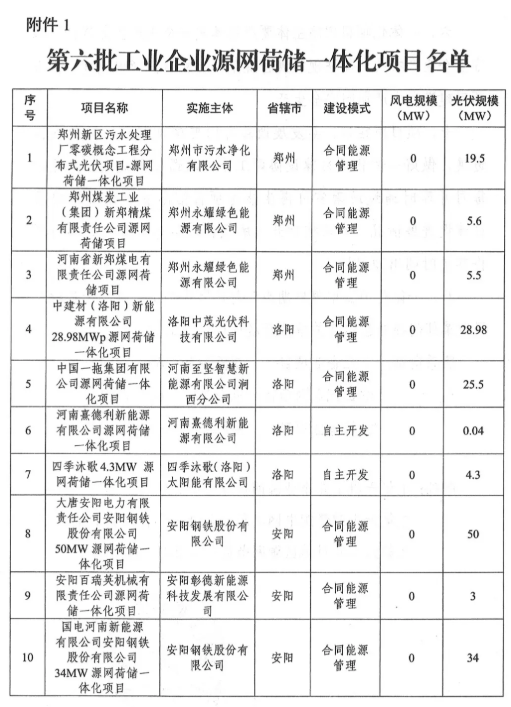 近日(ri),河南(nan)省發(fa)改委公布(bu)第六批源網(wang)荷儲(chu)一體化項目清(qing)單。本次共36個(ge)項目納入實施范圍(wei),其中,工業企業類(lei)29個(ge)、增量配電(dian)網(wang)類(lei)1個(ge),農(nong)村地區類(lei)6個(ge)。 通(tong)知(zhi)(zhi)要求,本批次(ci)項目(mu)光伏發電部(bu)分應(ying)自通(tong)知(zhi)(zhi)印發之(zhi)日起(qi)(qi)6個(ge)(ge)月(yue)內開工建(jian)(jian)設,風(feng)電部(bu)分應(ying)自通(tong)知(zhi)(zhi)印發之(zhi)日起(qi)(qi)6個(ge)(ge)月(yue)內完成(cheng)核(he)準,自核(he)準之(zhi)日起(qi)(qi)12個(ge)(ge)月(yue)內開工建(jian)(jian)設。名單如下: 據了(le)解(jie),此前2025年(nian)河(he)南省政(zheng)府工(gong)(gong)作報告中提到,2025年(nian)重(zhong)點工(gong)(gong)作包括實施(shi)源網(wang)荷儲一體化(hua)項目(mu)800個。