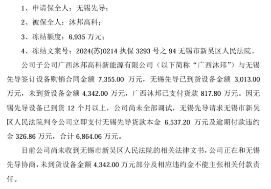 日前,沐邦高科披露的一則公告引發關注,其全資子公司廣西沐邦高科新能源有限公司(以下簡稱“廣西沐邦”)部分銀行賬戶被凍結110.8萬元,原因是無錫江松科技股份有限公司(以下簡稱“無錫江松”)因其未如約支付電池設備款而申請了案件執行。 事實上,這只是沐邦高科的債務危機的冰山一角,沐邦高科累計已凍結金額達到7045.81萬元,占其2023年末經審計凈資產的9.46%、占2024年第三季度末凈資產的3.70%、貨幣資金余額的24.72%。 而在累計凍結的7045.81萬元中,有6945萬元是因另一家設備商無錫先導智能裝備股份有限公司(已下簡稱“無錫先導”)對廣西沐邦申請的財產保護所致。 據悉,廣西沐邦作為沐邦高科電池業務的主要載體,對設備的采購可追溯至2022年7月在廣西梧州落地的10GW TOPCon光伏電池生產基地項目,廣西沐邦正是該項目運營主體。 從公告來看,廣西沐邦與兩家設備商的糾紛中,均存在未如約向設備商付款,對于設備提貨甚至不到合同的一半,所支付設備貨款也少之又少、推之又推。其中廣西沐邦與江松科技案件起源于2022年10月,前者向后者購買147臺光伏電池設備,設備總價款為12,902萬元,沐邦高科未付款金額為10140.2萬元,仍有86臺設備未提,后雖達成訴前調解,但廣西沐邦仍未如約付款。 在廣西沐邦與無錫先導簽訂的7,355萬元設備購銷合同中,廣西沐邦支付的貨款還不足到貨設備款的30%,僅817.8萬元,已到貨設備還不到合同的一半,且廣西沐邦對已到貨12個月以上設備尚未全部調試。 而廣西沐邦被無錫先導申請凍結的賬戶除部分一般賬戶外,還包括6943萬元的募集資金專戶,這也反映出廣西沐邦的經營形勢并不樂觀;另據網友在網絡平臺爆料,廣西沐邦已經欠薪3個月了,2024年8月份以后的工資一直沒有發,梧州電池項目最新消息停留在去年5月首片下線,以上種種表明投產的10GW TOPCon電池項目可能處于半停產狀態。 跨界熱潮之下,卻難逃敗局? 沐邦高科這個名字在光伏圈或許并不響亮,但在玩具界,確有“中國版樂高”之稱。以益智玩具起家沐邦高科于2022年斥資9.8億元現金,以高達750%的溢價收購豪安能源100%股權,切入硅棒、硅片業務。 進入硅片后,沐邦高科同樣扎入大干快上的隊伍之中,開始向下游電池片延伸,2022年先后在南昌安義、湖北鄂城兩地規劃8GW TOPCON光伏電池項目,后續均以“流產”告終,后又在廣西梧州和安徽銅陵再祭GW級TOPCon擴產項目,而銅陵項目最終因資金問題不得不終止,僅有梧州一個電池項目得以落地。 如此看來,沐邦高科光伏電池業務難挑大梁,光伏板塊主要以硅片業務為主。猶記沐邦高科2022年收購豪安能源時曾表示,“交易完成后,光伏硅片及硅棒業務將成為主營業務之一,公司業務規模和盈利水平將得到較大提高”。 事實上,此后的行業形勢已經發生巨變,沐邦高科的轉型并不及當初的預期,業績大幅滑坡、債務危機加重問題不斷浮現,硅片、硅棒等業務凈利潤在2023年達到1.37億元后,2024上半年,硅片銷量同比下降23%,銷售價格則同比下跌約四成,凈利潤虧損高達8407.6萬元。 而沐邦高科原主營玩具業務受經濟不振、消費者消費意愿下行因素影響,表現同樣慘淡,2022年跨界光伏后,其玩具業務營收同比下降47.83%,2023年及2024上半年玩具業務營收分別為9730.37萬元、2912.8萬元,業務占比進一步降低,凈利潤則分別虧損4711.38萬元、3786.87萬元。 整體來看,沐邦高科跨界光伏后,業績表現相比轉型前虧損進一步加劇,2022年和2023年,沐邦高科實現營收9.44億和16.54億,同比明顯增長,但歸母凈利潤分別為-2.29億和0.28億。 2024年沐邦高科業績表現更為慘淡,預計利潤總額虧損4.5億元到3.5億元,歸母凈利潤更是預計虧損5.2億元至4.2億元。在其業績預虧公告發布后,上交所迅速下達問詢函,在這之中也提到沐邦高科與“凈利潤為負且營業收入低于3億元”的退市風險警示情形較為接近。 2月28日晚,三次延期之后,沐邦高科終于回復了上交所問詢函。根據回復公告,2024年沐邦高科營業收入為3.48億元,同比下滑78.96%。其中,光伏業務收入占比76.28%,營收較上一年度下降82.95%,主要受到行業產能過剩問題影響;玩具業務收入占比23.72%,營收同比下降15.16%,則是轉讓子公司股權等多種因素疊加的結果。 值得關注的是,沐邦高科2024年光伏業務收入下滑幅度高于同行業平均56.77%的下降幅度,全年光伏業務毛利率也遠低于同行業可比公司水平,為-50.15%,一方面在于沐邦高科在行業中規模和營收水平相對較小,抵御風險能力較弱,另一方面,面對成本高于售價的困境,沐邦高科只能選擇控制銷售規模以降低經營風險。 持續虧損的現金流,疊加巨額供應商欠款,沐邦高科的跨界事業備受壓力與考驗。屋漏偏逢連夜雨,或與業績暴跌有關,2024下半年以來沐邦高科的高管變動也為其蒙上一層陰影,總經理、副總經理兼董秘相繼辭職,包括前跨界之初重金請來的前晶科COO郭俊華。 事實上,沐邦高科的困境是光伏產業本輪周期的縮影,受產能擴張行業競爭的加劇影響,光伏全產業擴鏈價格持續回落,數據顯示,僅2024年硅料、硅片環節價格下滑超35%、45%,電池及組件降幅均超25%,整個行業陷入虧損旋渦。 行至當下,相比前兩年的瘋狂擴產,項目延期/終止詞條正席卷當下光伏市場。據統計,2023年以來,共14家企業官宣終止光伏制造項目,均為清一色跨界選手,終止的項目建設規模近150GW、投資規模達到700億元左右,包括正業