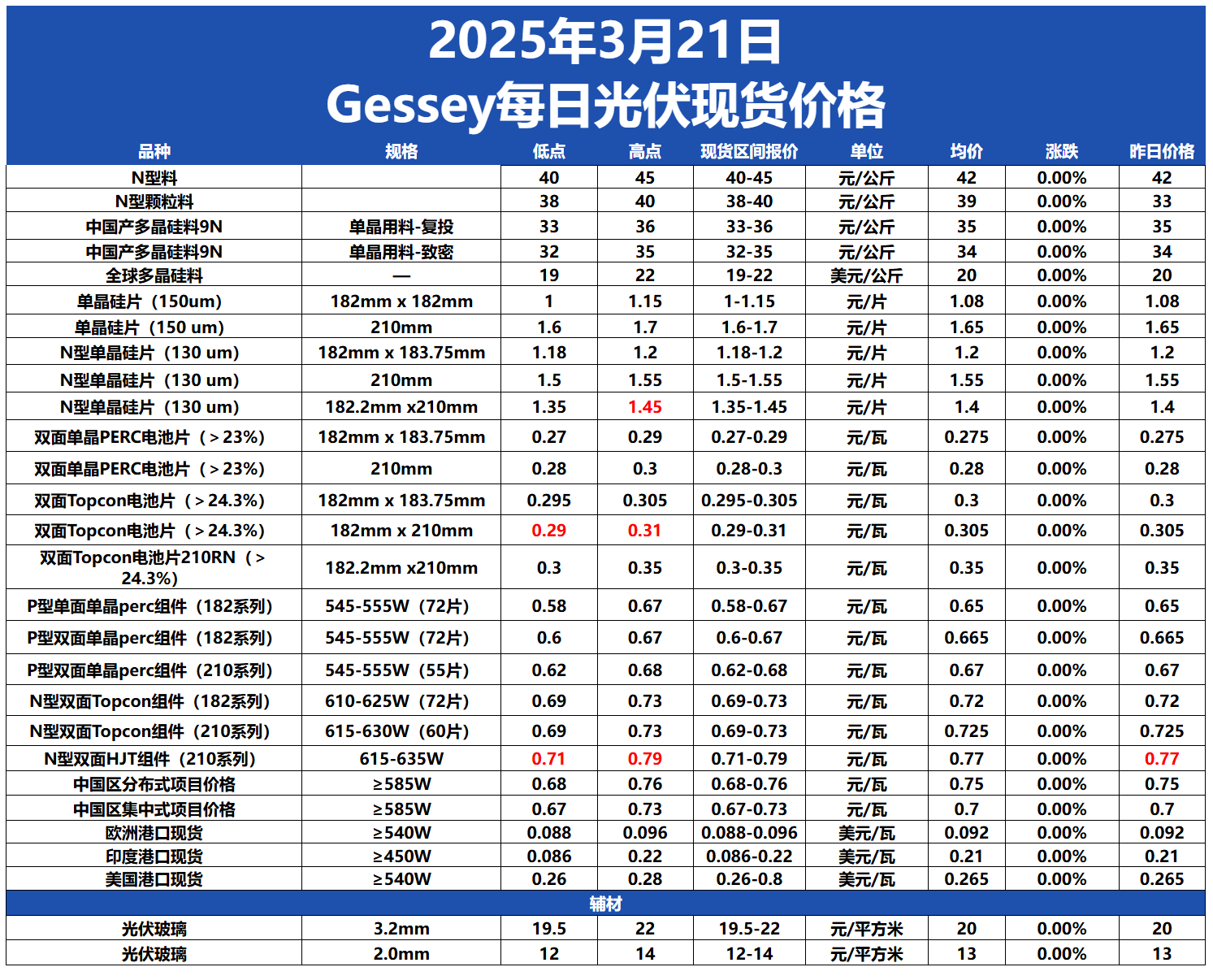 Gessey:3月21日每日光伏市場行情2025-03-21 18:11來源:gessey瀏覽數:285次