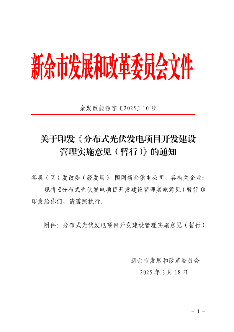 江西新余市印發分布式光伏發電開發建設管理實施意見2025-03-26 11:35來源:gessey瀏覽數:241次