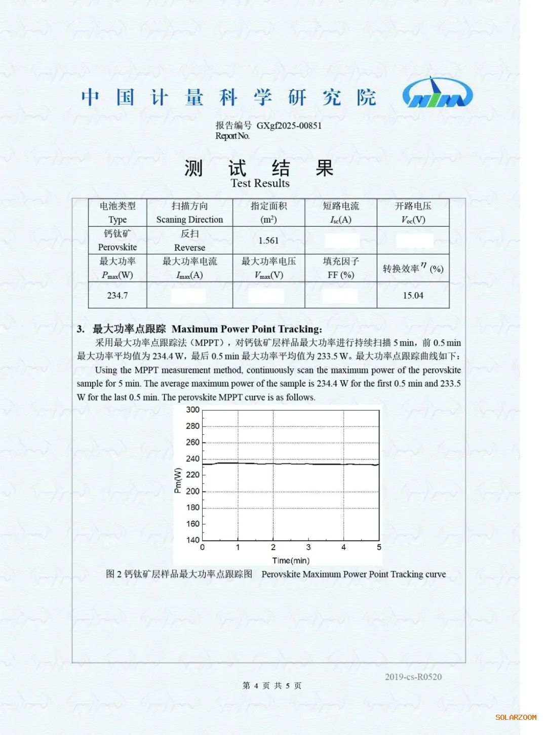 近日,脈絡能源在柔性鈣(gai)鈦(tai)礦光伏領域(yu)取得重大進展(zhan),其一體化成型的柔性鈣(gai)鈦(tai)礦光伏組(zu)件技術再(zai)獲突(tu)破(po)(po)。新一代素箋系列產品(面(mian)積1.56平(ping)米)經中國計量院認證(zheng),全面(mian)積效(xiao)率突(tu)破(po)(po)15%,對應(ying)孔徑面(mian)積效(xiao)率16.2%,正(zheng)反掃無(wu)遲滯,MPPT測試(shi)300秒無(wu)衰減(jian),是當前全球面(mian)積最大、認證(zheng)效(xiao)率最高的柔性鈣(gai)鈦(tai)礦光伏產品。 脈絡能源(yuan)是暨南(nan)大(da)學成果轉化項(xiang)目,由麥(mai)耀華(hua)教授帶(dai)領團(tuan)隊創立,專注于鈣(gai)(gai)鈦(tai)礦光伏技術的(de)研(yan)發(fa)(fa)與產(chan)業化。鈣(gai)(gai)鈦(tai)礦太(tai)陽能電池具有(you)高(gao)(gao)效(xiao)(xiao)(xiao)率(lv)、低成本、易制(zhi)備等特點,柔性器件更(geng)輕薄便攜(xie)、柔韌性強,應用(yong)廣泛。2024年11月,脈絡能源(yuan)在珠海建(jian)成的(de)100MW生產(chan)線(xian)投產(chan),首(shou)片組件效(xiao)(xiao)(xiao)率(lv)達17.9%并獲TUV萊茵認(ren)證(zheng)。公司研(yan)發(fa)(fa)出的(de)大(da)面(mian)積玻璃基底鈣(gai)(gai)鈦(tai)礦組件效(xiao)(xiao)(xiao)率(lv)達到(dao)18.16%,鈣(gai)(gai)鈦(tai)礦-晶(jing)硅四端疊層組件效(xiao)(xiao)(xiao)率(lv)達到(dao)24.68%。首(shou)代素(su)箋(jian)系列產(chan)品(面(mian)積0.5平(ping)米)經中國計量院認(ren)證(zheng)達86.90W,即效(xiao)(xiao)(xiao)率(lv)高(gao)(gao)達17.38%,正(zheng)反掃無(wu)遲(chi)滯,MPPT測試(shi)300秒(miao)幾乎無(wu)衰減,是當時(shi)全球面(mian)積最大(da)、認(ren)證(zheng)效(xiao)(xiao)(xiao)率(lv)最高(gao)(gao)的(de)柔性鈣(gai)(gai)鈦(tai)礦光伏產(chan)品。