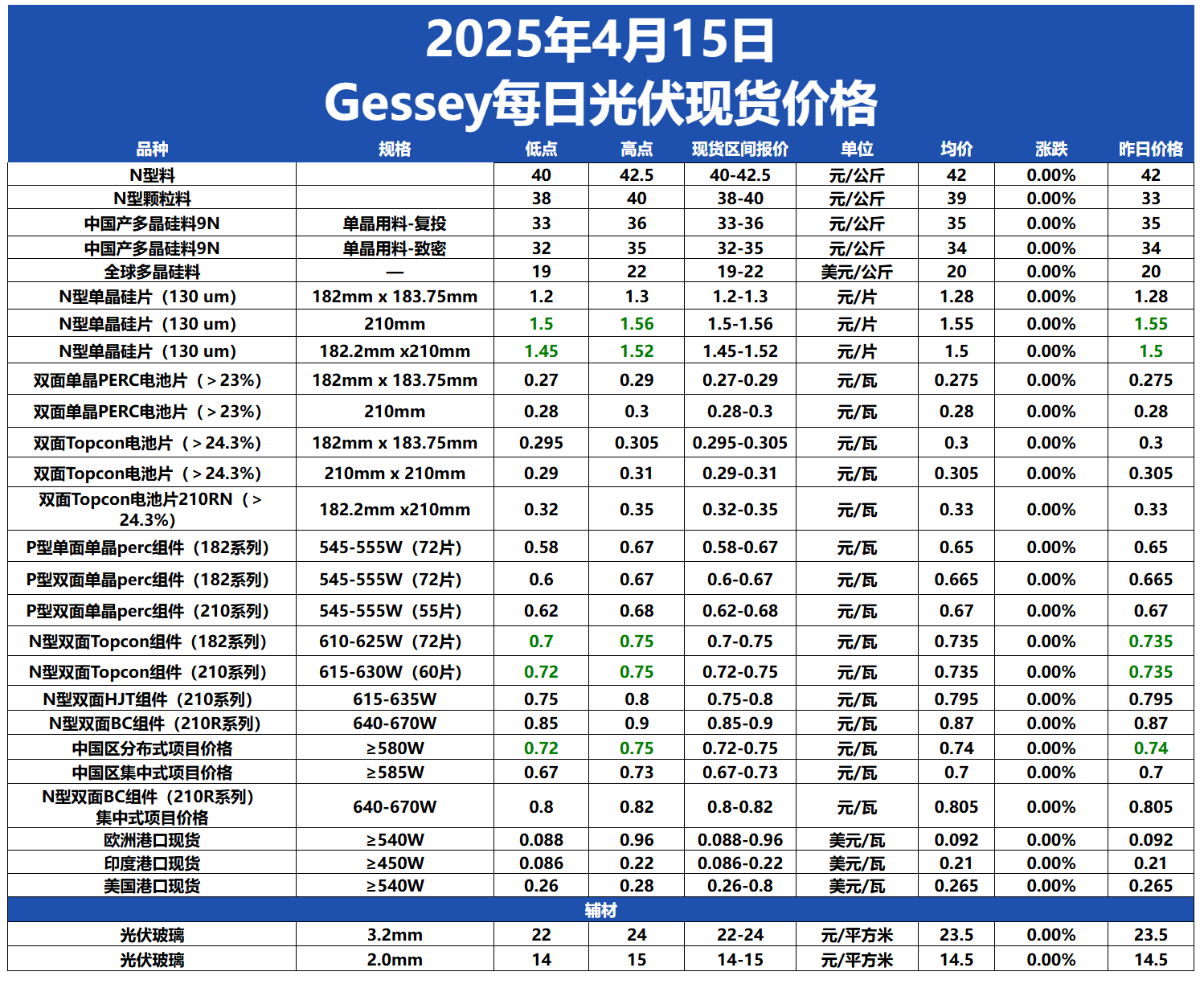 Gessey:4月15日每日光伏市場行情2025-04-15 17:44來源:gessey瀏覽數:292次