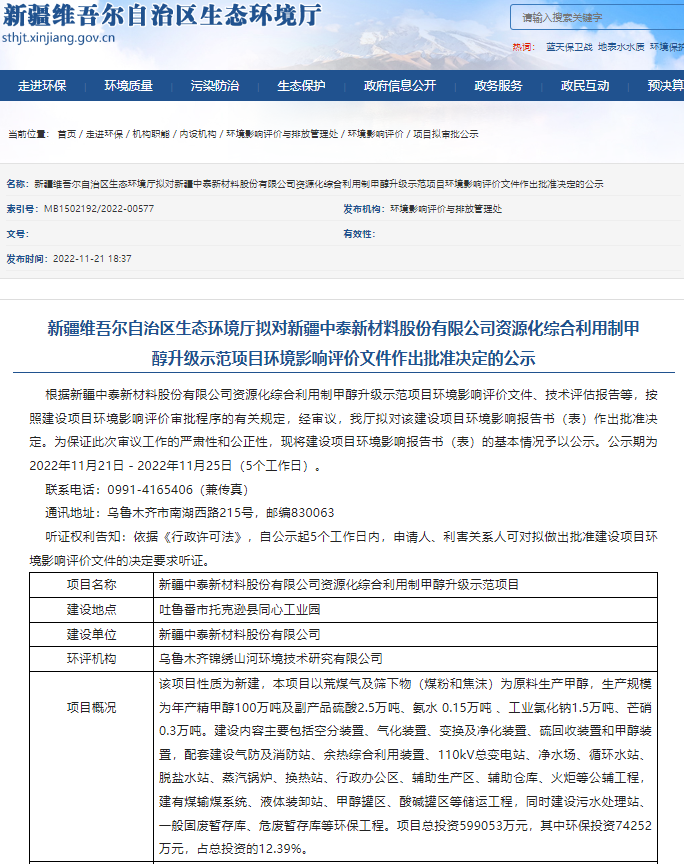 新建!總投資59.91億元!新疆100萬噸/年煤制甲醇項目投產2025-04-24 17:11瀏覽數:189次