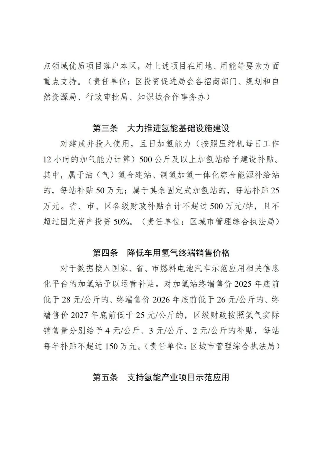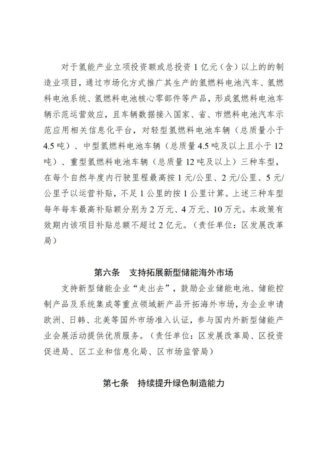 近日,廣(guang)州(zhou)開發(fa)(fa)區(qu)發(fa)(fa)展(zhan)和改革局(ju) 黃(huang)埔(pu)區(qu)發(fa)(fa)展(zhan)和改革局(ju)發(fa)(fa)布(bu)關(guan)于征(zheng)求《廣(guang)州(zhou)開發(fa)(fa)區(qu) 廣(guang)州(zhou)市黃(huang)埔(pu)區(qu)關(guan)于促(cu)進新能源產業與節能環(huan)保領域高質量發(fa)(fa)展(zhan)的若干措施(征(zheng)求意見(jian)稿(gao))》意見(jian)的公告(gao)。 文件指出,大力(li)推進氫(qing)(qing)能(neng)基礎設施建設。對建成并投入使用,且(qie)日加(jia)氫(qing)(qing)能(neng)力(li)(按照壓縮機(ji)每日工作12小時的(de)加(jia)氣能(neng)力(li)計算)500公斤及以上加(jia)氫(qing)(qing)站(zhan)(zhan)給予建設補(bu)貼。其中(zhong),屬于油(氣)氫(qing)(qing)合建站(zhan)(zhan)、制氫(qing)(qing)加(jia)氫(qing)(qing)一體化綜(zong)合能(neng)源(yuan)補(bu)給站(zhan)(zhan)的(de),每站(zhan)(zhan)補(bu)貼50萬(wan)元(yuan);屬于其余固(gu)定式加(jia)氫(qing)(qing)站(zhan)(zhan)的(de),每站(zhan)(zhan)補(bu)貼25萬(wan)元(yuan)。省、市、區各級財政補(bu)貼合計不(bu)超過500萬(wan)元(yuan)/站(zhan)(zhan),且(qie)不(bu)超過固(gu)定資產投資50%。 降低(di)車用氫氣(qi)(qi)終(zhong)端(duan)銷售價(jia)(jia)格。對于(yu)數據(ju)接入國家、省、市燃料電池汽(qi)車示(shi)范(fan)應(ying)用相關信息化(hua)平臺的(de)加氫站(zhan)予(yu)(yu)以運營(ying)補貼。對加氫站(zhan)終(zhong)端(duan)售價(jia)(jia)2025年(nian)底前(qian)低(di)于(yu)28元(yuan)(yuan)/公(gong)(gong)(gong)(gong)斤(jin)的(de)、終(zhong)端(duan)售價(jia)(jia)2026年(nian)底前(qian)低(di)于(yu)26元(yuan)(yuan)/公(gong)(gong)(gong)(gong)斤(jin)的(de)、終(zhong)端(duan)售價(jia)(jia)2027年(nian)底前(qian)低(di)于(yu)25元(yuan)(yuan)/公(gong)(gong)(gong)(gong)斤(jin)的(de),區級財(cai)政按照氫氣(qi)(qi)實際銷售量分別給予(yu)(yu)4元(yuan)(yuan)/公(gong)(gong)(gong)(gong)斤(jin)、3元(yuan)(yuan)/公(gong)(gong)(gong)(gong)斤(jin)、2元(yuan)(yuan)/公(gong)(gong)(gong)(gong)斤(jin)的(de)補貼,每站(zhan)每年(nian)補貼不超(chao)過150萬元(yuan)(yuan)。 支持氫能產業項目(mu)示(shi)范(fan)應(ying)用。對于(yu)氫能產業立(li)項投(tou)資額或總(zong)(zong)(zong)投(tou)資1億元(yuan)(含)以(yi)(yi)上(shang)(shang)的(de)的(de)制造業項目(mu),通過市(shi)場化(hua)(hua)方式推廣其生產的(de)氫燃(ran)料(liao)(liao)(liao)電(dian)池汽車(che)(che)(che)、氫燃(ran)料(liao)(liao)(liao)電(dian)池系(xi)統、氫燃(ran)料(liao)(liao)(liao)電(dian)池核心(xin)零部件(jian)等產品,形成氫燃(ran)料(liao)(liao)(liao)電(dian)池車(che)(che)(che)輛(liang)(liang)示(shi)范(fan)運(yun)營效應(ying),且(qie)車(che)(che)(che)輛(liang)(liang)數(shu)據接入(ru)國家(jia)、省、市(shi)燃(ran)料(liao)(liao)(liao)電(dian)池汽車(che)(che)(che)示(shi)范(fan)應(ying)用相關信息化(hua)(hua)平臺,對輕型氫燃(ran)料(liao)(liao)(liao)電(dian)池車(che)(che)(che)輛(liang)(liang)(總(zong)(zong)(zong)質(zhi)量小于(yu)4.5噸)、中型氫燃(ran)料(liao)(liao)(liao)電(dian)池車(che)(che)(che)輛(liang)(liang)(總(zong)(zong)(zong)質(zhi)量4.5噸及以(yi)(yi)上(shang)(shang)且(qie)小于(yu)12噸)、重型氫燃(ran)料(liao)(liao)(liao)電(dian)池車(che)(che)(che)輛(liang)(liang)(總(zong)(zong)(zong)質(zhi)量12噸及以(yi)(yi)上(shang)(shang))三(san)種車(che)(che)(che)型,在每(mei)個自然年度內行駛里程最高按(an)1元(yuan)/公里、2元(yuan)/公里、5元(yuan)/公里予(yu)以(yi)(yi)運(yun)營補(bu)貼(tie),不(bu)足1公里的(de)按(an)1公里計(ji)算。上(shang)(shang)述三(san)種車(che)(che)(che)型每(mei)年每(mei)車(che)(che)(che)最高補(bu)貼(tie)額分別為2萬元(yuan)、4萬元(yuan)、10萬元(yuan)。本政策有效期內該項目(mu)補(bu)貼(tie)總(zong)(zong)(zong)額不(bu)超過2億元(yuan)。 貫徹落實國(guo)家(jia)(jia)“兩重”“兩新”政(zheng)策,支持(chi)符合(he)條(tiao)件的能源(yuan)項目(mu)申報國(guo)家(jia)(jia)超長期特(te)別(bie)國(guo)債,對淘汰(tai)國(guo)四及以(yi)下排放(fang)標準營運類柴油貨車、新增氫能營運類貨車、新能源(yuan)公交車等示范項目(mu),給予(yu)相應(ying)政(zheng)策支持(chi)。 全文如下: 廣州開發區發展和改革局 黃埔區發展和改革局關于征求《廣州開發區 廣州市黃埔區關于促進新能源產業與節能環保領域高質量發展的若干措施(征求意見稿)》意見的公告 為進(jin)一(yi)步(bu)優化(hua)我區(qu)(qu)法治化(hua)營(ying)商環(huan)境,提高(gao)(gao)政策精準度(du),加快培(pei)育(yu)新(xin)質生產(chan)力,構建廣(guang)(guang)州(zhou)市“12218”和黃埔(pu)區(qu)(qu)“12136”現代(dai)化(hua)產(chan)業(ye)體系,打造(zao)新(xin)能(neng)源(yuan)產(chan)業(ye)與節(jie)能(neng)環(huan)保(bao)(bao)領域發(fa)(fa)(fa)展高(gao)(gao)地,我局研究起草了《廣(guang)(guang)州(zhou)開(kai)發(fa)(fa)(fa)區(qu)(qu) 廣(guang)(guang)州(zhou)市黃埔(pu)區(qu)(qu)關于促(cu)進(jin)新(xin)能(neng)源(yuan)產(chan)業(ye)與節(jie)能(neng)環(huan)保(bao)(bao)領域高(gao)(gao)質量發(fa)(fa)(fa)展的若干(gan)措施(征(zheng)求意(yi)(yi)(yi)見(jian)稿)》(附(fu)件1),現依據《廣(guang)(guang)州(zhou)市黃埔(pu)區(qu)(qu)廣(guang)(guang)州(zhou)開(kai)發(fa)(fa)(fa)區(qu)(qu)行政規范性文件管理(li)辦法》(穗埔(pu)府〔2021〕1號)有(you)關規定,公開(kai)向(xiang)社(she)會征(zheng)求意(yi)(yi)(yi)見(jian),征(zheng)求意(yi)(yi)(yi)見(jian)時間為4月(yue)2日至4月(yue)14日。如有(you)意(yi)(yi)(yi)見(jian)請(qing)填(tian)寫(xie)《征(zheng)求意(yi)(yi)(yi)見(jian)反饋表》(附(fu)件2)并(bing)發(fa)(fa)(f