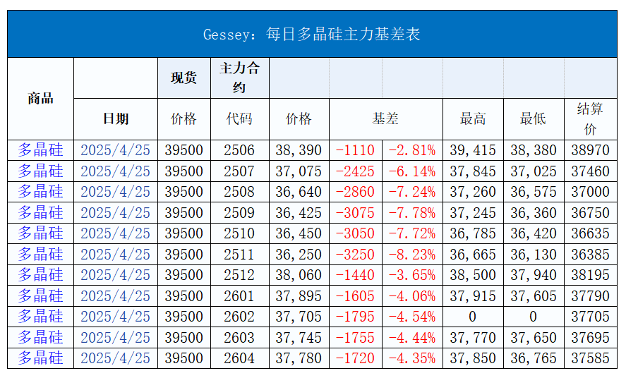 現貨市場價格變動: 多晶硅: 今日硅料價格整體維穩,N型料主流價格在36-42.5元/公斤,均價39.5元/公斤。N型顆粒硅主流價格在35-38.5元/公斤,均價37.5元/公斤。國產復投特級硅料主流價格在33-36元/公斤,均價35元/公斤,國產致密特級硅料主流價格在32-35元/公斤,均價34元/公斤。全球多晶硅料主流價格在19-22元/公斤,均價20元/公斤。 硅片: 今日硅片價格整體維穩,N型-183.75mm單晶硅片主流現貨價格維持1.05-1.18元/片,均價1.15元/片。N型-210mm單晶硅片主流現貨價格維持1.42-1.5元/片,均價1.45元/片。N型-210Rmm單晶硅片主流現貨價格1.28-1.4元/片,均價1.3元/片。 電池片: 今日電池片價格整體維穩,23%以上183.75mm尺寸雙面單晶perc主流價格在0.27-0.29元/瓦,均價0.275元/瓦。23%以上210mm雙面單晶perc主流價格在0.28-0.3元/瓦,均價0.28元/瓦。24.3%以上183.75mm雙面Topcon電池片主流價格在0.27-0.285元/瓦,均價0.28元/瓦。24.3%以上210mm雙面Topcon電池片主流價格在0.29-0.95元/瓦,均價0.29元/瓦。24.3%以上210Rmm雙面Topcon電池片主流價格在0.28-0.29元/瓦,均價0.28元/瓦。 組件: 今日組件價格整體維穩,雙面單晶perc組件(182系列)價格在0.6-0.67元/ 瓦,均價為0.665元/瓦。雙面單晶perc組件(210系列)價格在0.62-0.68元/ 瓦,均價為0.67元/瓦。N型雙面Topcon 組件(182系列)價格在0.7-0.74元/ 瓦,均價為0.73元/瓦。N型雙面Topcon 組件(210系列)價格在0.7-0.725元/ 瓦,均價為0.72元/瓦。N型雙面HJT組件(210系列)價格在0.75-0.77元/ 瓦,均價為0.76元/瓦。N型雙面BC組件(210R系列)價格在0.8-0.85元/ 瓦,均價為0.83元/瓦。中國區分布式項目(≥580W)價格在0.69-0.74元/瓦,均價為0.72元/瓦,中國區集中式項目(≥585W)價格在0.67-0.73元/ 瓦,均價為0.7元/瓦。N型雙面BC組件(210R系列)集中式項目價格在0.8-0.81元/ 瓦,均價為0.8元/瓦。歐洲港口現貨價格在0.088-0.96美元/ 瓦,均價為0.092美元/瓦。印度港口現貨價格在0.086-0.22美元/ 瓦,均價為0.21美元/瓦。美國港口現貨價格在0.26-0.28美元/ 瓦,均價為0.265美元/瓦。 玻璃: 今日玻璃價格整體維穩,3.2mm雙層鍍膜光伏玻璃價格在22-24元/平方米,均價為23.5元/平方米。2.0mm雙層鍍膜光伏玻璃價格在14-15元/平方米,均價為14.5元/平方米。 期貨市場 行情走勢:主力合約收盤價為38390元/噸,前結算價為39110元/噸,收盤價較前結算價跌幅為1.84%,收盤價較開盤價跌985元/噸,跌幅為2.50%,成交量為95530手,持倉量為56040手。 下一篇: 蓋錫咨詢:4月25日光伏行業要聞速覽