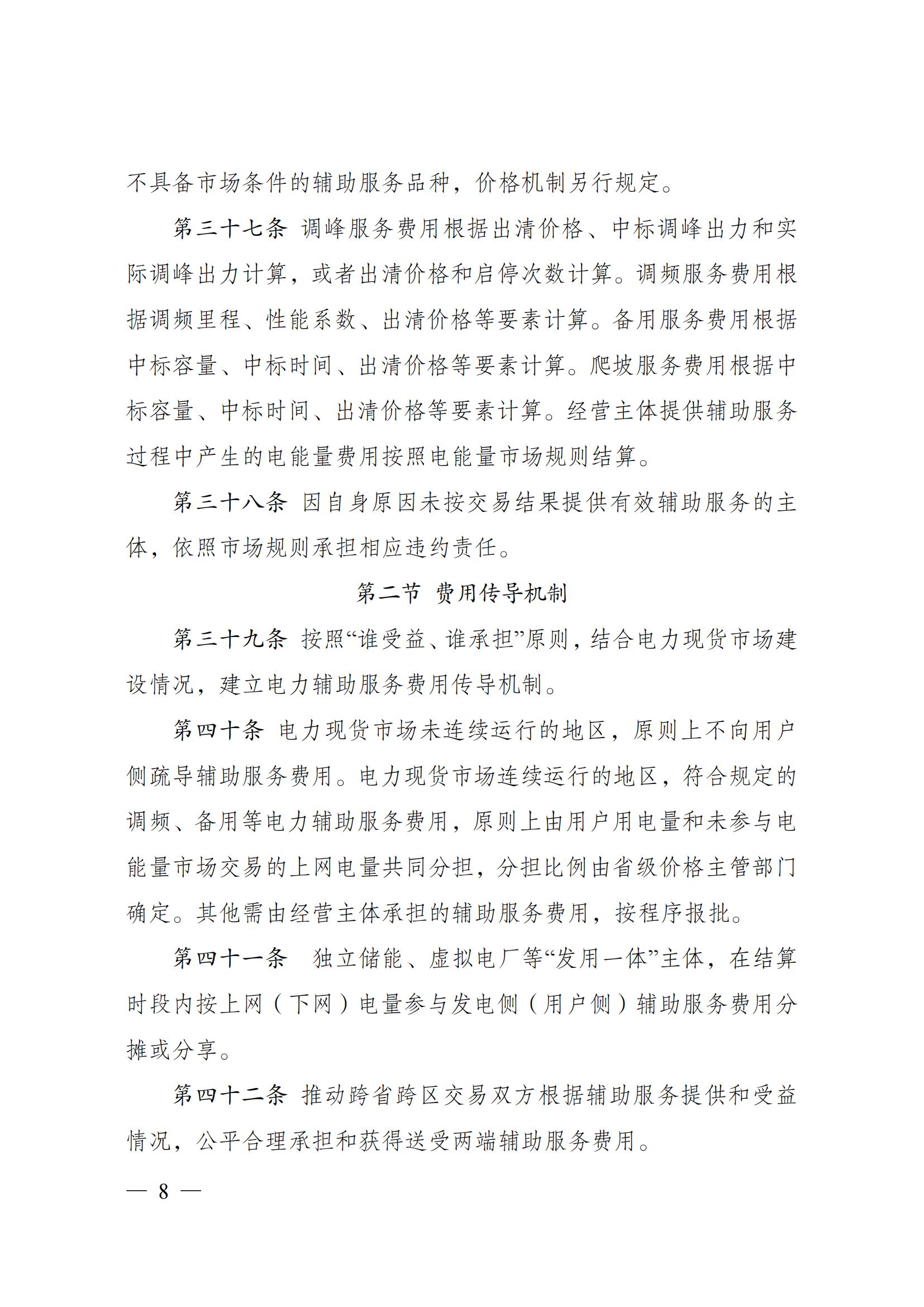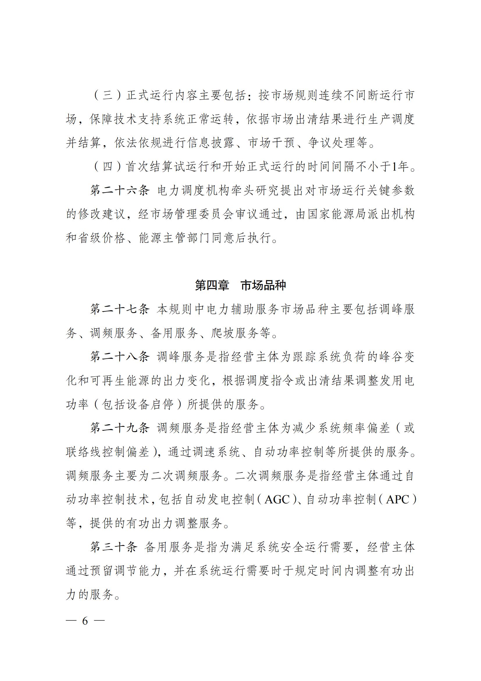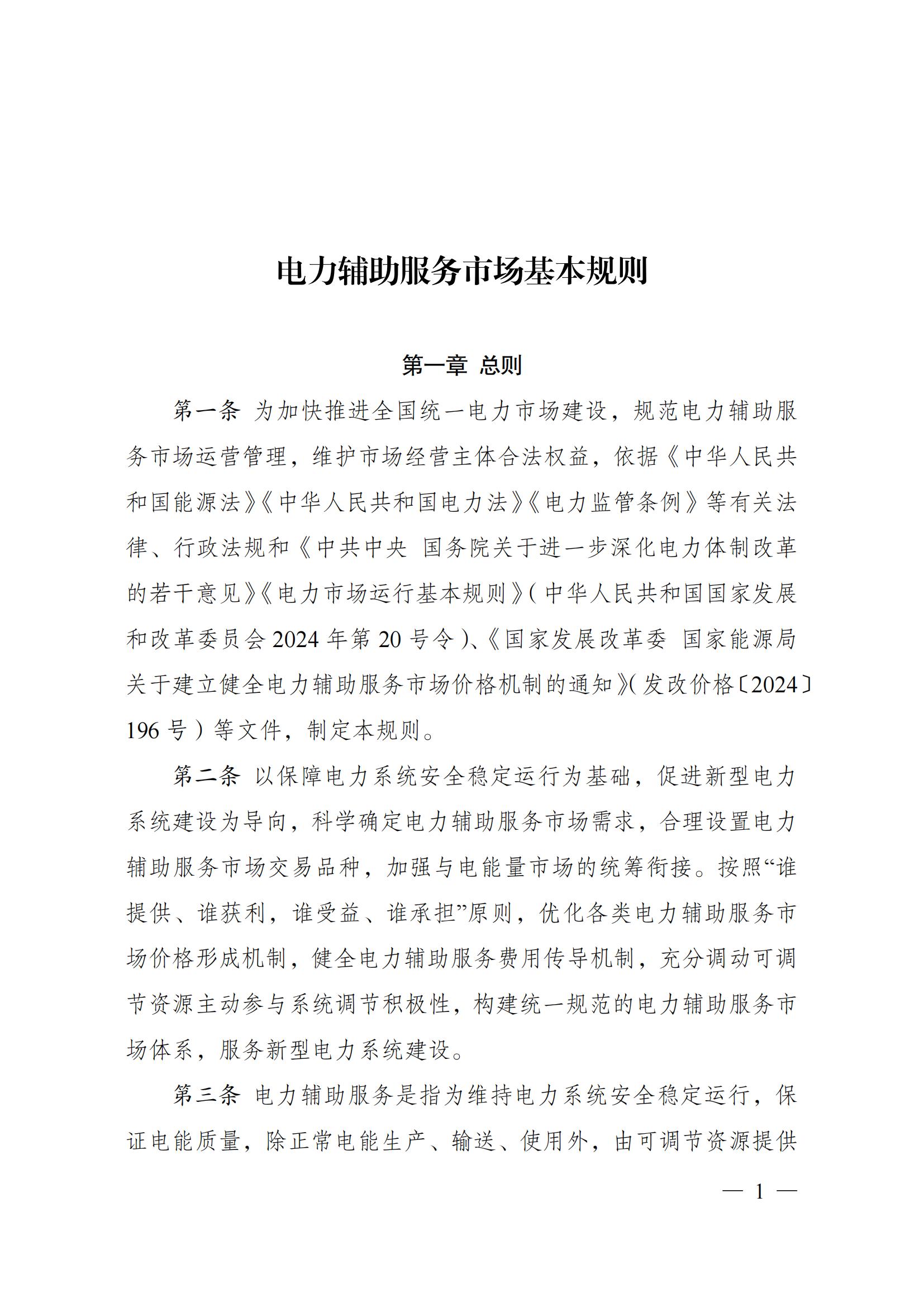 4月(yue)29日,國家發展改革委(wei) 國家能源(yuan)局關(guan)于(yu)印發《電力(li)輔助(zhu)服(fu)務(wu)市(shi)場(chang)基本規則》的(de)通知(zhi),通知(zhi)指出,電力(li)現貨市(shi)場(chang)連續運行(xing)的(de)地(di)區,要完善現貨市(shi)場(chang)規則,適當放寬市(shi)場(chang)限價,引導實現調(diao)峰功(gong)能,調(diao)峰及頂峰、調(diao)峰容量(liang)等具有(you)類似功(gong)能的(de)市(shi)場(chang)不再運行(xing)。 原文如下: 國(guo)家發展改(gai)革(ge)委 國(guo)家能源(yuan)局關于印(yin)發《電力輔助服務市(shi)場基本規則(ze)》的通(tong)知 發改能源規〔2025〕411號 各省、自治區、直轄市、新疆生產建設兵(bing)團(tuan)(tuan)(tuan)(tuan)發展改革(ge)委(wei)、能源(yuan)局(ju)(ju)、經信委(wei)(工(gong)(gong)信委(wei)、工(gong)(gong)信廳(ting)),國(guo)家(jia)能源(yuan)局(ju)(ju)各派出(chu)機構,國(guo)家(jia)電(dian)網(wang)有(you)(you)(you)(you)限公(gong)(gong)(gong)司(si)、中(zhong)(zhong)國(guo)南方電(dian)網(wang)有(you)(you)(you)(you)限責(ze)任公(gong)(gong)(gong)司(si)、中(zhong)(zhong)國(guo)華能集(ji)(ji)(ji)團(tuan)(tuan)(tuan)(tuan)有(you)(you)(you)(you)限公(gong)(gong)(gong)司(si)、中(zhong)(zhong)國(guo)大(da)唐集(ji)(ji)(ji)團(tuan)(tuan)(tuan)(tuan)有(you)(you)(you)(you)限公(gong)(gong)(gong)司(si)、中(zhong)(zhong)國(guo)華電(dian)集(ji)(ji)(ji)團(tuan)(tuan)(tuan)(tuan)有(you)(you)(you)(you)限公(gong)(gong)(gong)司(si)、國(guo)家(jia)能源(yuan)投(tou)資(zi)集(ji)(ji)(ji)團(tuan)(tuan)(tuan)(tuan)有(you)(you)(you)(you)限公(gong)(gong)(gong)司(si)、國(guo)家(jia)電(dian)力(li)投(tou)資(zi)集(ji)(ji)(ji)團(tuan)(tuan)(tuan)(tuan)公(gong)(gong)(gong)司(si)、中(zhong)(zhong)國(guo)節能環保集(ji)(ji)(ji)團(tuan)(tuan)(tuan)(tuan)有(you)(you)(you)(you)限公(gong)(gong)(gong)司(si)、中(zhong)(zhong)國(guo)長(chang)江三(san)峽集(ji)(ji)(ji)團(tuan)(tuan)(tuan)(tuan)有(you)(you)(you)(you)限公(gong)(gong)(gong)司(si)、國(guo)家(jia)開發投(tou)資(zi)集(ji)(ji)(ji)團(tuan)(tuan)(tuan)(tuan)有(you)(you)(you)(you)限公(gong)(gong)(gong)司(si)、中(zhong)(zhong)國(guo)核工(gong)(gong)業(ye)集(ji)(ji)(ji)團(tuan)(tuan)(tuan)(tuan)有(you)(you)(you)(you)限公(gong)(gong)(gong)司(si)、中(zhong)(zhong)國(guo)廣核集(ji)(ji)(ji)團(tuan)(tuan)(tuan)(tuan)有(you)(you)(you)(you)限公(gong)(gong)(gong)司(si)、華潤(集(ji)(ji)(ji)團(tuan)(tuan)(tuan)(tuan))有(you)(you)(you)(you)限公(gong)(gong)(gong)司(si)、內(nei)蒙古電(dian)力(li)(集(ji)(ji)(ji)團(tuan)(tuan)(tuan)(tuan))有(you)(you)(you)(you)限責(ze)任公(gong)(gong)(gong)司(si),北京、廣州電(dian)力(li)交易中(zhong)(zhong)心,有(you)(you)(you)(you)關(guan)發電(dian)企業(ye): 為貫(guan)徹(che)落實加快建(jian)(jian)設全國(guo)統(tong)一(yi)電(dian)(dian)力市場(chang)(chang)要(yao)求,指(zhi)導(dao)全國(guo)電(dian)(dian)力輔助(zhu)服務市場(chang)(chang)建(jian)(jian)設,適應電(dian)(dian)力改革(ge)(ge)發(fa)展(zhan)(zhan)需(xu)要(yao),根據(ju)《電(dian)(dian)力市場(chang)(chang)運(yun)行基本規則(ze)(ze)》(中華人民共和國(guo)國(guo)家發(fa)展(zhan)(zhan)和改革(ge)(ge)委(wei)員會2024年第20號(hao)令(ling))、《國(guo)家發(fa)展(zhan)(zhan)改革(ge)(ge)委(wei)、國(guo)家能源(yuan)局關(guan)(guan)于(yu)加快建(jian)(jian)設全國(guo)統(tong)一(yi)電(dian)(dian)力市場(chang)(chang)體系的指(zhi)導(dao)意見》(發(fa)改體改〔2022〕118號(hao))、《國(guo)家發(fa)展(zhan)(zhan)改革(ge)(ge)委(wei)、國(guo)家能源(yuan)局關(guan)(guan)于(yu)建(jian)(jian)立(li)健全電(dian)(dian)力輔助(zhu)服務市場(chang)(chang)價(jia)(jia)格機(ji)制(zhi)的通(tong)知》(發(fa)改價(jia)(jia)格〔2024〕196號(hao))等有(you)關(guan)(guan)規定,我們組織起(qi)草了《電(dian)(dian)力輔助(zhu)服務市場(chang)(chang)基本規則(ze)(ze)》(以下簡稱《規則(ze)(ze)》),現印發(fa)給你們,并就有(you)關(guan)(guan)事項通(tong)知如下。 一(yi)、國家能(neng)源(yuan)局派出機構會同省級價格、能(neng)源(yuan)主管部門要根據《規(gui)(gui)則》和發(fa)改價格〔2024〕196號文(wen)件(jian)等有關規(gui)(gui)定,及(ji)時組織市(shi)(shi)場運營機構制(zhi)修訂(ding)輔助服(fu)務(wu)市(shi)(shi)場實施細則,維護統一(yi)的公(gong)平競(jing)爭制(zhi)度,確(que)保與《規(gui)(gui)則》要求一(yi)致(zhi)。 二、電力現(xian)貨(huo)市(shi)場(chang)連續運行(xing)的(de)地區,要完善現(xian)貨(huo)市(shi)場(chang)規則,適當(dang)放寬市(shi)場(chang)限價,引導實現(xian)調(diao)峰(feng)功能,調(diao)峰(feng)及頂(ding)峰(feng)、調(diao)峰(feng)容量等具有類(lei)似功能的(de)市(shi)場(chang)不再運行(xing)。 三、國(guo)家能(neng)源局派出機(ji)構要會同省級價格主管部門(men)等(deng)單(dan)位組織對電(dian)力(li)輔助服務(wu)市場運行(xing)(xing)、資(zi)金使(shi)用、執(zhi)行(xing)(xing)效果等(deng)情況進行(xing)(xing)年度評估。重大問題及時報告國(guo)家發(fa)展改革委、國(guo)家能(neng)源局。 國(guo)家發展改革(ge)委 國 家 能 源 局(ju) 2025年4月3日(ri) 下一篇: 韓華:擬收購REC剩余股權
