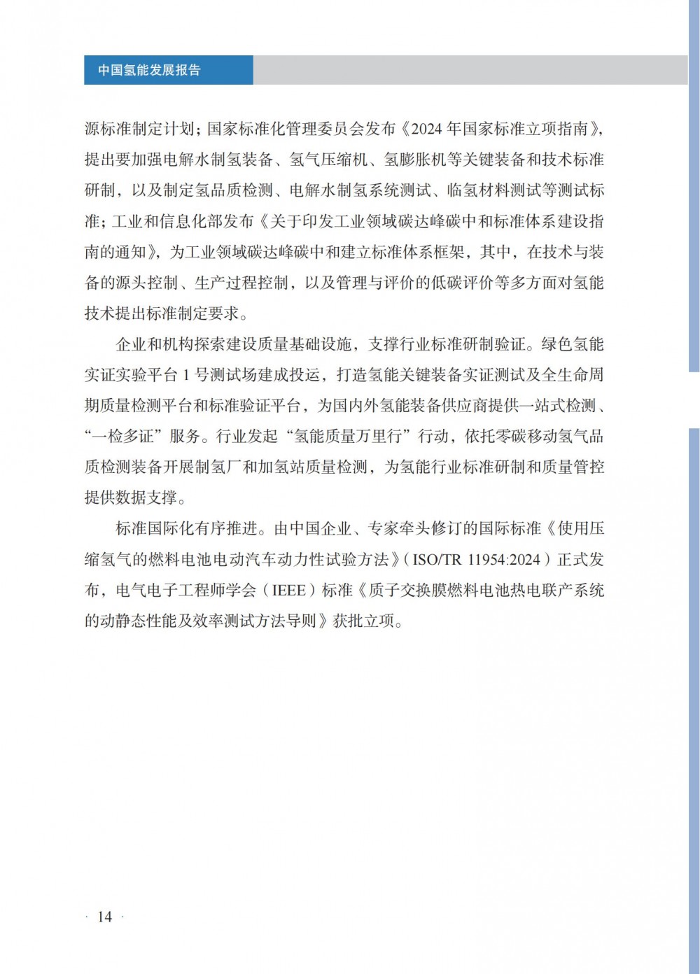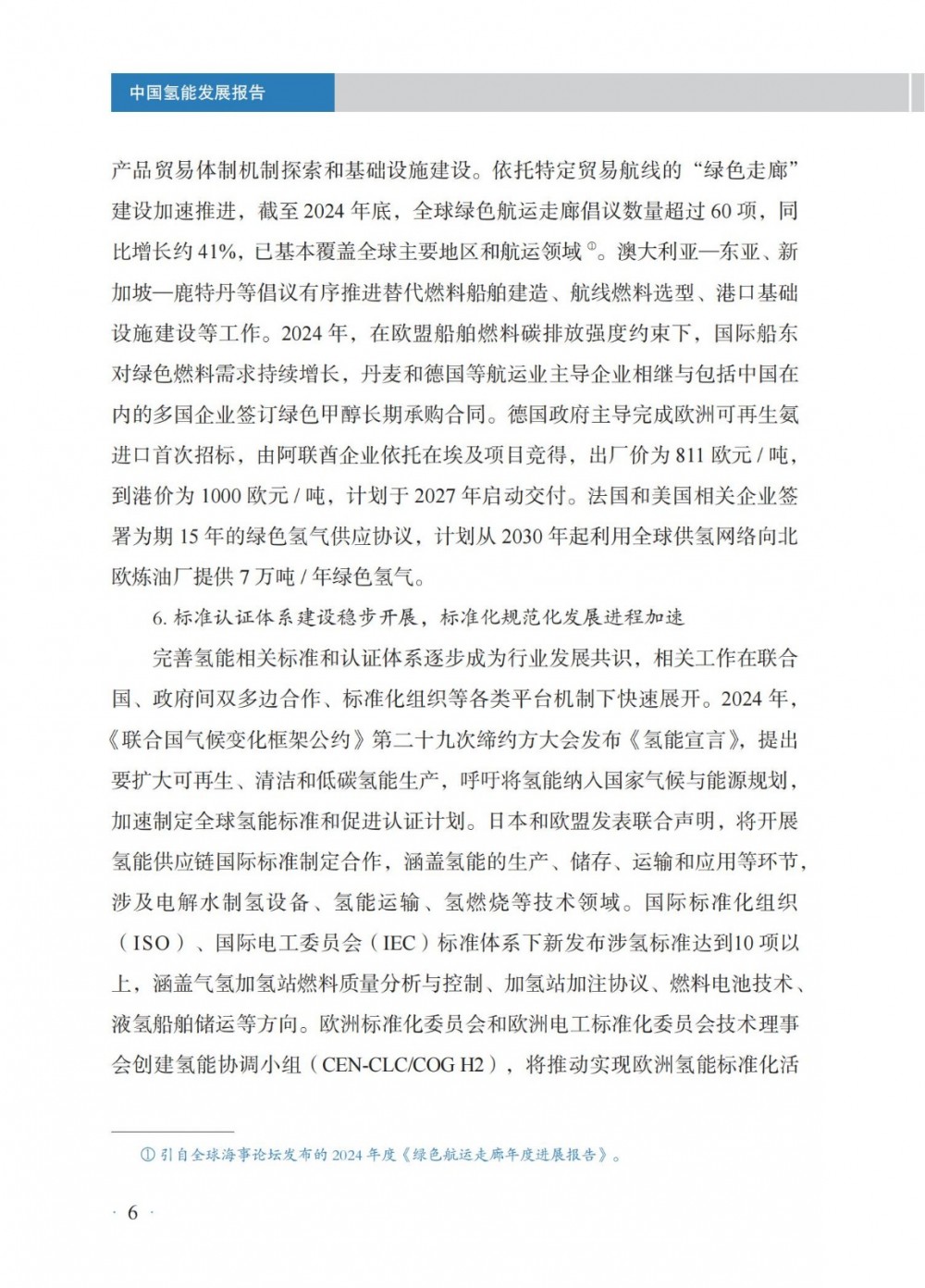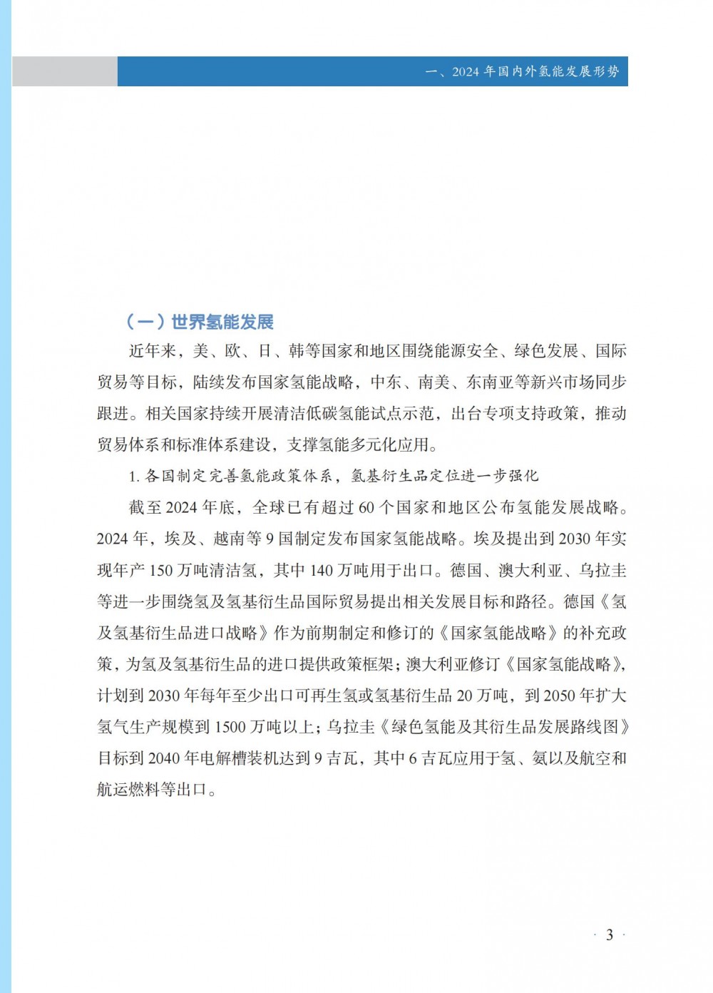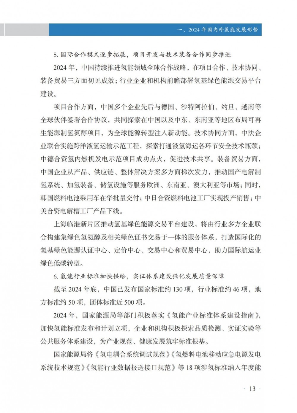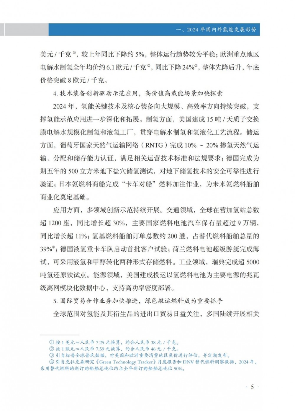 4月30日,國家能(neng)源局發(fa)布(bu)《中(zhong)國氫能(neng)發(fa)展報告(2025)》。 中國氫能發展 國(guo)家層面,氫能作(zuo)為前(qian)沿新興產業列入2024年政(zheng)府工作(zuo)任務,并被(bei)寫(xie)入《中(zhong)華人民共(gong)和國(guo)能源法》,提出“積極有序推進氫能開發利用,促進氫能產業高質(zhi)量發展”。 地方層(ceng)面,共計22個省級行政(zheng)區將氫(qing)能寫入2024年政(zheng)府工作報告。截至(zhi)2024年底,全國累(lei)計發(fa)布氫(qing)能專項政(zheng)策超(chao)560項,因地制宜推(tui)進氫(qing)能產業發(fa)展(zhan)。 截至2024年(nian)(nian)(nian)(nian)底,全國氫(qing)(qing)氣產(chan)能超(chao)5000萬(wan)噸/年(nian)(nian)(nian)(nian),同(tong)(tong)(tong)比(bi)(bi)增(zeng)(zeng)(zeng)長(chang)(chang)約(yue)(yue)(yue)(yue)(yue)1.6%;2024年(nian)(nian)(nian)(nian)全年(nian)(nian)(nian)(nian)氫(qing)(qing)氣產(chan)量超(chao)3650萬(wan)噸,同(tong)(tong)(tong)比(bi)(bi)增(zeng)(zeng)(zeng)長(chang)(chang)約(yue)(yue)(yue)(yue)(yue)3.5%。化(hua)石(shi)能源制氫(qing)(qing)仍占氫(qing)(qing)氣供應主導地位,煤制氫(qing)(qing)產(chan)能約(yue)(yue)(yue)(yue)(yue)2800萬(wan)噸/年(nian)(nian)(nian)(nian),同(tong)(tong)(tong)比(bi)(bi)增(zeng)(zeng)(zeng)長(chang)(chang)約(yue)(yue)(yue)(yue)(yue)0.7%;產(chan)量約(yue)(yue)(yue)(yue)(yue)2070萬(wan)噸,同(tong)(tong)(tong)比(bi)(bi)增(zeng)(zeng)(zeng)長(chang)(chang)約(yue)(yue)(yue)(yue)(yue)6.7%,新增(zeng)(zeng)(zeng)產(chan)量主要(yao)應用于煤制油氣;天(tian)然氣制氫(qing)(qing)產(chan)能約(yue)(yue)(yue)(yue)(yue)1080萬(wan)噸/年(nian)(nian)(nian)(nian),與上年(nian)(nian)(nian)(nian)基本持平;產(chan)量約(yue)(yue)(yue)(yue)(yue)760萬(wan)噸,同(tong)(tong)(tong)比(bi)(bi)下降約(yue)(yue)(yue)(yue)(yue)4.4%。工業副(fu)產(chan)氫(qing)(qing)產(chan)能約(yue)(yue)(yue)(yue)(yue)1070萬(wan)噸/年(nian)(nian)(nian)(nian),同(tong)(tong)(tong)比(bi)(bi)增(zeng)(zeng)(zeng)長(chang)(chang)約(yue)(yue)(yue)(yue)(yue)5.3%;產(chan)量約(yue)(yue)(yue)(yue)(yue)770萬(wan)噸,同(tong)(tong)(tong)比(bi)(bi)增(zeng)(zeng)(zeng)長(chang)(chang)約(yue)(yue)(yue)(yue)(yue)4.0%。電解水制氫(qing)(qing)產(chan)能約(yue)(yue)(yue)(yue)(yue)50萬(wan)噸/年(nian)(nian)(nian)(nian),同(tong)(tong)(tong)比(bi)(bi)增(zeng)(zeng)(zeng)長(chang)(chang)約(yue)(yue)(yue)(yue)(yue)9.7%;產(chan)量約(yue)(yue)(yue)(yue)(yue)32 萬(wan)噸,同(tong)(tong)(tong)比(bi)(bi)增(zeng)(zeng)(zeng)長(chang)(chang)約(yue)(yue)(yue)(yue)(yue)3.6%。 氫(qing)(qing)氣的(de)生產和(he)(he)消費(fei)主要分布在山東、內蒙古、陜西、寧夏、山西等傳(chuan)統重工業所在地(di)區(qu),合成甲醇、合成氨氫(qing)(qing)氣消費(fei)量(liang)占細分氫(qing)(qing)氣消費(fei)領域前兩位,分別約995萬(wan)噸和(he)(he)950萬(wan)噸,占比(bi)27%和(he)(he)26%;煉(lian)化和(he)(he)煤化工氫(qing)(qing)氣消費(fei)量(liang)分別約600萬(wan)噸、405萬(wan)噸,占全國氫(qing)(qing)氣消費(fei)量(liang)16%和(he)(he)11%。其(qi)他氫(qing)(qing)氣消費(fei)分布在交通、供熱、冶金等多個不同(tong)領域。 截(jie)至2024年(nian)底,全國(guo)各(ge)地(di)累計規劃建(jian)設可(ke)再(zai)生(sheng)能源電解水(shui)制氫項目(mu)超600個,其中,已建(jian)成(cheng)項目(mu)超90個,在(zai)建(jian)項目(mu)超80個;已建(jian)成(cheng)產(chan)能約(yue)12.5萬噸/年(nian),主要分(fen)布(bu)在(zai)華北和(he)西(xi)北地(di)區,分(fen)別約(yue)占全國(guo)已建(jian)成(cheng)可(ke)再(zai)生(sheng)能源電解水(shui)制氫產(chan)能45%和(he)44%。2024年(nian)新(xin)建(jian)成(cheng)項目(mu)35個,新(xin)增(zeng)產(chan)能約(yue)4.8萬噸/年(nian),同比增(zeng)長約(yue)62%。從下游消納場景看,主要應用(yong)于交通、煉化、合(he)成(cheng)氨、合(he)成(cheng)甲醇以及冶(ye)金、供熱、發電、儲能、科研等領(ling)域。 根據中國(guo)氫價指數顯示,2024年(nian)全國(guo)平均(jun)生(sheng)產側(ce)、消費側(ce)氫能價格(ge)分(fen)別(bie)降至(zhi)30元(yuan)/千(qian)(qian)克(ke)以(yi)下和52元(yuan)/千(qian)(qian)克(ke)以(yi)下;2024年(nian)12月,全國(guo)氫能生(sheng)產側(ce)價格(ge)降至(zhi)28.0元(yuan)/千(qian)(qian)克(ke),相較(jiao)上年(nian)同期下降幅度約15.6%,消費側(ce)價格(ge)降至(zhi)48.6元(yuan)/千(qian)(qian)克(ke),相較(jiao)上年(nian)同期下降幅度約13.7%,創下氫能生(sheng)產側(ce)、消費側(ce)均(jun)價統計(ji)最低(di)點(dian)。 從不同區域看(kan),2024年(nian)底(di),示范(fan)(fan)(fan)城(cheng)(cheng)(cheng)市(shi)群氫(qing)能生(sheng)(sheng)產(chan)和(he)消(xiao)(xiao)費(fei)(fei)側價(jia)格(ge)(ge)(ge)分(fen)別(bie)(bie)為27.4元(yuan)(yuan)/千克(ke)、45.7元(yuan)(yuan)/千克(ke),非示范(fan)(fan)(fan)城(cheng)(cheng)(cheng)市(shi)群生(sheng)(sheng)產(chan)和(he)消(xiao)(xiao)費(fei)(fei)側價(jia)格(ge)(ge)(ge)分(fen)別(bie)(bie)為28.5元(yuan)(yuan)/千克(ke)、56.4元(yuan)(yuan)/千克(ke),示范(fan)(fan)(fan)城(cheng)(cheng)(cheng)市(shi)群相(xiang)對更(geng)具備價(jia)格(ge)(ge)(ge)優(you)勢(shi)(shi);從變化(hua)趨勢(shi)(shi)來(lai)看(kan),示范(fan)(fan)(fan)城(cheng)(cheng)(cheng)市(shi)群和(he)非示范(fan)(fan)(fan)城(cheng)(cheng)(cheng)市(shi)群價(jia)差收窄趨勢(shi)(shi)明顯,2022、2023年(nian)底(di)示范(fan)(fan)(fan)城(cheng)(cheng)(cheng)市(shi)群生(sheng)(sheng)產(chan)側價(jia)格(ge)(ge)(ge)分(fen)別(bie)(bie)高(gao)于非示范(fan)(fan)(fan)城(cheng)(cheng)(cheng)市(shi)群4.5元(yuan)(yuan)/千克(ke)、2.7元(yuan)(yuan)/千克(ke),2024年(nian)底(di)示范(fan)(fan)(fan)城(cheng)(cheng)(cheng)市(shi)群生(sheng)(sheng)產(