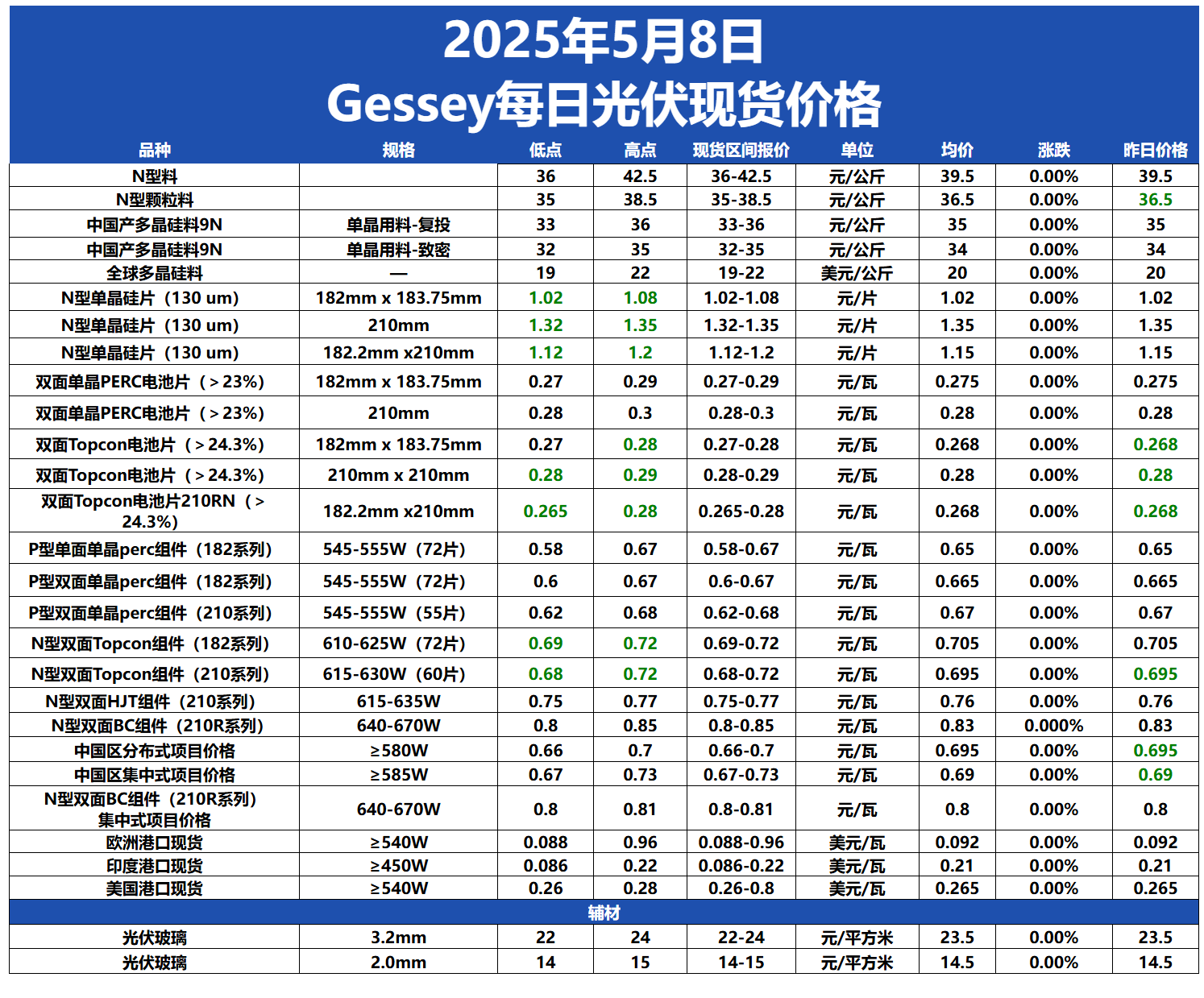 Gessey:5月8日每日光伏市場行情2025-05-08 18:40來源:gessey瀏覽數:269次