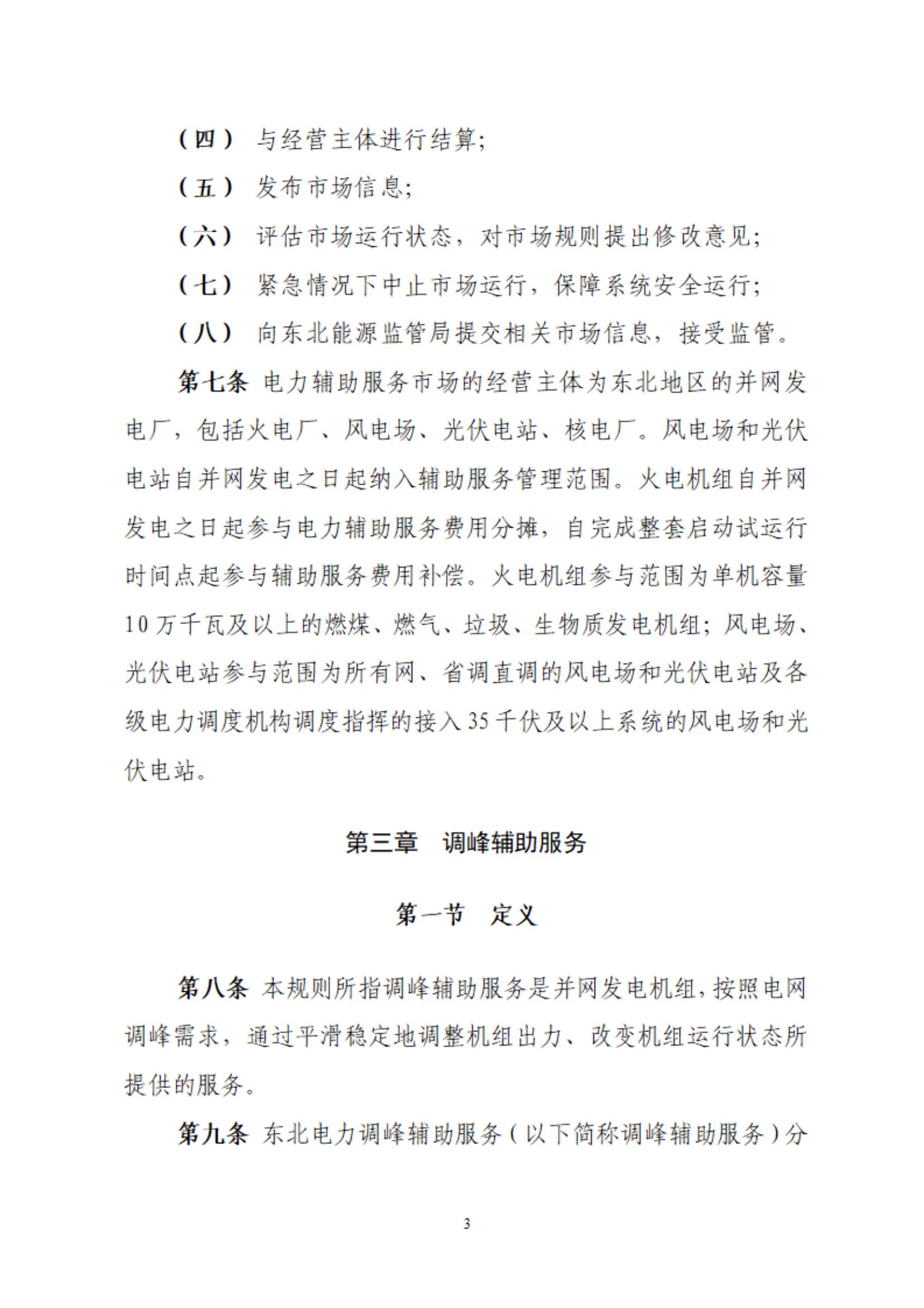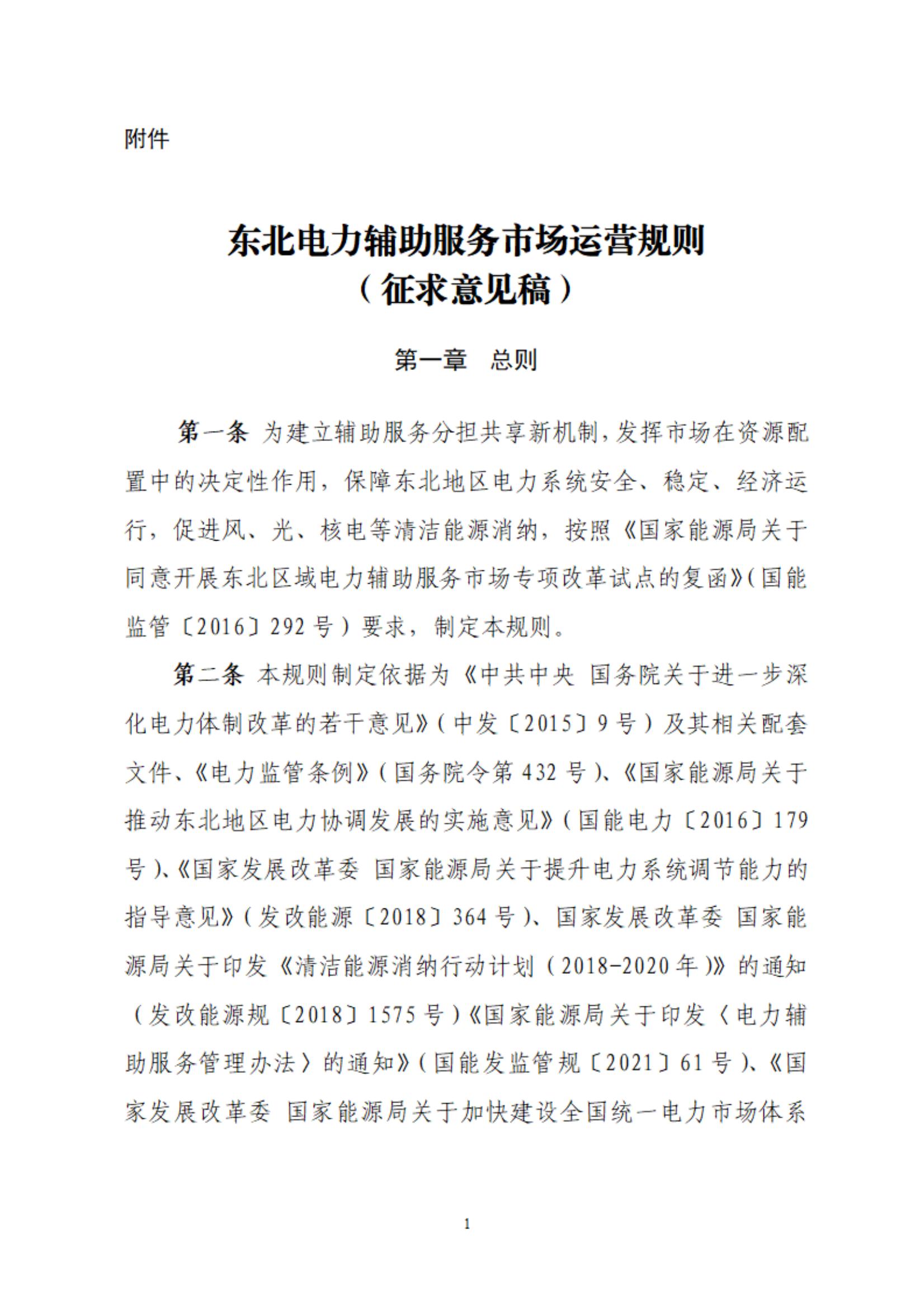 近日,國家能源局東北監管局發布關于征求《東北電力輔助服務市場運營規則(征求意見稿)》意見的公告,公告指出,電力輔助服務市場的經營主體為東北地區的并網發電廠,包括火電廠、風電場、光伏電站、核電廠。風電場和光伏電站自并網發電之日起納入輔助服務管理范圍。火電機組自并網發電之日起參與電力輔助服務費用分攤,自完成整套啟動試運行時間點起參與輔助服務費用補償。火電機組參與范圍為單機容量10萬千瓦及以上的燃煤、燃氣、垃圾、生物質發電機組:風電場光伏電站參與范圍為所有網、省調直調的風電場和光伏電站及各級電力調度機構調度指揮的接入35千伏及以上系統的風電場和光伏電站。 原文如下: