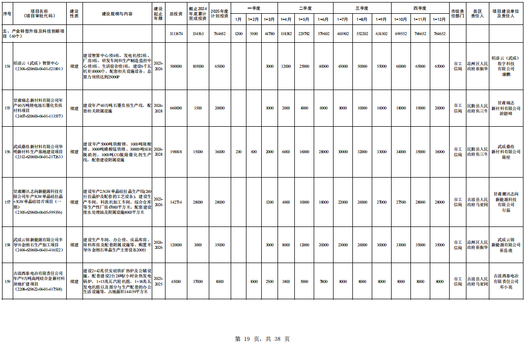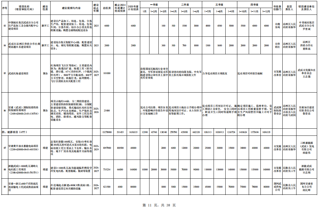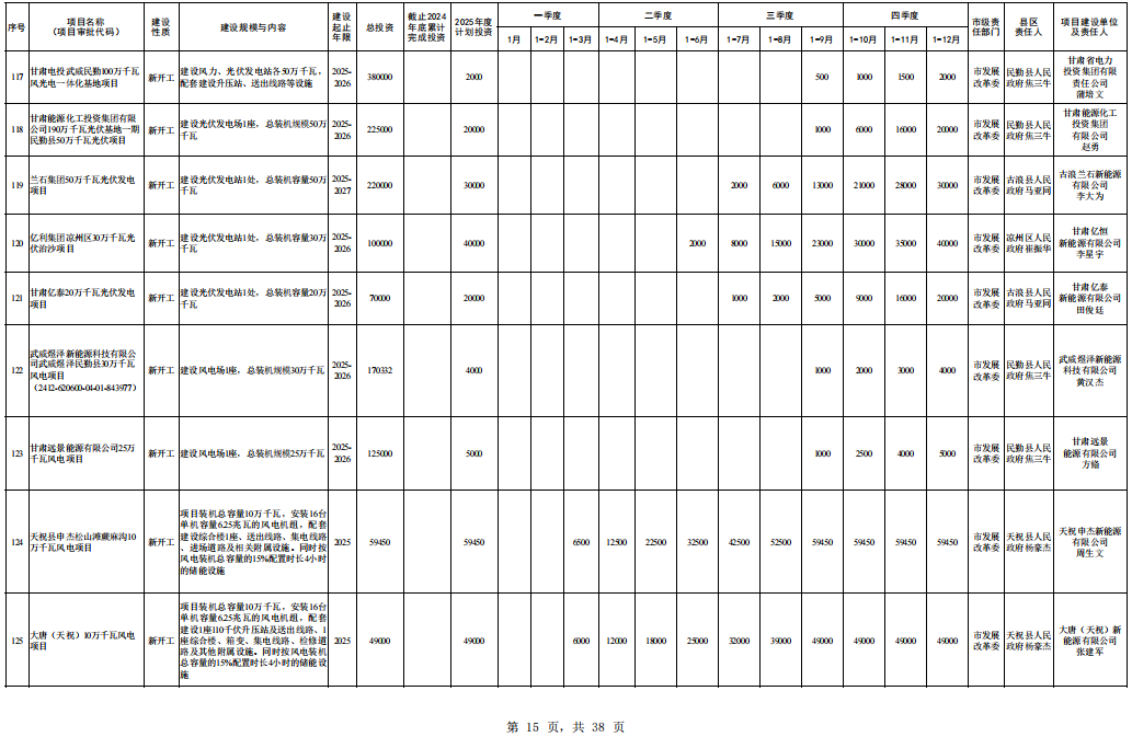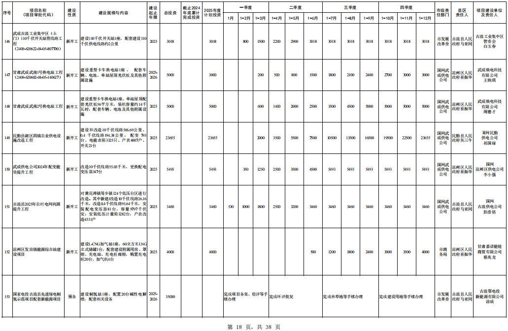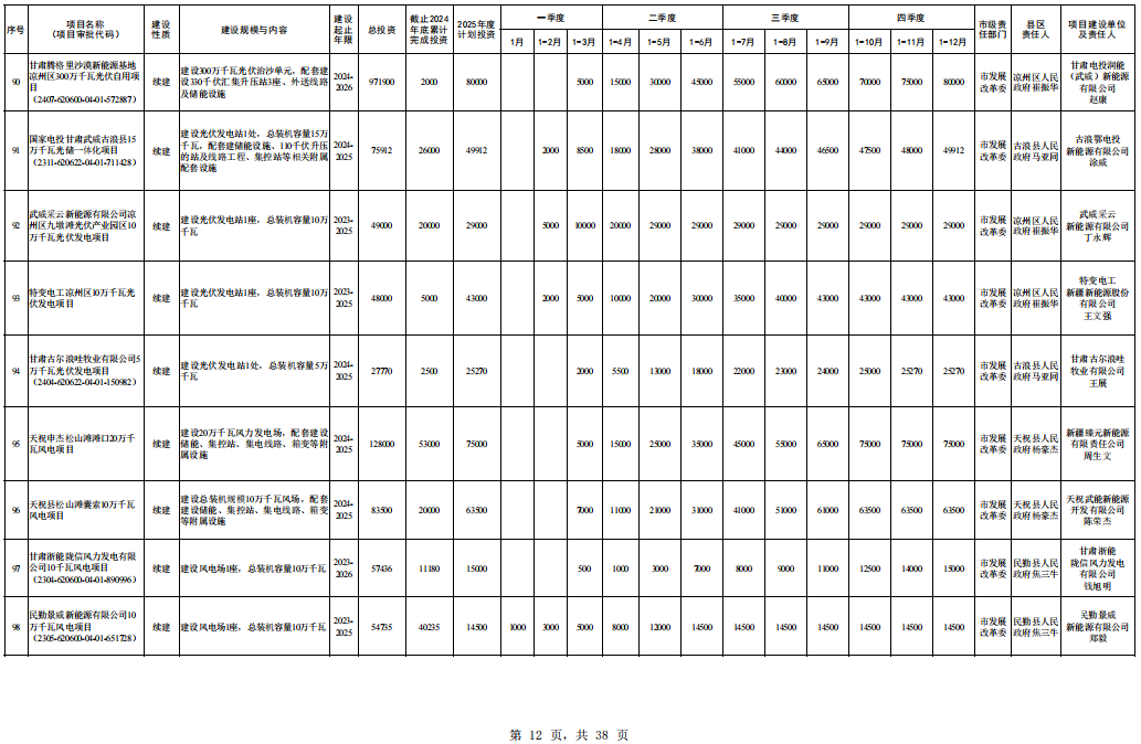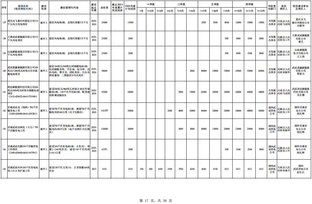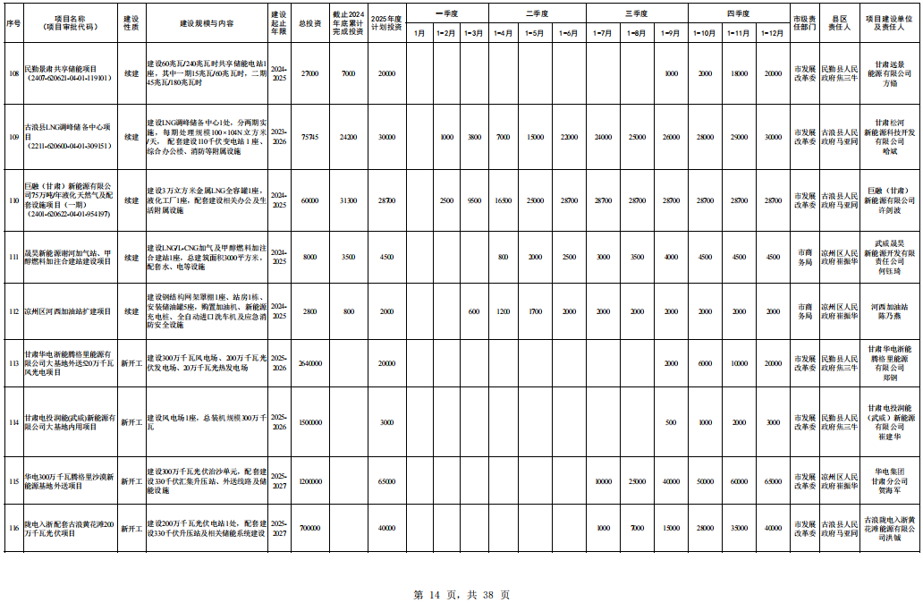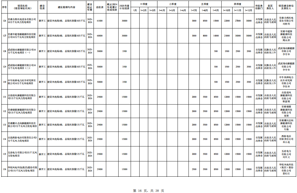 近日,武威市人民(min)政府發布《武威市2025年(nian)(nian)市列重大(da)項目(mu)清單》。列入武威市2025年(nian)(nian)市列重大(da)氫能項目(mu)有3個,總投資58000萬(wan)元,2025年(nian)(nian)計劃投資12500萬(wan)元。項目(mu)分別是(shi): 國家電投古(gu)浪縣先進綠(lv)電制(zhi)氫(qing)示范項目配套新能源項目,為(wei)預備(bei)項目,建設(she)制(zhi)氫(qing)站1座(zuo),配置20臺堿性電解槽,配套相關設(she)備(bei),總(zong)投資35000萬(wan)元(yuan),建設(she)單(dan)位為(wei)古(gu)浪鄂電投新能源有(you)限公(gong)司。 武(wu)威銳(rui)武(wu)新能源科技(ji)有限公(gong)司制氫裝(zhuang)備(bei)制造(zao)項(xiang)目(mu),為新開工項(xiang)目(mu),建(jian)(jian)設(she)制氫裝(zhuang)備(bei)生(sheng)產(chan)線1條,配套建(jian)(jian)設(she)生(sheng)產(chan)車(che)間(jian)、原料車(che)間(jian)、成(cheng)品車(che)間(jian)、辦公(gong)樓及其他附屬設(she)施(shi),總投資15000萬元,建(jian)(jian)設(she)單位為武(wu)威銳(rui)武(wu)新能源科技(ji)有限公(gong)司。 晟昊新(xin)能(neng)(neng)源謝河加(jia)氣站、甲醇燃料(liao)加(jia)注(zhu)合建(jian)站建(jian)設(she)(she)項目,為續建(jian)項目,建(jian)設(she)(she)LNG/L-CNG加(jia)氣及甲醇燃料(liao)加(jia)注(zhu)合建(jian)站1座,總(zong)(zong)建(jian)筑面積3000平方米,配套水、電(dian)等設(she)(she)施(shi),總(zong)(zong)投資8000萬元,建(jian)設(she)(she)單位為武威晟昊新(xin)能(neng)(neng)源開發有限責(ze)任公司。 項目表如下: