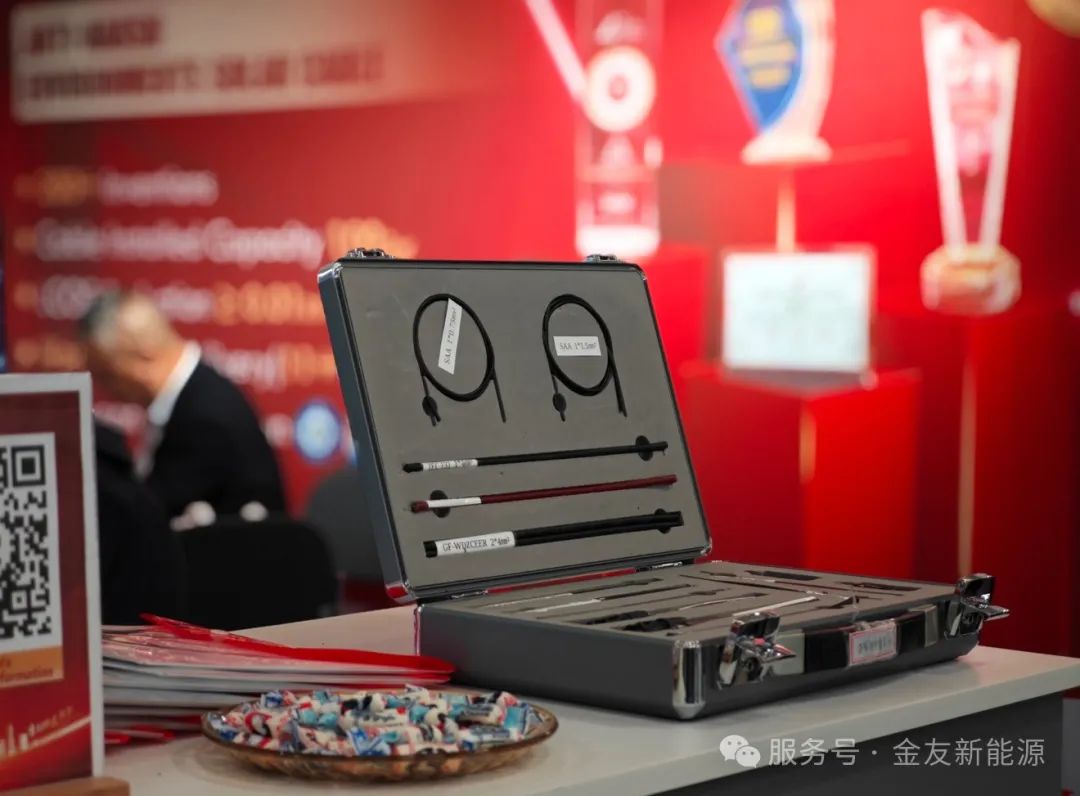 2025年5月7日(ri)(ri)至9日(ri)(ri),金友集團(tuan)以“全(quan)環境防護(hu)鎧裝光(guang)伏(fu)電纜”為先鋒,強勢登陸德國慕尼黑(hei)The Smart E Europe 2025展(zhan)會,繼東京展(zhan)后再度點燃全(quan)球光(guang)伏(fu)行業熱(re)情!作(zuo)為“出海計劃”全(quan)面推行的(de)(de)重(zhong)要里程(cheng)碑,這(zhe)場展(zhan)會不僅展(zhan)現了金友技術硬(ying)實(shi)力,更正式拉開(kai)歐洲市場開(kai)拓的(de)(de)序幕。 展會上(shang),金(jin)友新一(yi)代鎧(kai)裝光伏(fu)電纜以“抗鹽霧(wu)、耐極溫、超長壽命(25年)”為核心優勢驚艷全場。其獨創的生(sheng)態(tai)友好設(she)計(ji)可減少環(huan)境破壞,直埋(mai)與(yu)架(jia)空場景靈(ling)活適配,完美契(qi)合歐洲對低碳施(shi)工的嚴苛標準,吸引了(le)德國(guo)(guo)、意大(da)利(li)、南(nan)非、尼日利(li)亞、突尼斯等30余國(guo)(guo)客戶駐足洽談。歐洲能源代表盛(sheng)贊(zan):“金(jin)友產品重新定義(yi)了(le)光伏(fu)電纜的可靠性與(yu)環(huan)保價值!” 從(cong)東京到慕尼黑,金友以(yi)兩場(chang)海外(wai)展(zhan)會(hui)為支(zhi)點(dian),撬動亞非歐(ou)(ou)三大洲(zhou)市場(chang)。此(ci)次歐(ou)(ou)洲(zhou)首站捷報頻傳(chuan)——不僅與多(duo)家(jia)企業(ye)達成戰略(lve)合(he)作,更通過信息向全球客(ke)戶傳(chuan)遞“中國智造(zao)”的綠色(se)承諾。展(zhan)會(hui)現場(chang),金友同(tong)步(bu)啟動“歐(ou)(ou)洲(zhou)伙伴計劃”,以(yi)慕尼黑為樞(shu)紐,輻(fu)射非洲(zhou)、中東、波(bo)蘭等重點(dian)市場(chang),加速(su)本土化服(fu)務網絡建(jian)設。 以此(ci)次展會為起(qi)點(dian),金友將攜(xie)全(quan)場(chang)(chang)景光伏解決(jue)方案深(shen)入歐(ou)洲(zhou)腹地(di),聯動非洲(zhou)新(xin)興(xing)市場(chang)(chang),持續輸出“高(gao)效+生(sheng)態”雙驅動的技術理念。我們期待與全(quan)球伙伴攜(xie)手,在綠色能源賽(sai)道(dao)上共攀高(gao)峰,以創新(xin)之力賦能零碳未來! 金友集團,讓(rang)陽光更(geng)有(you)力(li)量(liang)!
