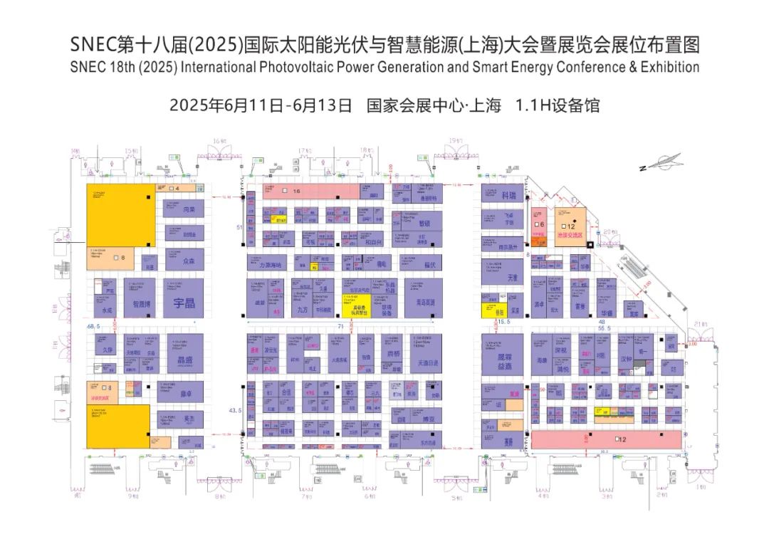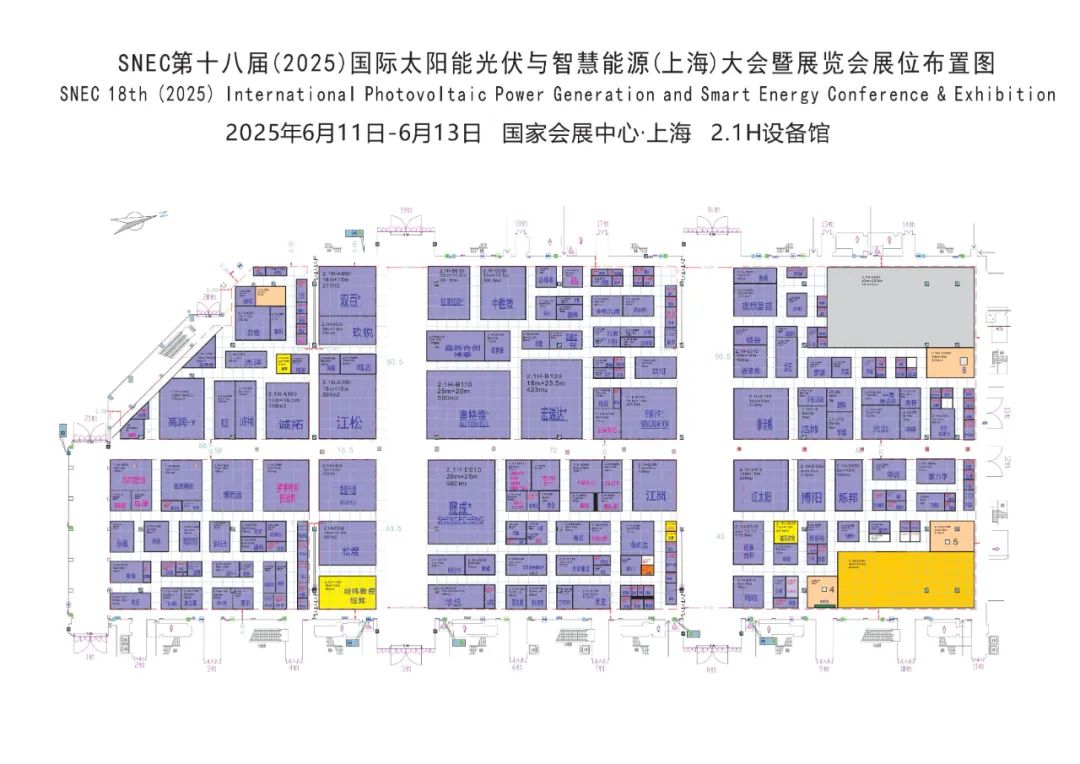 6月11~13日,一年(nian)一度的光伏盛會——2025年(nian)SNEC展會即將(jiang)在上(shang)海(hai)舉行,展館地點位于上(shang)海(hai)國家會展中心。(和(he)2024年(nian)一樣) 展(zhan)館展(zhan)出面積38萬(wan)平方米(mi),為(wei)避免(mian)逛展(zhan)抓馬,小(xiao)編特此制(zhi)做(zuo)了(le)一份參(can)展(zhan)指(zhi)南,以供行業同仁參(can)考。 首先,觀(guan)眾(zhong)展出(chu)時間為6月11日(ri)、6月12日(ri) 9:00 - 17:00,6月13日(ri)14:00開始撤(che)館(guan)。 再來看展館(guan),上海國家會展中心(xin)分為(wei)上下2層,共(gong)14個展館(guan),一層共(gong)8個展館(guan)、2層共(gong)6個展館(guan)。(后面附上完整的各展館(guan)企(qi)業平(ping)面布置圖) 展館一(yi)層展館主要為支(zhi)架、生產設備、儲能(neng)系統(tong)和(he)逆變(bian)器(qi)。 支架(jia):3H館 生產設備:1.1、1.2、2.1館 逆變(bian)器、電(dian)源、儲能(neng)裝備及系統:4.1、5.1、6.1、7.1、8.1館 二層(ceng)展館包(bao)括材(cai)料(liao)、光伏電池、組件,系統(tong)集成 材料:2.2 光伏電池、組(zu)件,系(xi)統集成:5.2、2.6、7.2、8.2館(guan) 最(zui)后(hou),民以食為天,展館現場餐(can)飲鋪位共50余家,當地美食、連鎖(suo)快餐(can)、便利店(dian)應有盡有。 向右滑動查(cha)看(kan)更多(duo) >> 展(zhan)位圖見下: 一樓展館見下: 二樓展館(guan)見下: