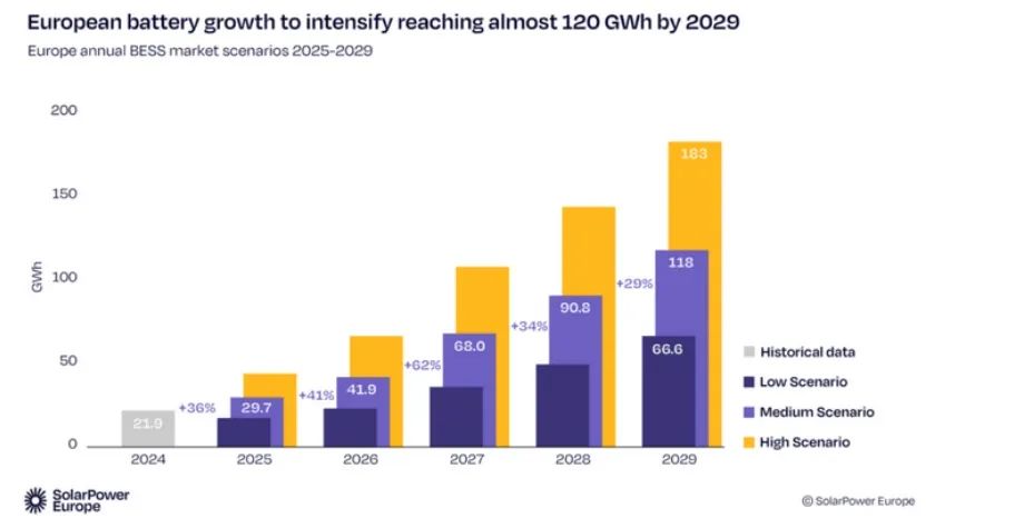 歐洲電池儲能市場展望:到2029年累計部署將達400GWh2025-06-05 14:49瀏覽數:197次