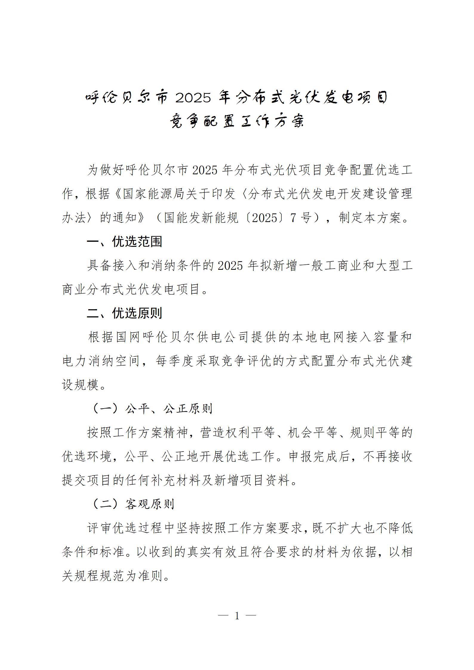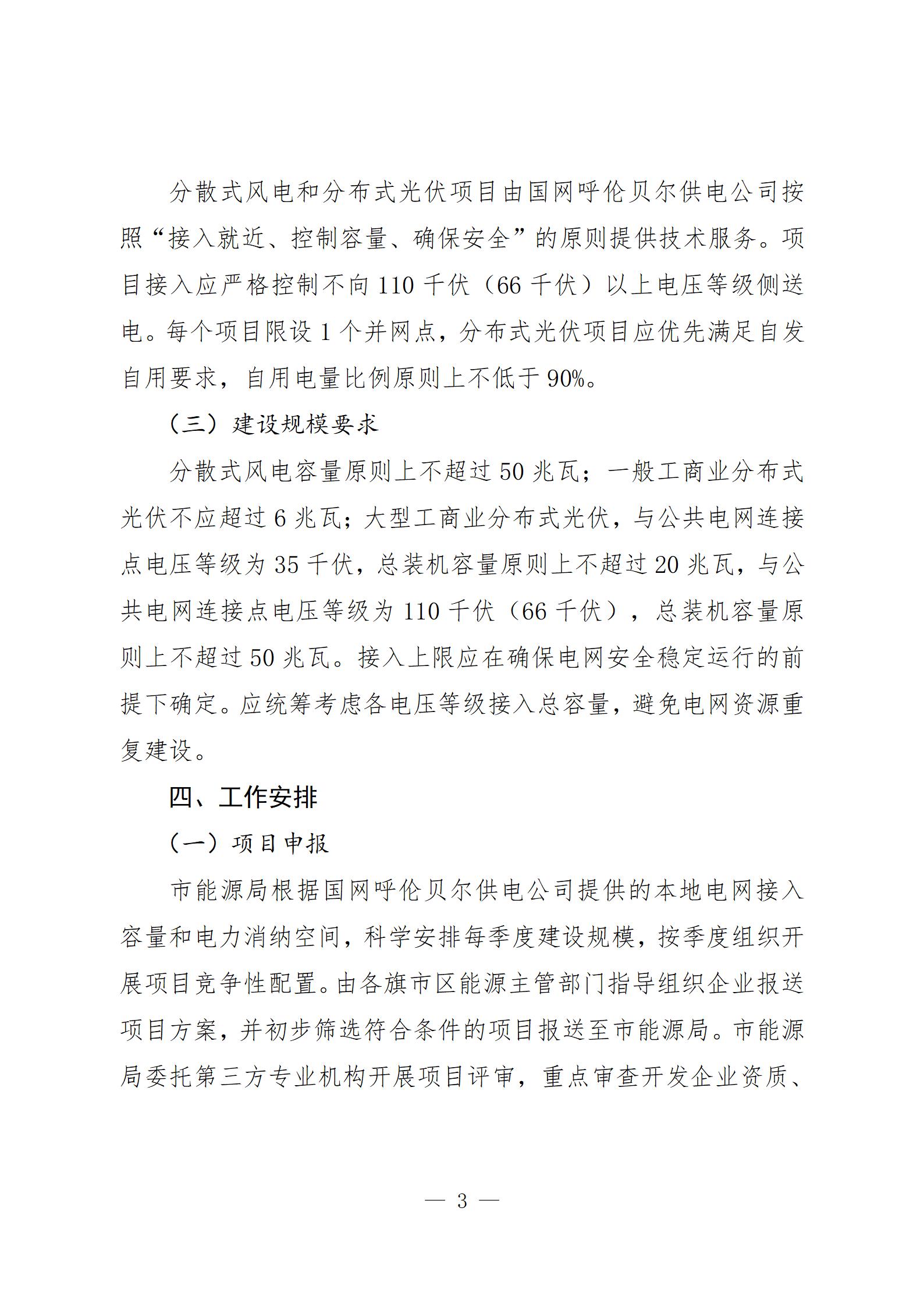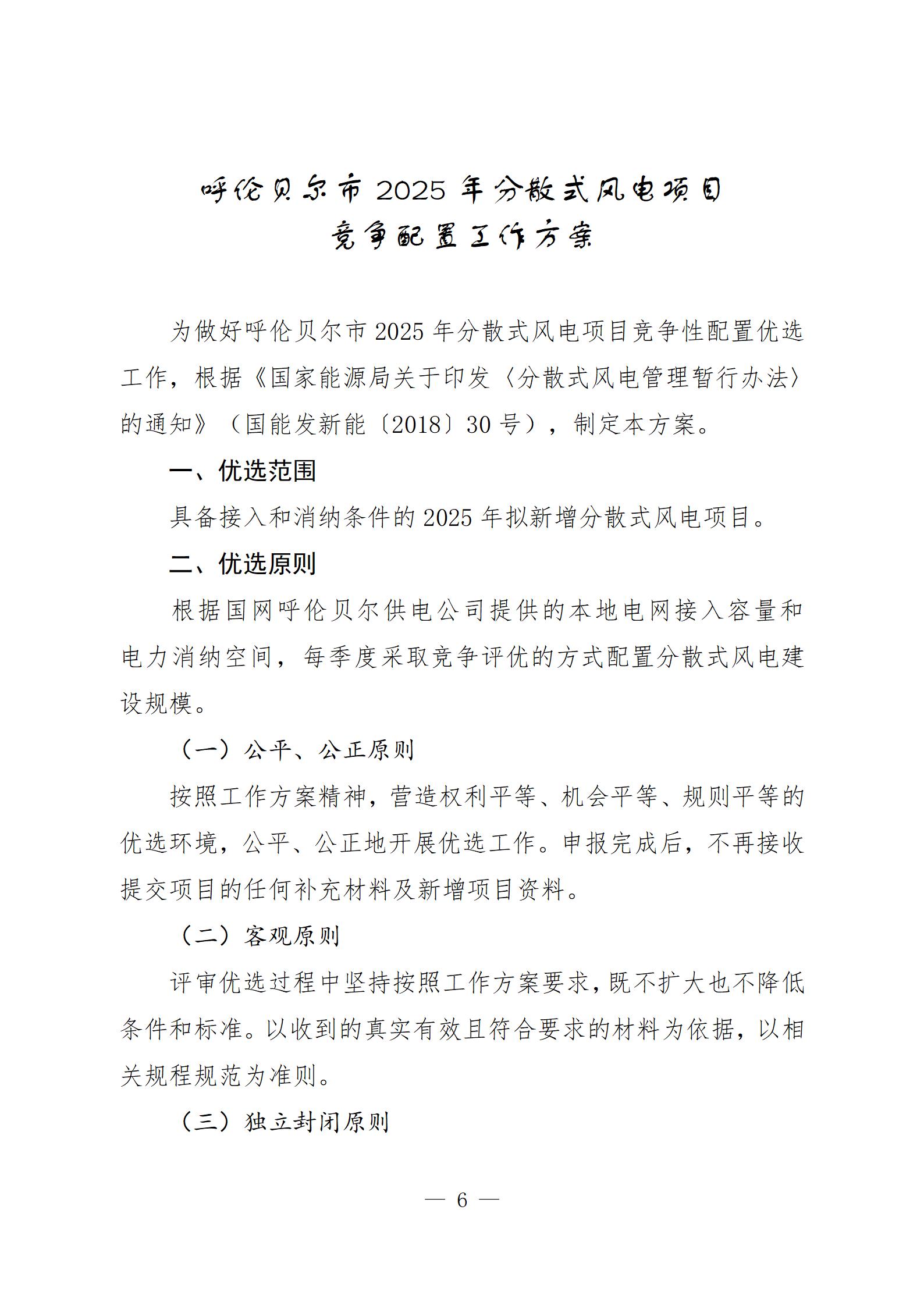 6月6日,鄂倫春自治旗發展和改革委員會發布關于開展2025年分散式風電、分布式光伏發電項目競爭性配置工作的公告,公告顯示,項目申報要求: 1.分散式風電項目:單個項目容量不超過50兆瓦,需符合國土空間規劃,避開永久基本農田、生態保護紅線等敏感區域。嚴禁多個項目集中布設在同一片區域或以“打包分布”方式規避集中式風電項目管理要求。 2.分布式光伏項目:一般工商業項目。單個項目容量不超過6兆瓦;大型工商業項目。接入35千伏電壓等級不超過20兆瓦,接入110千伏(66千伏)不超過50兆瓦。應在具備一定負荷基礎的工業園區、大型公共建筑、商業樓宇、企事業單位等建筑物及其附屬場所建設。 申報企業要求: 1.企業具備獨立法人資格,需提供2022-2024年度審計報告。 2.未被列入“信用中國”失信名單或“國家企業信用信息公示系統”嚴重違法失信名單。 3.2025年前已獲指標但未按期建設的項目所屬集團及其關聯企業,不得參與本年度申報。 原文如下: 鄂倫春自治旗發展和改革委員會 關于開展2025年分散式風電、分布式光伏發電項目競爭性配置工作的公告 為推進鄂倫春自治旗分散式風電、分布式光伏發電項目高質量發展,根據《呼倫貝爾市2025年分布式能源工作方案》,現組織開展鄂倫春自治旗2025年分散式風電、分布式光伏發電項目申報工作,有關事項公告如下。 一、申報企業要求 1.企業具備獨立法人資格,需提供2022-2024年度審計報告。 2.未被列入“信用中國”失信名單或“國家企業信用信息公示系統”嚴重違法失信名單。 3.2025年前已獲指標但未按期建設的項目所屬集團及其關聯企業,不得參與本年度申報。 二、項目申報要求 1.分散式風電項目:單個項目容量不超過50兆瓦,需符合國土空間規劃,避開永久基本農田、生態保護紅線等敏感區域。嚴禁多個項目集中布設在同一片區域或以“打包分布”方式規避集中式風電項目管理要求。 2.分布式光伏項目:一般工商業項目。單個項目容量不超過6兆瓦;大型工商業項目。接入35千伏電壓等級不超過20兆瓦,接入110千伏(66千伏)不超過50兆瓦。應在具備一定負荷基礎的工業園區、大型公共建筑、商業樓宇、企事業單位等建筑物及其附屬場所建設 三、其他要求 1.項目申報單位按附件要求填寫項目匯總表,編制分散式風電、分布式光伏發電項目申報文件,裝訂成冊,每個申報項目需提交2套常規申報資料和5套隱去投資主體信息的申報資料,將電子版材料刻錄至光盤。 2.請于2025年6月13日17:00前將相關資料報送至鄂倫春自治旗發展改革委2樓221室,逾期不予受理。 3.由旗發展改革委指導組織企業報送項目方案,并初步篩選符合條件的項目報送至市能源局。市能源局委托第三方專業機構開展項目評審,重點審查開發企業資質、選址條件、電網接入可行性、自用消納能力、建設進度安排等關鍵因素。 聯系人:武阿迪;聯系電話:18547043774 附件:1.呼倫貝爾市2025年分布式能源工作方案 2.呼倫貝爾市2025年分散式風電項目競爭配置工作方案 3.呼倫貝爾市2025年分布式光伏發電項目競爭配置工作方案 4.項目匯總表