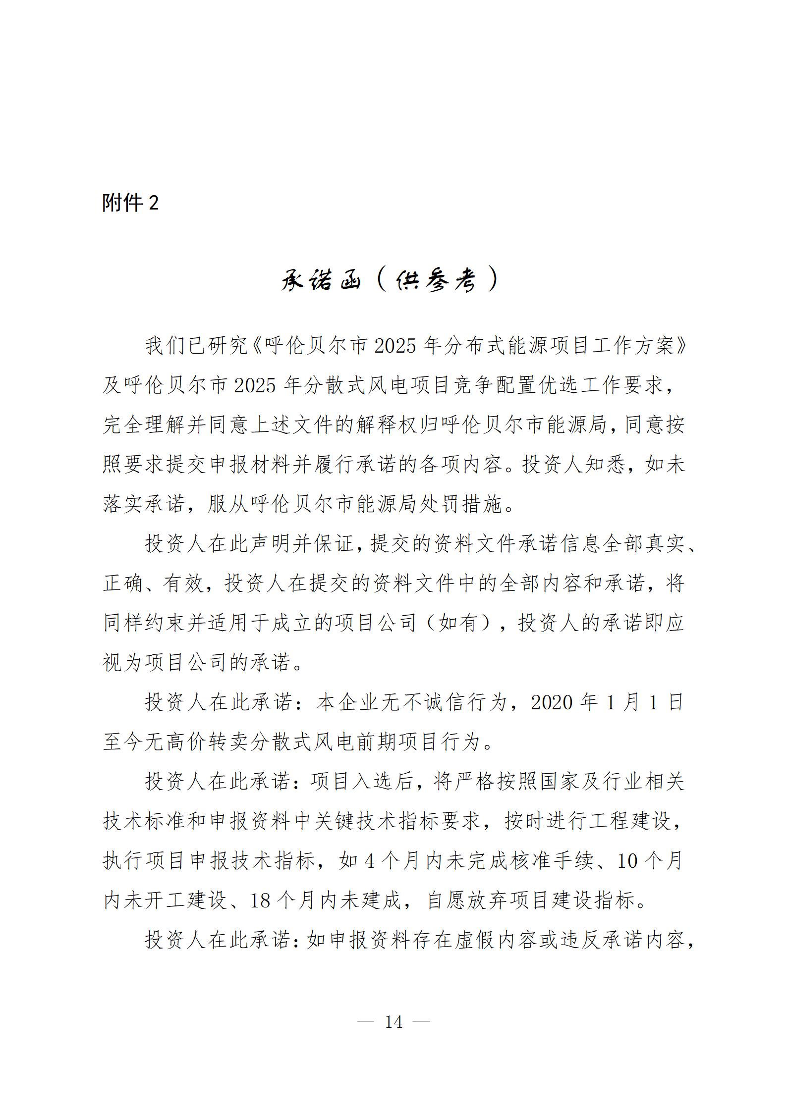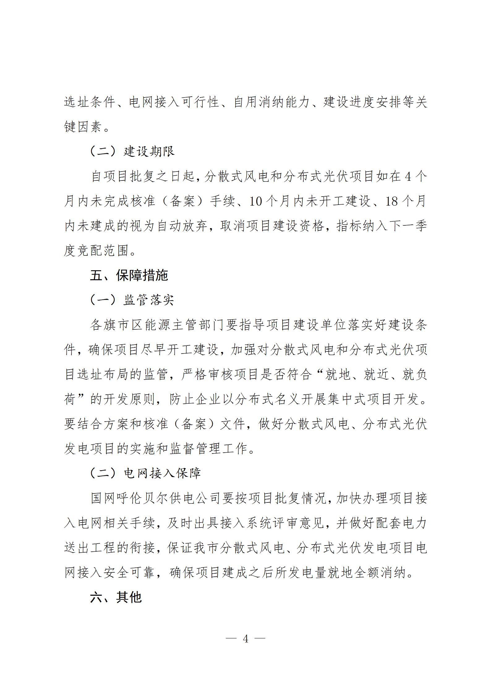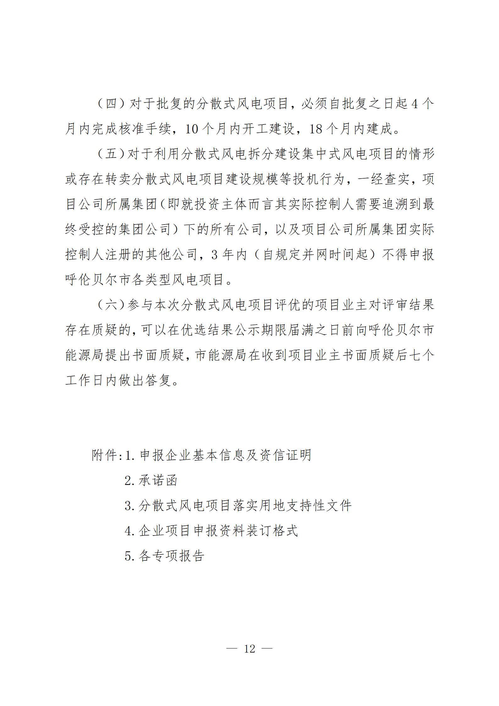 6月6日,鄂倫春自治旗發展和改革委員會發布關于開展2025年分散式風電、分布式光伏發電項目競爭性配置工作的公告,公告顯示,項目申報要求: 1.分散式風電項目:單個項目容量不超過50兆瓦,需符合國土空間規劃,避開永久基本農田、生態保護紅線等敏感區域。嚴禁多個項目集中布設在同一片區域或以“打包分布”方式規避集中式風電項目管理要求。 2.分布式光伏項目:一般工商業項目。單個項目容量不超過6兆瓦;大型工商業項目。接入35千伏電壓等級不超過20兆瓦,接入110千伏(66千伏)不超過50兆瓦。應在具備一定負荷基礎的工業園區、大型公共建筑、商業樓宇、企事業單位等建筑物及其附屬場所建設。 申報企業要求: 1.企業具備獨立法人資格,需提供2022-2024年度審計報告。 2.未被列入“信用中國”失信名單或“國家企業信用信息公示系統”嚴重違法失信名單。 3.2025年前已獲指標但未按期建設的項目所屬集團及其關聯企業,不得參與本年度申報。 原文如下: 鄂倫春自治旗發展和改革委員會 關于開展2025年分散式風電、分布式光伏發電項目競爭性配置工作的公告 為推進鄂倫春自治旗分散式風電、分布式光伏發電項目高質量發展,根據《呼倫貝爾市2025年分布式能源工作方案》,現組織開展鄂倫春自治旗2025年分散式風電、分布式光伏發電項目申報工作,有關事項公告如下。 一、申報企業要求 1.企業具備獨立法人資格,需提供2022-2024年度審計報告。 2.未被列入“信用中國”失信名單或“國家企業信用信息公示系統”嚴重違法失信名單。 3.2025年前已獲指標但未按期建設的項目所屬集團及其關聯企業,不得參與本年度申報。 二、項目申報要求 1.分散式風電項目:單個項目容量不超過50兆瓦,需符合國土空間規劃,避開永久基本農田、生態保護紅線等敏感區域。嚴禁多個項目集中布設在同一片區域或以“打包分布”方式規避集中式風電項目管理要求。 2.分布式光伏項目:一般工商業項目。單個項目容量不超過6兆瓦;大型工商業項目。接入35千伏電壓等級不超過20兆瓦,接入110千伏(66千伏)不超過50兆瓦。應在具備一定負荷基礎的工業園區、大型公共建筑、商業樓宇、企事業單位等建筑物及其附屬場所建設 三、其他要求 1.項目申報單位按附件要求填寫項目匯總表,編制分散式風電、分布式光伏發電項目申報文件,裝訂成冊,每個申報項目需提交2套常規申報資料和5套隱去投資主體信息的申報資料,將電子版材料刻錄至光盤。 2.請于2025年6月13日17:00前將相關資料報送至鄂倫春自治旗發展改革委2樓221室,逾期不予受理。 3.由旗發展改革委指導組織企業報送項目方案,并初步篩選符合條件的項目報送至市能源局。市能源局委托第三方專業機構開展項目評審,重點審查開發企業資質、選址條件、電網接入可行性、自用消納能力、建設進度安排等關鍵因素。 聯系人:武阿迪;聯系電話:18547043774 附件:1.呼倫貝爾市2025年分布式能源工作方案 2.呼倫貝爾市2025年分散式風電項目競爭配置工作方案 3.呼倫貝爾市2025年分布式光伏發電項目競爭配置工作方案 4.項目匯總表