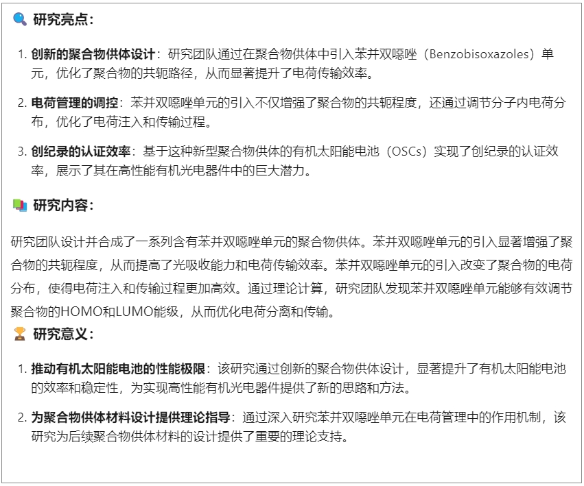 華南師范大學劉升建 AM:19.4%!聚合物給體共軛單元設計改善電荷管理實現有機光伏19.1%認證效率!2025-06-10 16:11來源:gessey瀏覽數:252次