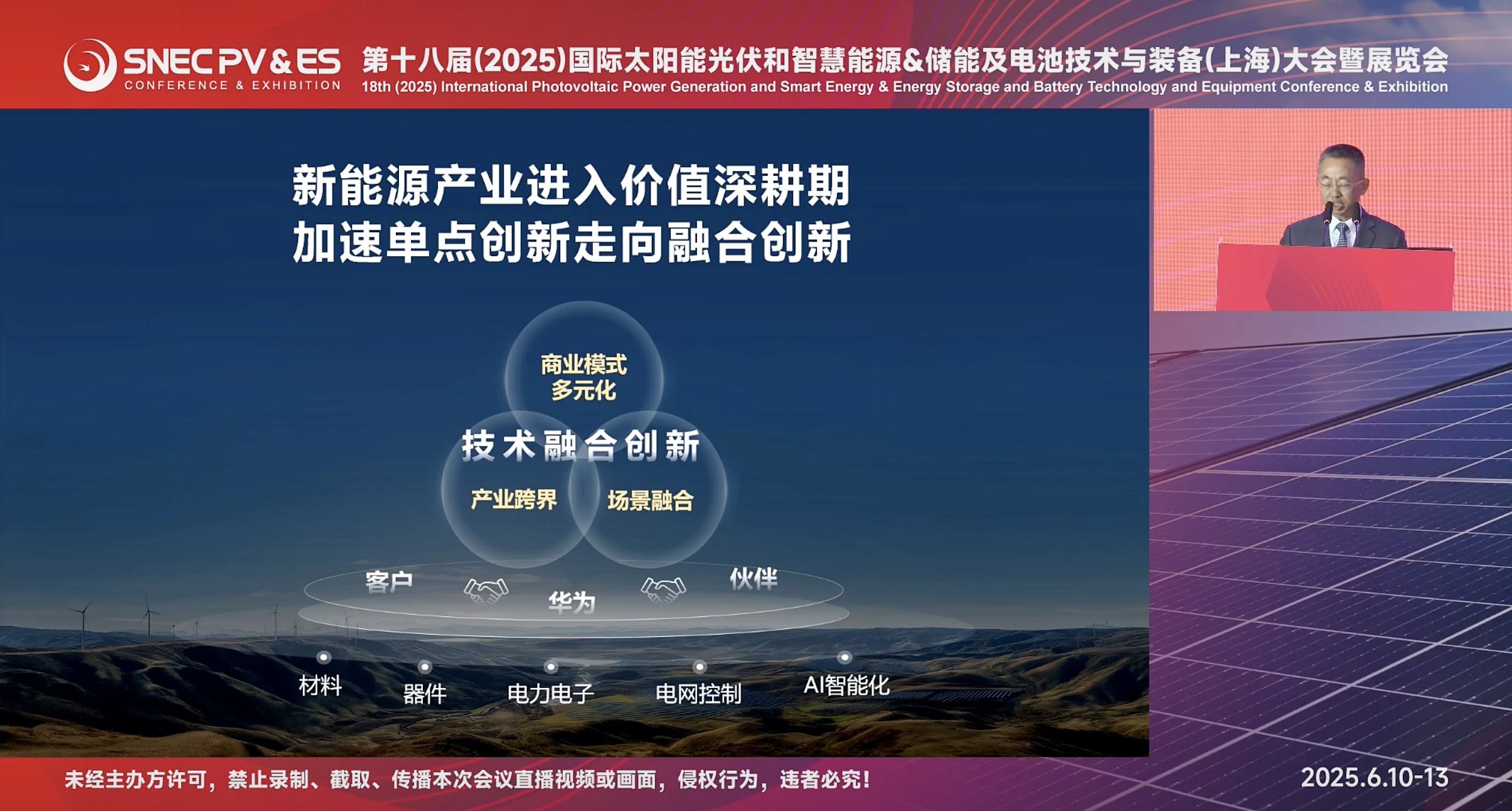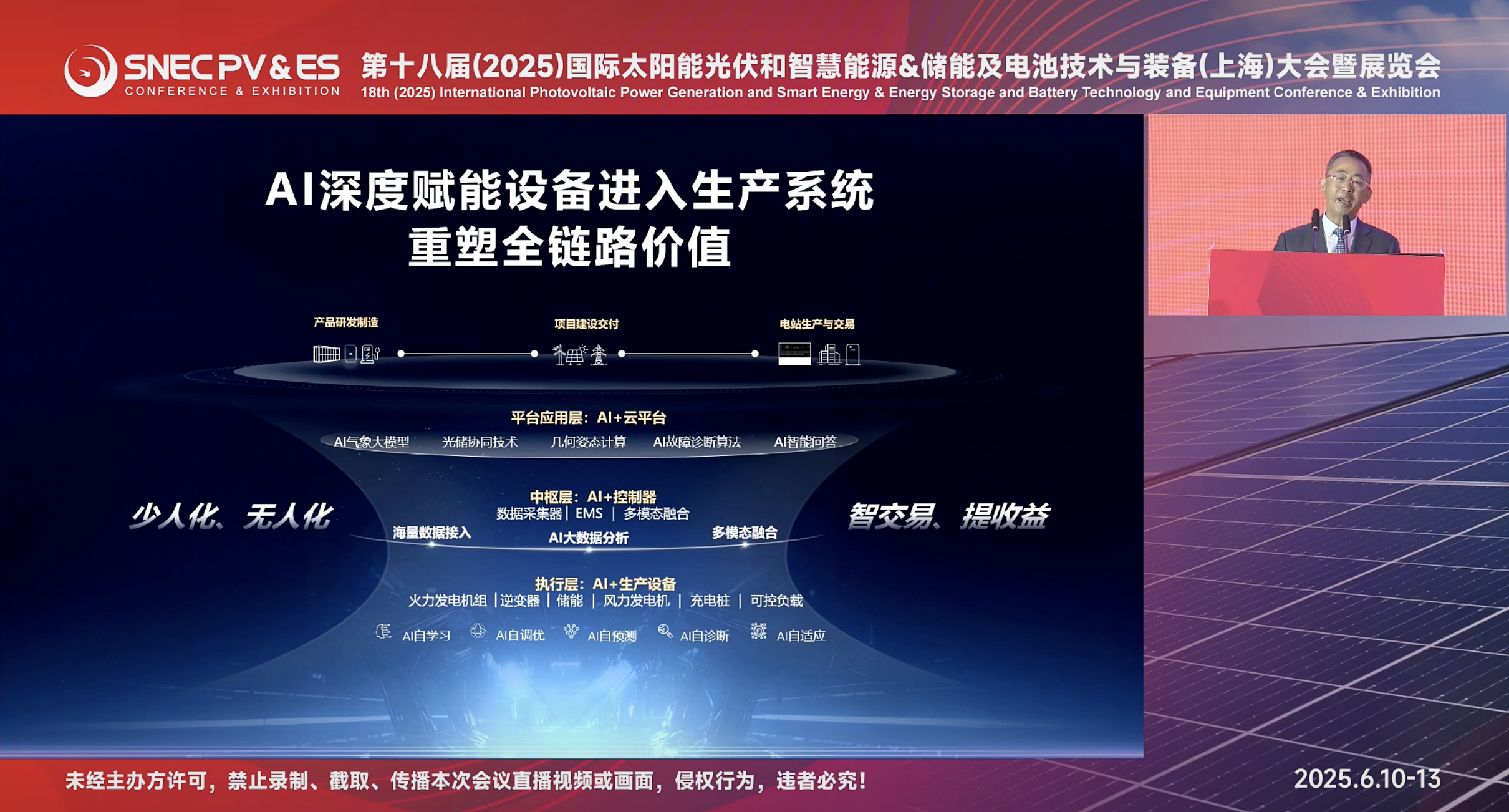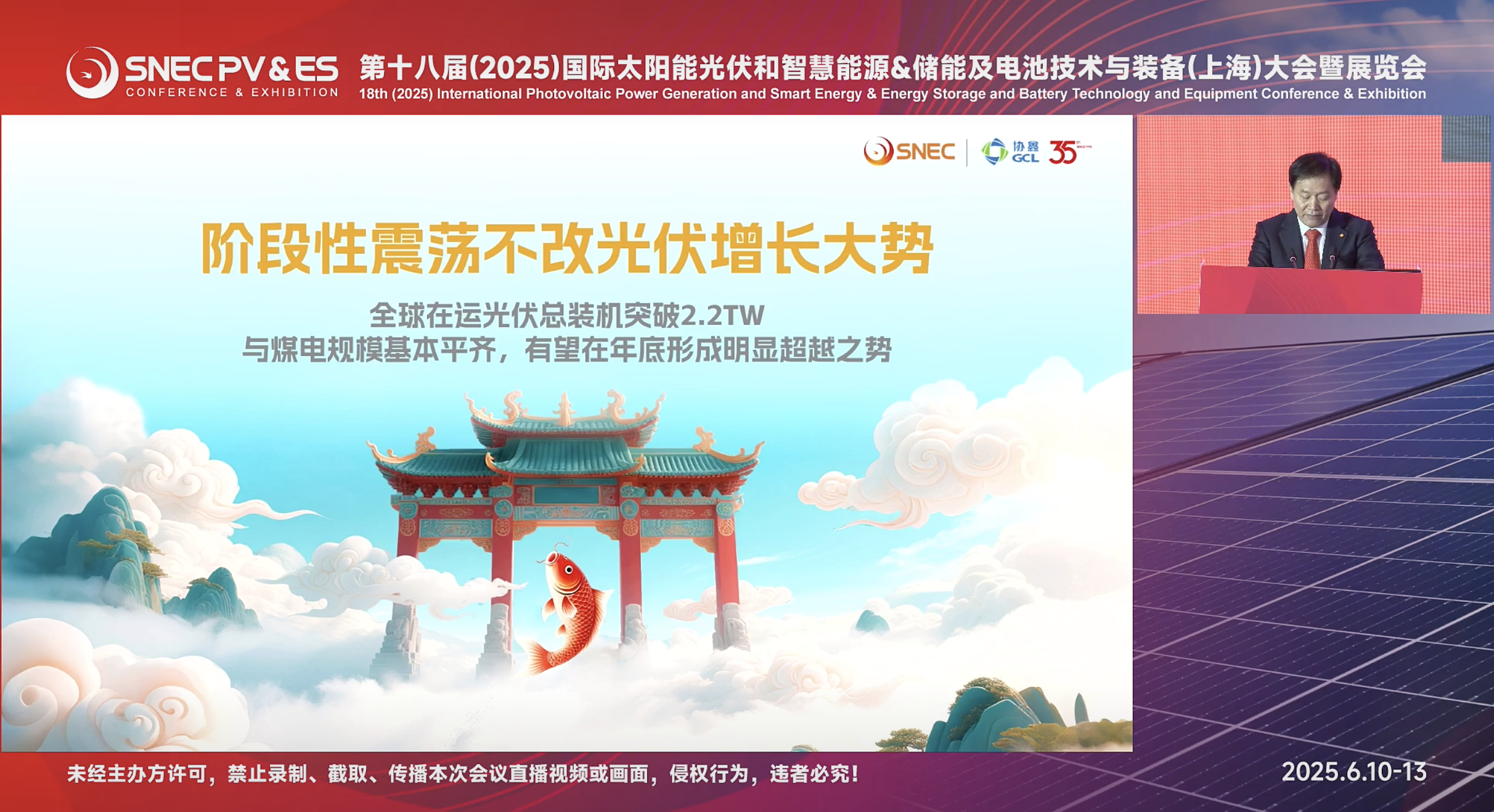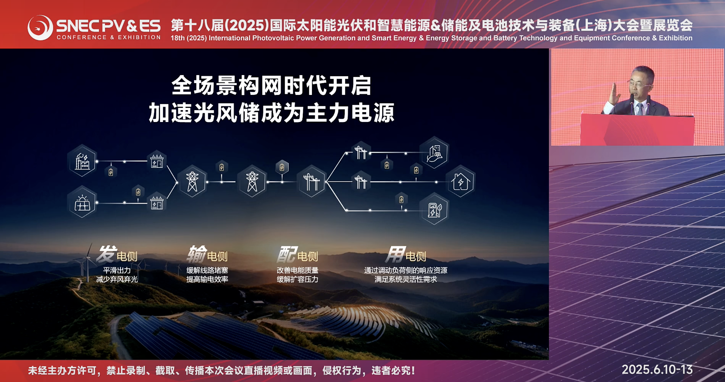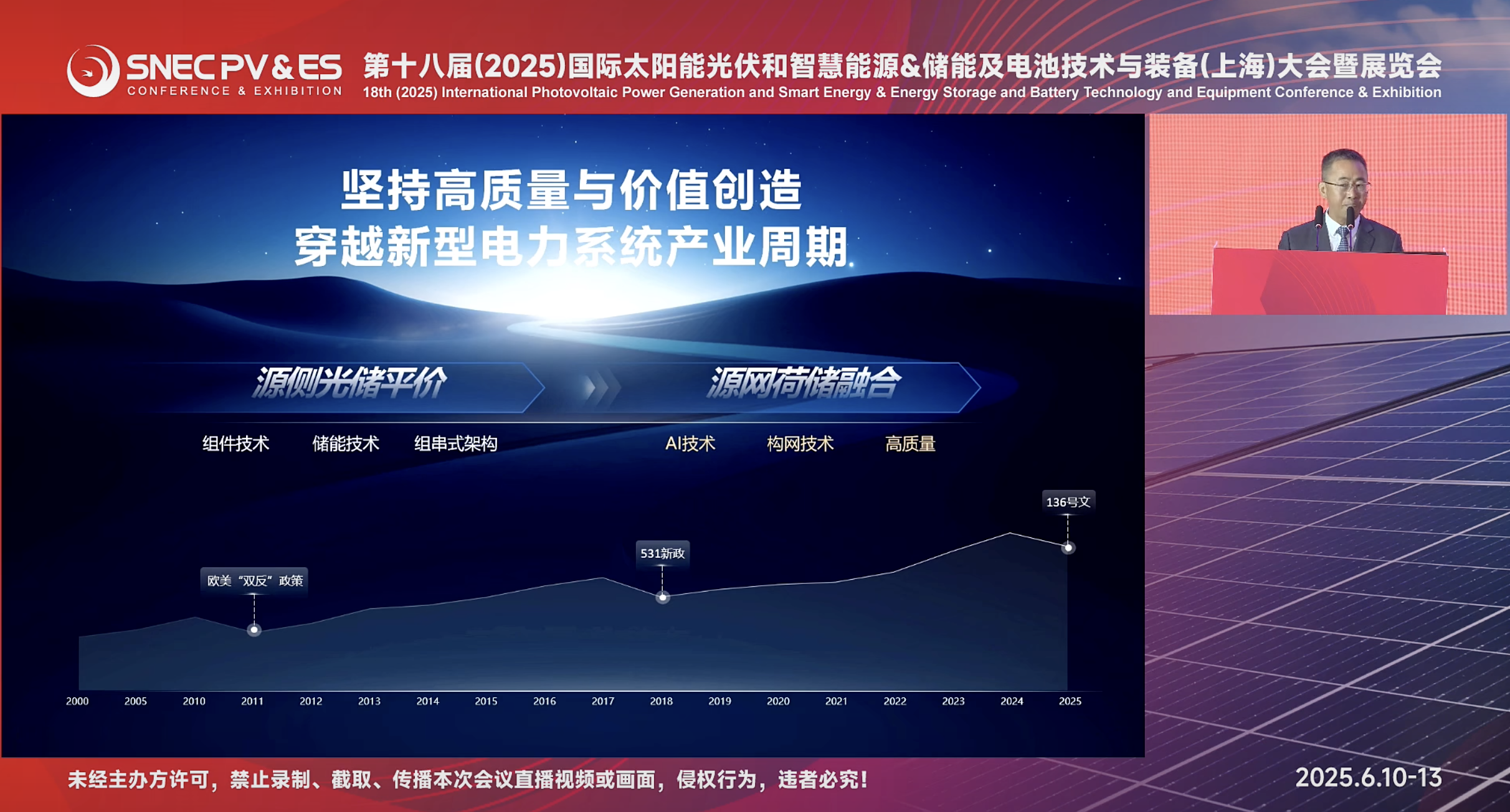開幕式 嘉賓:中國電力建設企業協會常務副會長王娟女士 內容: 自2013年以來,我(wo)國光伏(fu)裝機容(rong)量始終(zhong)位居(ju)全球首位。截至2025年3月,累計裝機達9.5億千(qian)瓦,占國內電力總裝機容(rong)量的(de)27.6%。在新(xin)(xin)能(neng)(neng)源裝機容(rong)量中占比超過6成。當(dang)前(qian)光伏(fu)行(xing)業(ye)所面臨(lin)的(de)主(zhu)要挑戰(zhan)。一是國際貿易(yi)壁壘和(he)貿易(yi)環境的(de)復雜多變(bian),給光伏(fu)產(chan)(chan)業(ye)走向世界(jie)帶(dai)來的(de)不確定性(xing)增強。二是光伏(fu)產(chan)(chan)業(ye)產(chan)(chan)能(neng)(neng)快速擴(kuo)張和(he)激烈價格競爭,對行(xing)業(ye)發展(zhan)造成的(de)反蝕。三是國家電力市場化改革,促進技術創(chuang)新(xin)(xin),推動新(xin)(xin)質生產(chan)(chan)力發展(zhan)等系(xi)列改革措(cuo)施,對光伏(fu)和(he)儲能(neng)(neng)等行(xing)業(ye)發展(zhan)提出新(xin)(xin)要求,帶(dai)來新(xin)(xin)機遇和(he)新(xin)(xin)的(de)挑戰(zhan)。 加快建(jian)設具有新(xin)(xin)時代(dai)特征的新(xin)(xin)能源發展: