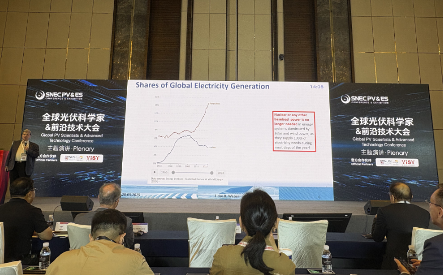 Multi-Terawatt Scale Photovoltaics:Technologies and Market Trends Eicke R. Weber 教授 Former Director, Fraunhofer ISE Profemeritus,Dept. of Materials Science and Engineering. UC Berkeley Eicke R. Weber教授在(zai)論壇上深入分析(xi)了(le)(le)光(guang)伏(fu)技術的(de)(de)(de)發展(zhan)趨勢和(he)市場(chang)(chang)前景。他(ta)指(zhi)出,光(guang)伏(fu)發電(dian)(dian)已成(cheng)為(wei)(wei)許多國家最低成(cheng)本(ben)的(de)(de)(de)電(dian)(dian)力生產方(fang)式(shi),預計(ji)到2030年(nian),全球(qiu)(qiu)光(guang)伏(fu)市場(chang)(chang)將(jiang)達到3太瓦/年(nian),是當前生產能(neng)力的(de)(de)(de)4.5倍。這一增長主要(yao)(yao)得(de)益于光(guang)伏(fu)技術的(de)(de)(de)持續創新和(he)成(cheng)本(ben)的(de)(de)(de)顯(xian)(xian)著下(xia)降。Weber教授特別強調(diao)了(le)(le)中(zhong)(zhong)國在(zai)光(guang)伏(fu)制造領域的(de)(de)(de)領導(dao)地位(wei),2020年(nian)全球(qiu)(qiu)約99%的(de)(de)(de)c-Si太陽能(neng)電(dian)(dian)池生產集(ji)中(zhong)(zhong)在(zai)中(zhong)(zhong)國,這為(wei)(wei)全球(qiu)(qiu)光(guang)伏(fu)市場(chang)(chang)的(de)(de)(de)快(kuai)速(su)發展(zhan)提(ti)供了(le)(le)堅實的(de)(de)(de)基礎。數(shu)據顯(xian)(xian)示(shi)(shi),光(guang)伏(fu)模(mo)塊價格自1980年(nian)以來已下(xia)降超(chao)過24%,預計(ji)到2025年(nian),光(guang)伏(fu)電(dian)(dian)力成(cheng)本(ben)將(jiang)接近1美分/千(qian)瓦時。全球(qiu)(qiu)能(neng)源(yuan)(yuan)需求預測顯(xian)(xian)示(shi)(shi),到2050年(nian),可(ke)再(zai)生能(neng)源(yuan)(yuan)將(jiang)占據主導(dao)地位(wei),其中(zhong)(zhong)太陽能(neng)和(he)風能(neng)將(jiang)成(cheng)為(wei)(wei)主要(yao)(yao)的(de)(de)(de)電(dian)(dian)力來源(yuan)(yuan)。這些數(shu)據不僅展(zhan)示(shi)(shi)了(le)(le)光(guang)伏(fu)技術的(de)(de)(de)經濟效(xiao)益,也反映了(le)(le)其在(zai)全球(qiu)(qiu)能(neng)源(yuan)(yuan)轉型中(zhong)(zhong)的(de)(de)(de)關(guan)鍵(jian)作用。 在技(ji)(ji)術(shu)(shu)創新(xin)方(fang)面(mian),Weber教(jiao)授分享了多太瓦級光(guang)(guang)伏(fu)技(ji)(ji)術(shu)(shu)的(de)(de)關鍵突破點,包(bao)括(kuo)新(xin)型(xing)光(guang)(guang)伏(fu)材料的(de)(de)研發、高效電(dian)池結構的(de)(de)創新(xin)以及智能光(guang)(guang)伏(fu)系統的(de)(de)應用。這些技(ji)(ji)術(shu)(shu)的(de)(de)進(jin)步將(jiang)進(jin)一步提高光(guang)(guang)伏(fu)系統的(de)(de)效率和可靠(kao)性(xing),降低成本(ben),從而推動光(guang)(guang)伏(fu)市場的(de)(de)進(jin)一步增長(chang)。