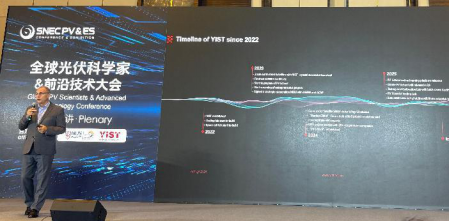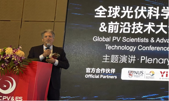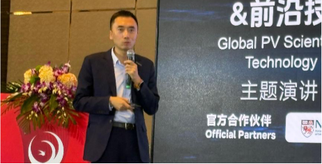 Pierre Verlinden博士(shi)展(zhan)示(shi)了鈣鈦(tai)礦/硅串聯太陽能電池(chi)技術的最新突破,2023年通過TUV萊茵認證的26.8%轉換效率紀錄成(cheng)為關鍵里(li)程碑。