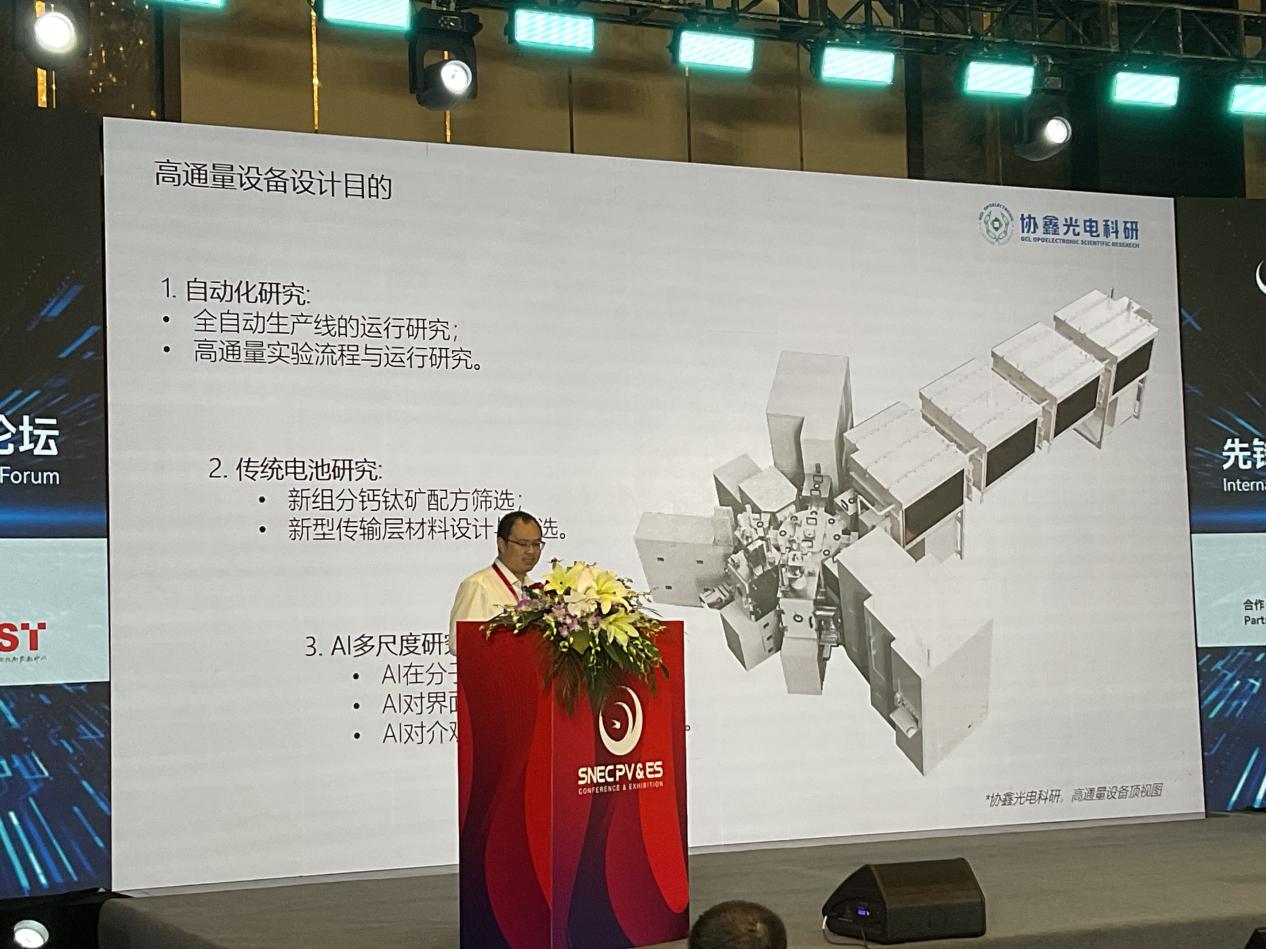 AI 賦能鈣(gai)鈦(tai)礦(kuang)研發(fa)與產業化:協(xie)鑫光(guang)電(dian)高通量(liang)設備(bei)的創(chuang)新實踐 田清勇先生 昆山協鑫光電材料有限公司總經理 田清(qing)(qing)(qing)勇先生展示(shi)了(le)公司在鈣鈦礦(kuang)光伏技(ji)術(shu)產(chan)(chan)業(ye)化(hua)進程中的(de)(de)(de)突破(po)(po)性進展。田清(qing)(qing)(qing)勇重(zhong)點闡釋了(le)AI技(ji)術(shu)與(yu)高(gao)通(tong)量(liang)(liang)實驗(yan)平臺的(de)(de)(de)協同創(chuang)新(xin)(xin)機(ji)制(zhi)(zhi):通(tong)過自(zi)(zi)主(zhu)研(yan)發的(de)(de)(de)第四(si)代全(quan)自(zi)(zi)動(dong)(dong)(dong)高(gao)通(tong)量(liang)(liang)設備,實現了(le)從(cong)溶液配(pei)制(zhi)(zhi)、自(zi)(zi)動(dong)(dong)(dong)旋涂、梯度退(tui)火到(dao)PVD鍍膜的(de)(de)(de)全(quan)流程自(zi)(zi)動(dong)(dong)(dong)化(hua),單日產(chan)(chan)能達300片,較傳統實驗(yan)室效(xiao)(xiao)率(lv)提升(sheng)40倍(bei)。在材(cai)料優化(hua)方面(mian)(mian),研(yan)究(jiu)團(tuan)隊(dui)構建了(le)包含12,000組分的(de)(de)(de)鈣鈦礦(kuang)材(cai)料數據(ju)庫,通(tong)過深度神經網絡算法篩(shai)選出3類(lei)最優組分組合(he),使電(dian)(dian)池開路電(dian)(dian)壓(ya)提升(sheng)至1.25V,穩態效(xiao)(xiao)率(lv)突破(po)(po)18.6%。特別值得注意的(de)(de)(de)是,AI驅動(dong)(dong)(dong)的(de)(de)(de)界面(mian)(mian)工程優化(hua)使器件(jian)遲滯效(xiao)(xiao)應降低至2.1%,加速老化(hua)測試(shi)顯示(shi)T80壽(shou)命延(yan)長(chang)至1024小時。這(zhe)些(xie)技(ji)術(shu)突破(po)(po)直接對應產(chan)(chan)業(ye)化(hua)關鍵痛點,將鈣鈦礦(kuang)組件(jian)制(zhi)(zhi)造成本控制(zhi)(zhi)在$0.25/W以下,為推(tui)進商業(ye)化(hua)量(liang)(liang)產(chan)(chan)提供了(le)明確的(de)(de)(de)技(ji)術(shu)路徑。田清(qing)(qing)(qing)勇強調,這(zhe)種"AI+高(gao)通(tong)量(liang)(liang)實驗(yan)"的(de)(de)(de)研(yan)發范式變(bian)革,使新(xin)(xin)材(cai)料開發周期從(cong)傳統18個月縮短至3個月,顯著(zhu)加速了(le)鈣鈦礦(kuang)技(ji)術(shu)從(cong)實驗(yan)室到(dao)生產(chan)(chan)線的(de)(de)(de)轉化(hua)進程。