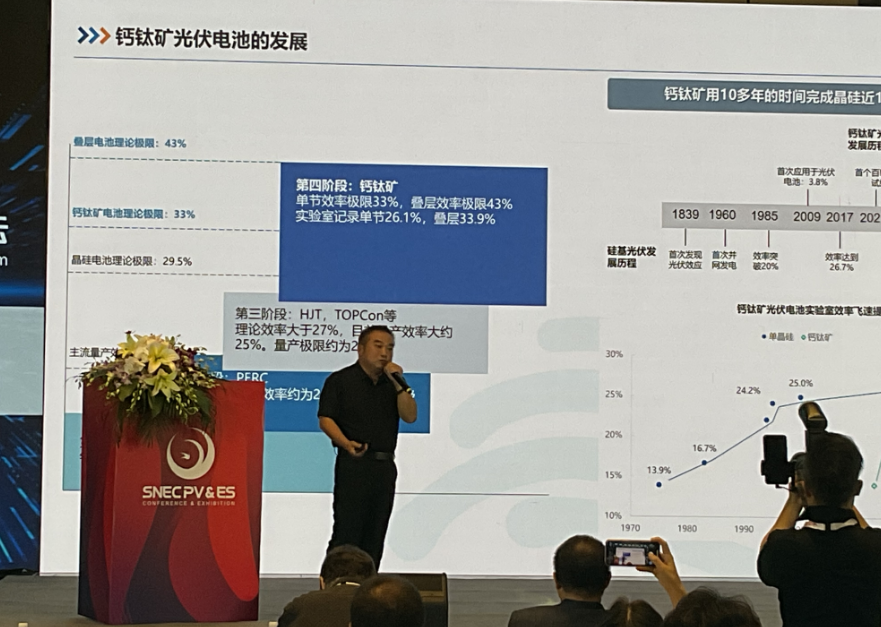 劉杰 先生,合肥欣奕華智能機器股份有(you)限公司營銷總監 合肥欣(xin)奕(yi)華(hua)智能機器股(gu)份有(you)限(xian)(xian)公司營銷總監劉杰(jie)(jie)先生(sheng)發表了(le)題為“GW級真空鍍膜設(she)備(bei)(bei)進(jin)展(zhan)”的演講,詳細介紹了(le)公司在鈣(gai)鈦(tai)礦(kuang)光伏(fu)電池(chi)(chi)生(sheng)產設(she)備(bei)(bei)領域的最(zui)新(xin)進(jin)展(zhan)。劉杰(jie)(jie)先生(sheng)指出,合肥欣(xin)奕(yi)華(hua)已成功研發出全球首臺(tai)2400*1200mm Inline鈣(gai)鈦(tai)礦(kuang)蒸鍍設(she)備(bei)(bei),該(gai)設(she)備(bei)(bei)采用超大寬幅電源和大容量(liang)陣列點源蒸鍍電子傳輸層、鈍(dun)化(hua)(hua)層材(cai)料,具備(bei)(bei)30/60秒(miao)的Tact time,顯著提(ti)升(sheng)了(le)生(sheng)產效(xiao)率(lv)。此(ci)外,公司還(huan)實現了(le)鈣(gai)鈦(tai)礦(kuang)電池(chi)(chi)單(dan)節效(xiao)率(lv)極(ji)限(xian)(xian)33%,最(zui)高效(xiao)率(lv)極(ji)限(xian)(xian)43%,實驗室(shi)記錄單(dan)節效(xiao)率(lv)26.1%,疊層33.9%。通(tong)過(guo)蒸發源結構和工藝優化(hua)(hua),連(lian)續移動(dong)時(shi)間超過(guo)800小時(shi),稼動(dong)率(lv)超過(guo)95%。材(cai)料利用率(lv)提(ti)升(sheng)至70%以(yi)上,生(sheng)產節拍縮短至15秒(miao)以(yi)內(nei)。這些突破性成果不僅(jin)填補了(le)國內(nei)在OLED設(she)備(bei)(bei)和部件國產化(hua)(hua)市(shi)場的空白(bai),也為鈣(gai)鈦(tai)礦(kuang)電池(chi)(chi)量(liang)產提(ti)供了(le)強有(you)力的技術支持,進(jin)一步(bu)推動(dong)了(le)光伏(fu)行(xing)業的技術進(jin)步(bu)和成本降低。