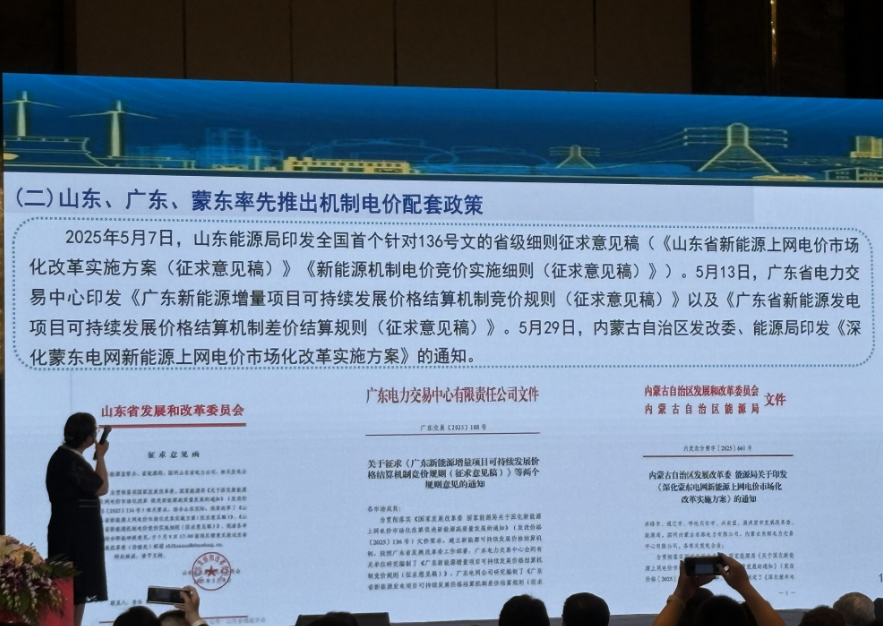 李瓊慧女士,國網能源研究院新能源研究所原所長,中國能源研究會特邀首席專家 在李(li)瓊慧女士題為“我國新能(neng)(neng)源(yuan)上網電(dian)(dian)(dian)(dian)(dian)(dian)(dian)(dian)價(jia)最新政策(ce)分(fen)析”的(de)演(yan)講中,她深入探(tan)討了2025年一季度新能(neng)(neng)源(yuan)發(fa)展(zhan)情況及電(dian)(dian)(dian)(dian)(dian)(dian)(dian)(dian)價(jia)改(gai)革政策(ce)。數據顯示,風(feng)(feng)電(dian)(dian)(dian)(dian)(dian)(dian)(dian)(dian)光伏發(fa)電(dian)(dian)(dian)(dian)(dian)(dian)(dian)(dian)合(he)計裝機(ji)容量(liang)達到14.82億(yi)千瓦,占全(quan)國總裝機(ji)的(de)43%,風(feng)(feng)電(dian)(dian)(dian)(dian)(dian)(dian)(dian)(dian)太(tai)陽能(neng)(neng)發(fa)電(dian)(dian)(dian)(dian)(dian)(dian)(dian)(dian)量(liang)合(he)計達5368億(yi)千瓦時,占社會(hui)用(yong)電(dian)(dian)(dian)(dian)(dian)(dian)(dian)(dian)量(liang)的(de)20%。山(shan)東(dong)、廣東(dong)和蒙東(dong)率先(xian)推(tui)出機(ji)制電(dian)(dian)(dian)(dian)(dian)(dian)(dian)(dian)價(jia)配套政策(ce),旨在通過市(shi)場(chang)化改(gai)革促進新能(neng)(neng)源(yuan)發(fa)展(zhan)。山(shan)東(dong)對(dui)2025年5月(yue)31日前(qian)投產的(de)存量(liang)項目(mu)執行0.3949元/千瓦時的(de)電(dian)(dian)(dian)(dian)(dian)(dian)(dian)(dian)價(jia),而廣東(dong)則對(dui)新增項目(mu)設定了最高90%的(de)電(dian)(dian)(dian)(dian)(dian)(dian)(dian)(dian)價(jia)上限。此外,電(dian)(dian)(dian)(dian)(dian)(dian)(dian)(dian)價(jia)改(gai)革還包(bao)括政策(ce)統籌協調,強(qiang)調與規劃、綠證(zheng)、市(shi)場(chang)和環境政策(ce)的(de)協同,以及對(dui)新能(neng)(neng)源(yuan)技術進步(bu)和市(shi)場(chang)發(fa)展(zhan)的(de)動(dong)態評估(gu)。這些(xie)政策(ce)的(de)實施,預計將進一步(bu)推(tui)動(dong)新能(neng)(neng)源(yuan)的(de)市(shi)場(chang)化進程,提高新能(neng)(neng)源(yuan)的(de)競爭力和利(li)用(yong)率,為實現綠色低碳發(fa)展(zhan)目(mu)標提供有力支持。