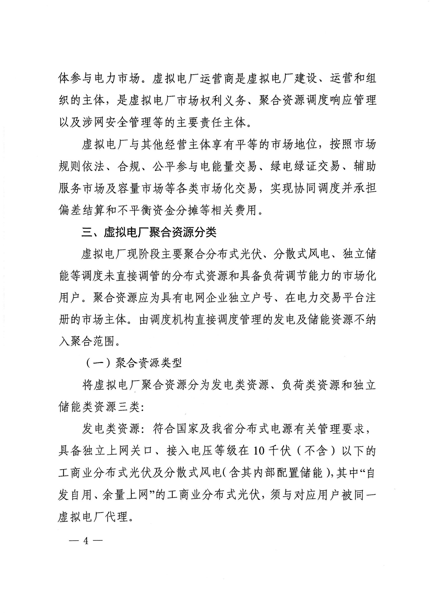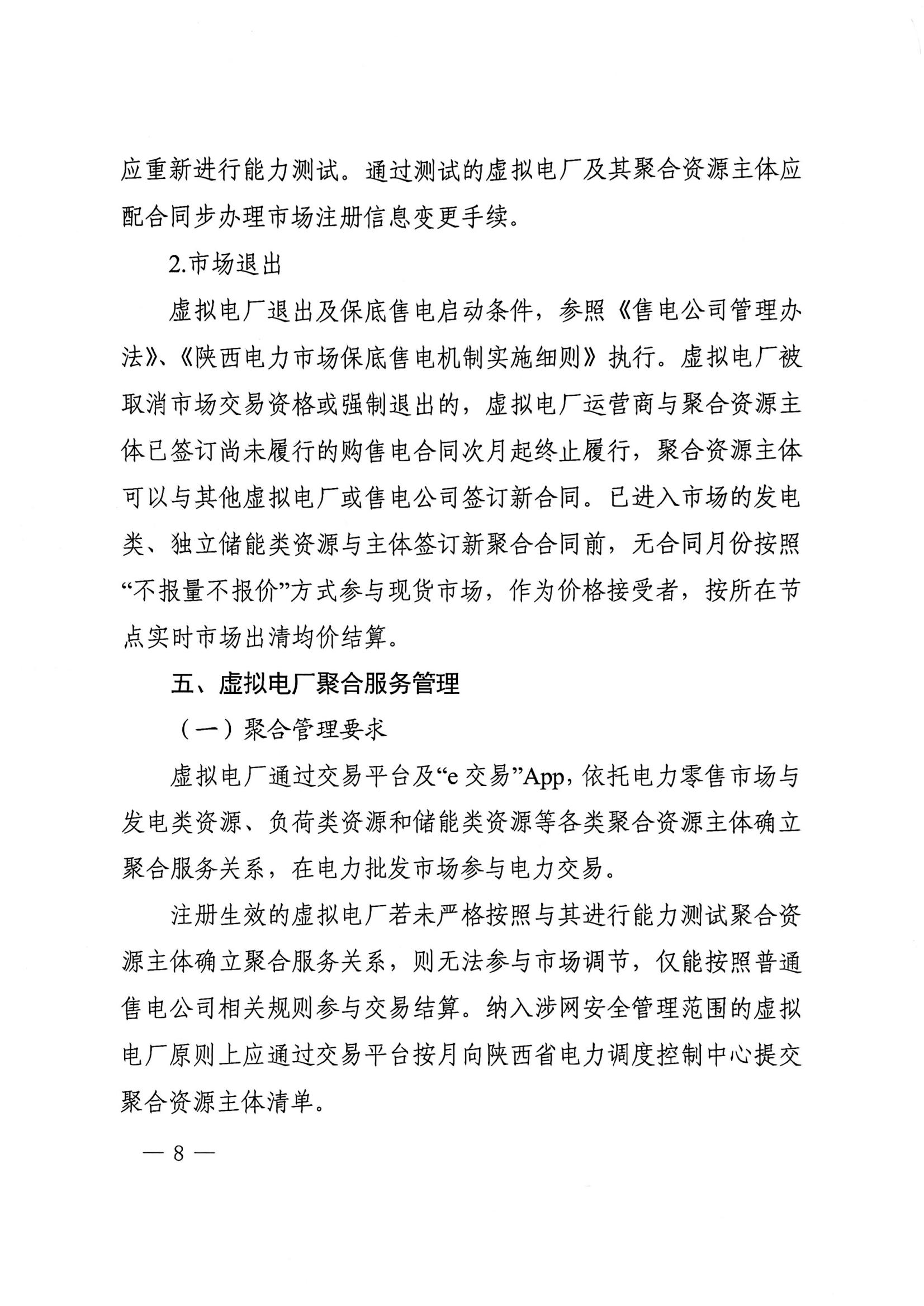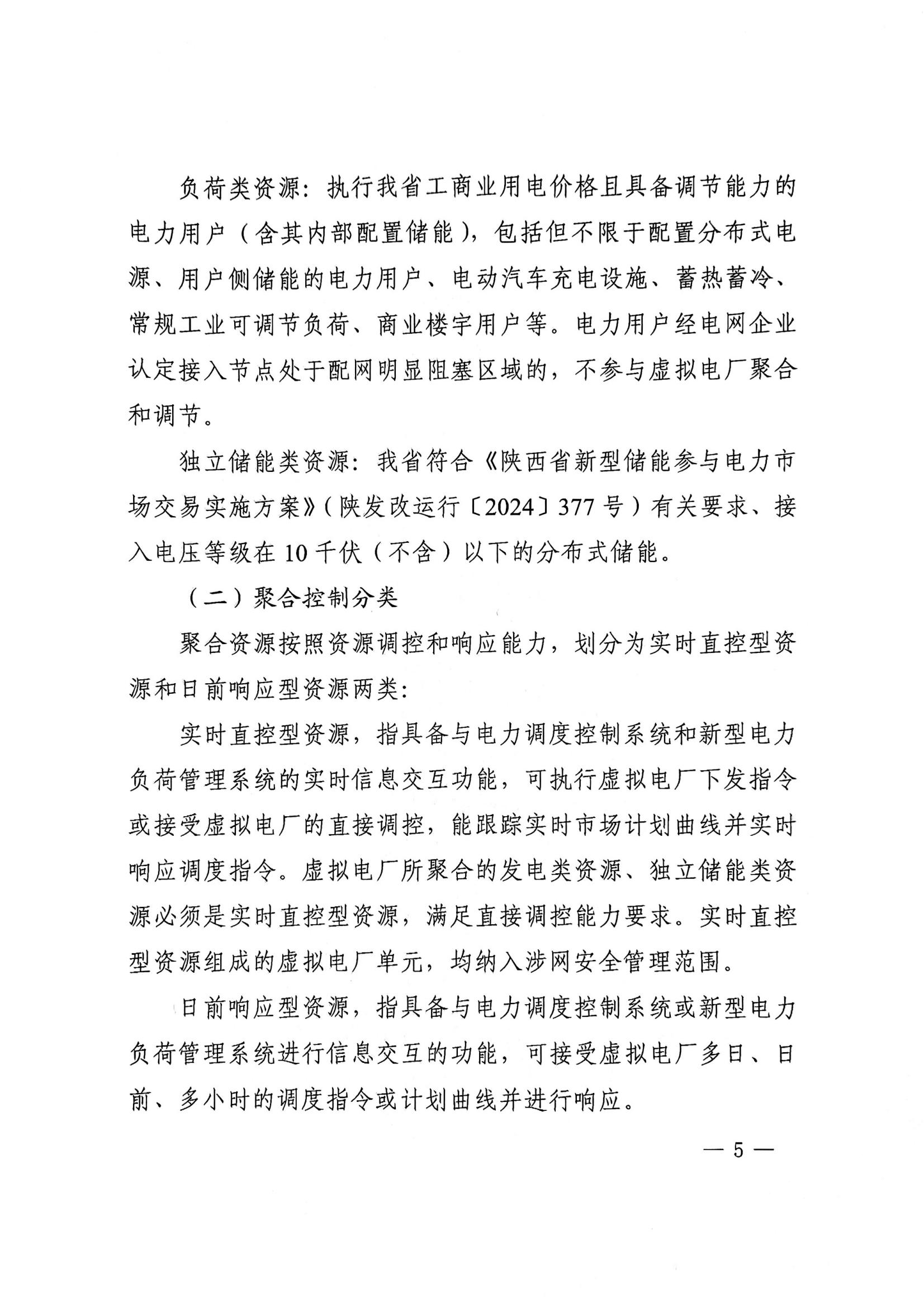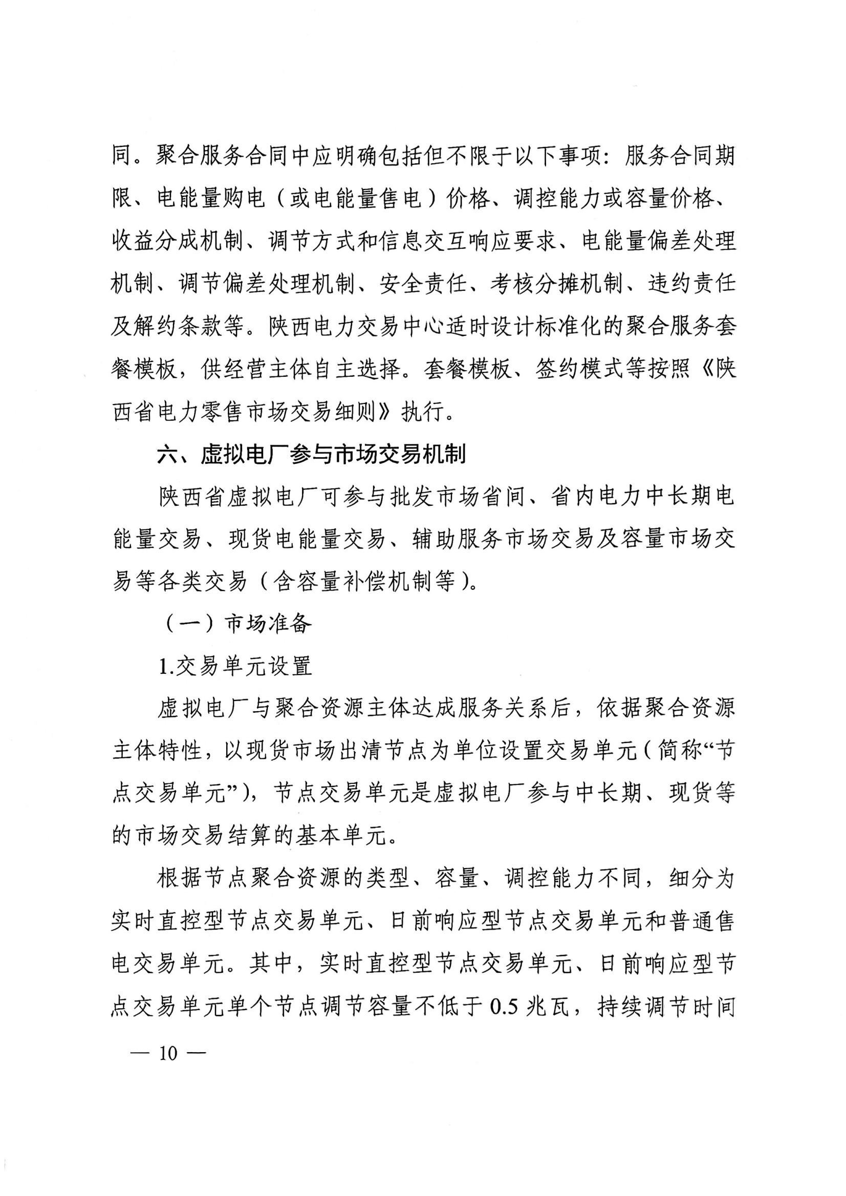 日前,陜(shan)西省(sheng)發展和改革(ge)委員(yuan)會 國(guo)家(jia)能源(yuan)局西北監管(guan)(guan)局印發《創(chuang)新支持虛(xu)擬(ni)電(dian)廠參與電(dian)力市(shi)場(chang)(chang)促進高質量發展實施方(fang)案》的通知,通知指出,虛(xu)擬(ni)電(dian)廠現階段主要聚合分(fen)布式光伏、分(fen)散式風電(dian)、獨立儲能等調度未直(zhi)接調管(guan)(guan)的分(fen)布式資源(yuan)和具備負荷調節能力的市(shi)場(chang)(chang)化(hua)用戶(hu)。聚合資源(yuan)應(ying)為具有電(dian)網(wang)企(qi)業獨立戶(hu)號(hao)、在電(dian)力交易平臺注(zhu)冊的市(shi)場(chang)(chang)主體。由調度機(ji)構直(zhi)接調度管(guan)(guan)理的發電(dian)及儲能資源(yuan)不納(na)入聚合范(fan)圍。 虛擬電(dian)廠在電(dian)力中(zhong)長期市(shi)場、現貨市(shi)場開展購售(shou)電(dian)業(ye)務,應具(ju)備(bei)售(shou)電(dian)公司資質(zhi),電(dian)力、電(dian)量數據具(ju)備(bei)日96或(huo)24時(shi)點分時(shi)計量與傳輸條件,聚合資源總調(diao)節容量不低(di)于5兆(zhao)瓦(wa),且單(dan)個電(dian)網(wang)現貨市(shi)場出(chu)清節點(初(chu)期為(wei)相關330千伏及以上電(dian)壓等級母線,下同)調(diao)節容量不低(di)于0.5兆(zhao)瓦(wa),持續調(diao)節時(shi)間不低(di)于1小時(shi)。 原文如(ru)下: