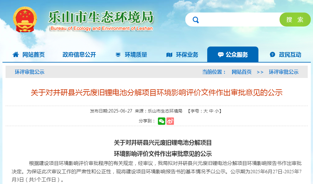 近日,位于四川省樂山市的“井研縣興元廢舊鋰電池分解項目”環評獲批,標志著項目距離落地更進一步。 項目總投資5000萬元,計劃建設年綜合利用廢舊磷酸鐵鋰電池和鎳鈷錳酸鋰電池產能2萬噸。 根據計劃,項目將內設鋰電池破碎生產車間、梯次利用車間、原料庫房和檢測區。在梯次利用車間設置1條PACK梯次利用生產線;在檢測區設置工業吸塵器、電池包掃碼槍等設備,預處理收購的廢電池包;在鋰電池破碎生產車間設置3條鋰電池再生利用破解生產線。新建放電區1個,設置2座放電水箱。新建廢氣治理設施、初期雨水收集池、初期雨水暫存池、危廢暫存間、一般固廢暫存間等環保工程。依托并配套建設儲運工程及公輔工程等。 近年來,我國新能源汽車產業快速發展。截至2024年底,四川新能源汽車保有量達140.2萬輛,增長56.4%。預計未來2至3年,全省廢舊動力電池將迎來第一輪大規模“退役潮”。 但動力電池“退役”并不意味著報廢,“退役”的動力電池中含有鎳、鈷、錳、鋰等金屬,仍有可觀的剩余價值。在此背景下,動力電池回收行業應運而生,并逐漸從幕后走向臺前,成為保障行業可持續發展的關鍵一環。 據了解,四川是全國動力蓄電池回收利用試點省份之一,現有具備一定綜合利用能力的廢舊動力電池綜合利用企業11家、回收服務網點512個,綜合利用能力約6.9萬噸。 為推動退役動力電池應收盡收、就近回收、就近利用,四川省經濟和信息化廳等9部門聯合印發《四川省新能源汽車動力電池回收利用區域中心建設工作方案》,旨在推動建設四川省新能源汽車動力電池回收利用區域中心,加快構建網絡完善、規范有序、循環高效的廢舊動力電池回收利用體系。 《方案》從基礎條件、回收網絡、技術裝備、協同合作、商業模式5方面,明確了區域中心的建設任務,憑借在政策制定等方面的主動性和前瞻性,搶占產業綠色轉型和資源循環利用的先機。 而作為四川新能源產業版圖的一部分,“井研縣興元廢舊鋰電池分解項目”的落地不僅會提升退役動力電池資源化利用率,還將進一步加快四川省動力電池產業從"資源-制造-回收"的全鏈條崛起態勢。 上一篇: 寧德時代洛陽基地四期項目將實質性開工!