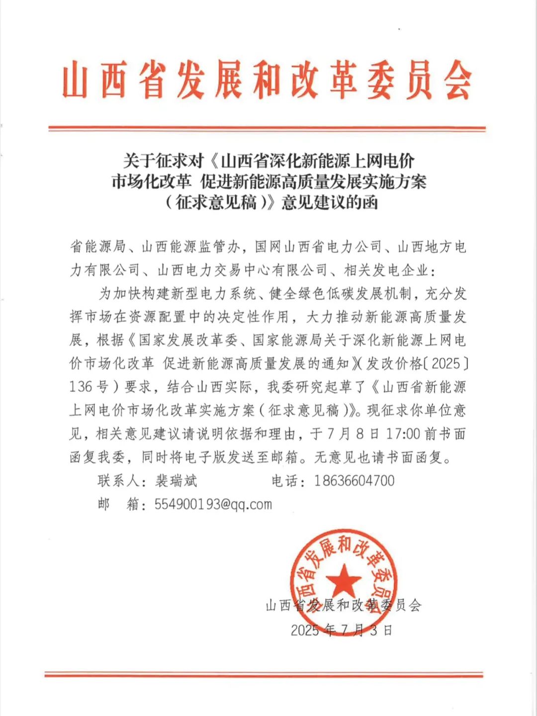 山西承接“136號文”征求意見:增量競價申報充足率≥1.22025-07-07 13:06來源:gessey瀏覽數:243次