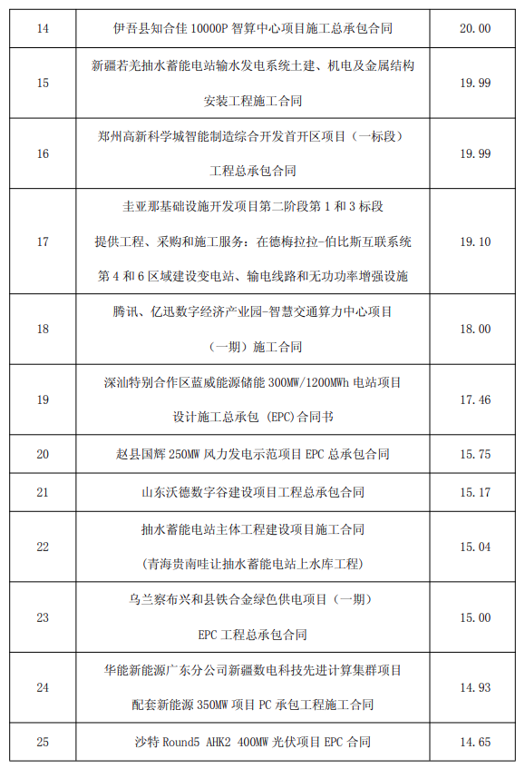 蓋錫(xi)新(xin)能(neng)源網(wang)獲悉,7月22日(ri),中國(guo)電(dian)建在2025年1月至6月主(zhu)要(yao)經營情況公告中表(biao)示,1月至6月,按業(ye)務類型統計(ji),新(xin)型儲能(neng)新(xin)簽(qian)項目96個,合(he)同金額209.14億元。 按地區分(fen)布統計(ji)(ji),境內(nei)合同金額5450.35億(yi)元,同比(bi)增長(chang)3.16%;境外合同金額1416.65億(yi)元,同比(bi)增長(chang)17.50%;合計(ji)(ji)金額6866.99億(yi)元,同比(bi)增長(chang)5.83%。 2025年6月,公司新簽合(he)同(tong)金額在人(ren)民幣5億元以上的單個項目(mu)(mu)(mu)有70個,其(qi)中(zhong)儲(chu)(chu)(chu)能(neng)相關包(bao)(bao)(bao)括(kuo):烏蘭察(cha)布市察(cha)右中(zhong)旗100萬(wan)千(qian)(qian)瓦(wa)/600萬(wan)千(qian)(qian)瓦(wa)時(shi)(shi)電(dian)源側(ce)設(she)計采購(gou)施(shi)工(gong)(gong)總(zong)承(cheng)(cheng)包(bao)(bao)(bao)(EPC)+運維(wei)項目(mu)(mu)(mu)工(gong)(gong)程總(zong)承(cheng)(cheng)包(bao)(bao)(bao)合(he)同(tong)、深汕特別合(he)作(zuo)區(qu)藍威能(neng)源儲(chu)(chu)(chu)能(neng)300MW/1200MWh電(dian)站(zhan)(zhan)項目(mu)(mu)(mu)設(she)計施(shi)工(gong)(gong)總(zong)承(cheng)(cheng)包(bao)(bao)(bao) (EPC)合(he)同(tong)書(shu)、谷(gu)(gu)山(shan)梁 500 千(qian)(qian)伏變電(dian)站(zhan)(zhan)電(dian)源側(ce)50萬(wan)千(qian)(qian)瓦(wa)/200萬(wan)千(qian)(qian)瓦(wa)時(shi)(shi)獨(du)立(li)(li)儲(chu)(chu)(chu)能(neng)電(dian)站(zhan)(zhan)1號(hao)(hao)項目(mu)(mu)(mu)EPC工(gong)(gong)程總(zong)承(cheng)(cheng)包(bao)(bao)(bao)合(he)同(tong)、谷(gu)(gu)山(shan)梁500千(qian)(qian)伏變電(dian)站(zhan)(zhan)電(dian)源側(ce) 50萬(wan)千(qian)(qian)瓦(wa)/200萬(wan)千(qian)(qian)瓦(wa)時(shi)(shi)獨(du)立(li)(li)儲(chu)(chu)(chu)能(neng)電(dian)站(zhan)(zhan)2號(hao)(hao)項目(mu)(mu)(mu) EPC、井陘礦區(qu)300MW/1200MWh共享儲(chu)(chu)(chu)能(neng)電(dian)站(zhan)(zhan)項目(mu)(mu)(mu)EPC總(zong)承(cheng)(cheng)包(bao)(bao)(bao)合(he)同(tong)、東鄉(xiang)縣董(dong)嶺鄉(xiang)150MW/600MWh獨(du)立(li)(li)儲(chu)(chu)(chu)能(neng)一號(hao)(hao)電(dian)站(zhan)(zhan)及配(pei)套送出工(gong)(gong)程建設(she)項目(mu)(mu)(mu)工(gong)(gong)程總(zong)承(cheng)(cheng)包(bao)(bao)(bao)合(he)同(tong)等。