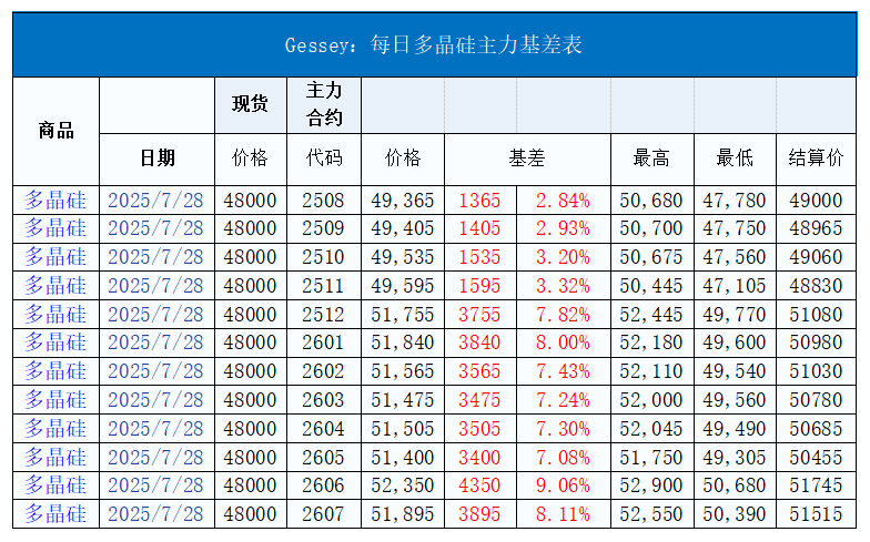 現貨市場價格變動: 多晶硅: 今日硅料價格整體維穩,N型料主流價格在46-49元/公斤,均價48元/公斤。N型顆粒硅主流價格在44-46元/公斤,均價45元/公斤。國產復投特級硅料主流價格在33.5-43元/公斤,均價43元/公斤,國產致密特級硅料主流價格在33-42元/公斤,均價42元/公斤。全球多晶硅料主流價格在19-22元/公斤,均價20元/公斤。 硅片: 今日硅片價格小幅上漲,N型-183.75mm單晶硅片主流現貨價格維持1.1-1.45元/片,均價1.2元/片,上漲9.09%。N型-210mm單晶硅片主流現貨價格維持1.4-1.93元/片,均價1.55元/片,上漲6.9%。N型-210Rmm單晶硅片主流現貨價格1.25-1.65元/片,均價1.35元/片,上漲8%。 電池片: 今日電池片價格小幅上漲,24.3%以上183.75mm雙面Topcon電池片主流價格在0.29-0.3元/瓦,均價0.295元/瓦。24.3%以上210mm雙面Topcon電池片主流價格在0.275-0.29元/瓦,均價0.28元/瓦,上漲1.82%。24.3%以上210Rmm雙面Topcon電池片主流價格在0.275-0.29元/瓦,均價0.28元/瓦,上漲1.82%。 組件: 今日組件價格整體維穩,雙面單晶perc組件(182系列)價格在0.6-0.67元/ 瓦,均價為0.665元/瓦。雙面單晶perc組件(210系列)價格在0.64-0.68元/ 瓦,均價為0.67元/瓦。N型雙面Topcon 組件(182系列)價格在0.65-0.705元/ 瓦,均價為0.7元/瓦。N型雙面Topcon 組件(210系列)價格在0.65-0.705元/ 瓦,均價為0.7元/瓦。N型雙面HJT組件(210系列)價格在0.78-0.82元/ 瓦,均價為0.785元/瓦。N型雙面BC組件(210R系列)價格在0.78-0.81元/ 瓦,均價為0.79元/瓦。中國區分布式項目(≥595W)價格在0.675-0.705元/瓦,均價為0.705元/瓦,中國區分布式項目(≥615W)價格在0.69-0.71元/瓦,均價為0.7元/瓦,中國區集中式項目(≥585W)價格在0.63-0.68元/ 瓦,均價為0.66元/瓦。N型雙面BC組件(210R系列)集中式項目價格在0.75-0.8元/ 瓦,均價為0.76元/瓦。歐洲港口現貨價格在0.088-0.96美元/ 瓦,均價為0.092美元/瓦。印度港口現貨價格在0.086-0.22美元/ 瓦,均價為0.21美元/瓦。美國港口現貨價格在0.26-0.28美元/ 瓦,均價為0.265美元/瓦。 玻璃: 今日玻璃價格整體維穩,3.2mm雙層鍍膜光伏玻璃價格在19.5-23元/平方米,均價為20元/平方米。2.0mm單層鍍膜光伏玻璃價格在11-12元/平方米,均價為11元/平方米。2.0mm雙層鍍膜光伏玻璃價格在11.7-13元/平方米,均價為12元/平方米。2.0mm背面光伏玻璃價格在10.5-11.5元/平方米,均價為11元/平方米。 聚焦每日行情波動: 今日硅片價格小幅上漲,整體均價上漲0.1元/片,N型-183.75mm單晶硅片主流現貨價格維持1.1-1.45元/片,均價1.2元/片,上漲9.09%。N型-210mm單晶硅片主流現貨價格維持1.4-1.93元/片,均價1.55元/片,上漲6.9%。N型-210Rmm單晶硅片主流現貨價格1.25-1.65元/片,均價1.35元/片,上漲8%。 近期電池片需求激增,今日電池片價格小幅上漲,24.3%以上210mm雙面Topcon電池片主流價格在0.275-0.29元/瓦,均價0.28元/瓦,上漲1.82%。24.3%以上210Rmm雙面Topcon電池片主流價格在0.275-0.29元/瓦,均價0.28元/瓦,上漲1.82%。目前N210R最新報價維持0.29元/瓦,臨近月底,組件企業也有補貨需求,促使電池片價格進一步試探性上漲。 行情走勢:主力合約收盤價為49365元/噸,前結算價為52505元/噸,收盤價較前結算價跌幅為5.98%,收盤價較開盤價漲1480元/噸,漲幅為3.09%,成交量為22388手,持倉量為5823手。