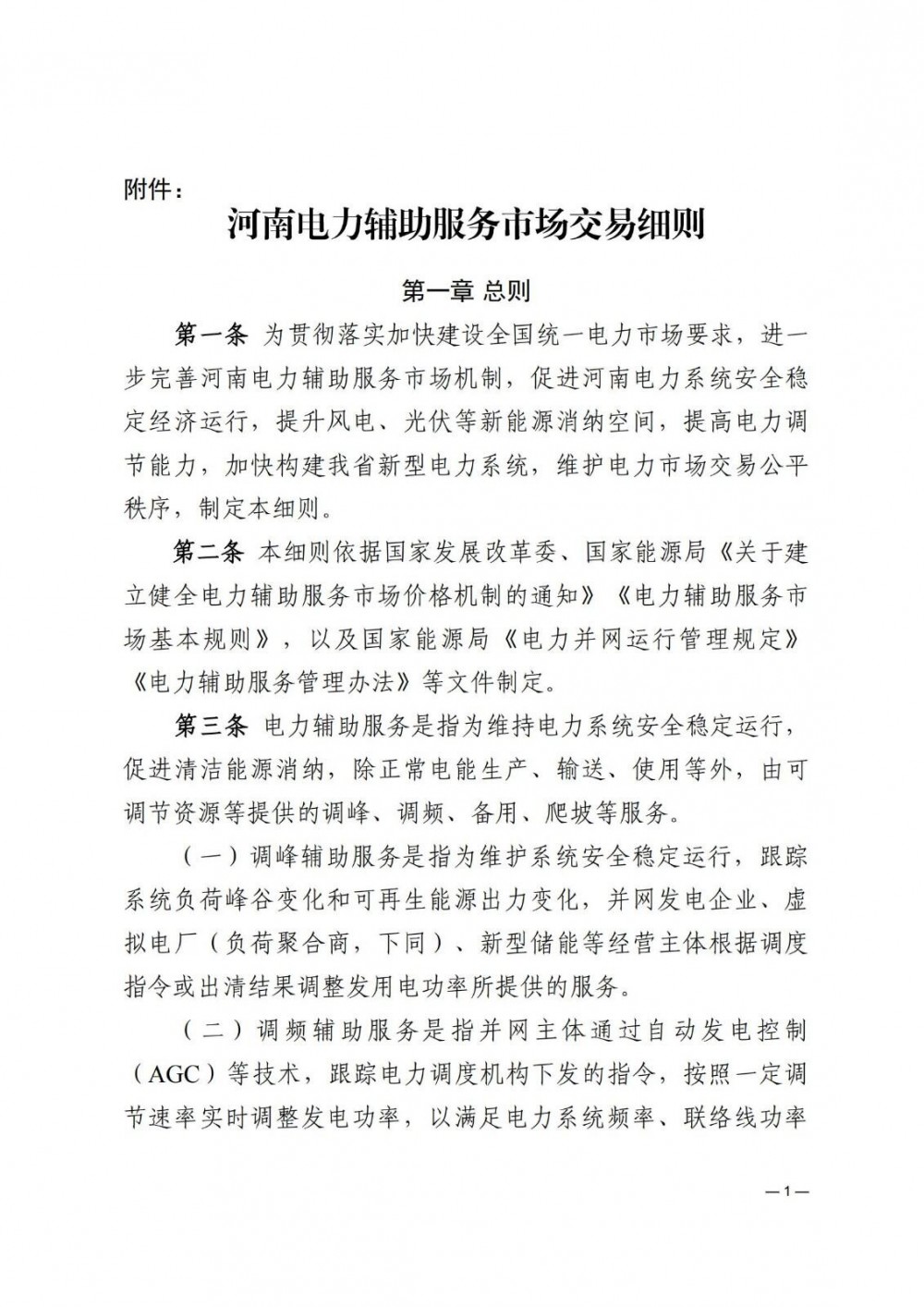 《河南電力輔助服務市場交易細則》:多能互補儲能不轉獨立!實時調峰300-377.9元/MWh!2025-08-04 17:12瀏覽數:197次