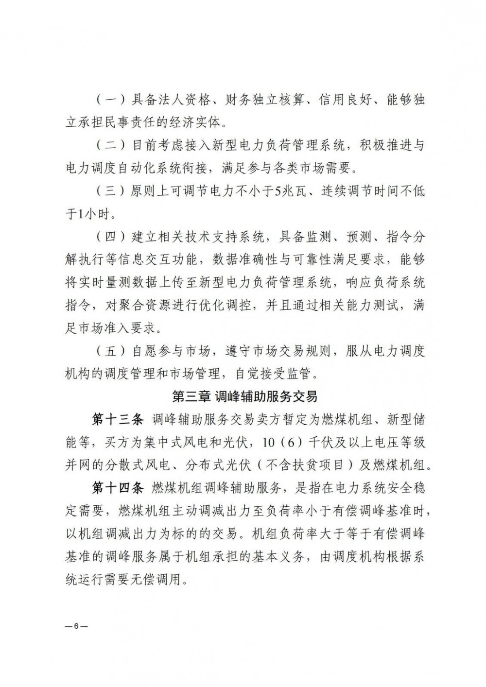 蓋錫新(xin)能源(yuan)(yuan)網獲悉,8月1日(ri),河(he)南能源(yuan)(yuan)監管(guan)辦發(fa)布關于印發(fa)《河(he)南電力輔助服(fu)務市場(chang)交易(yi)細(xi)則(ze)》的通知。 根據(ju)《細則》,電(dian)力(li)輔(fu)助(zhu)服務(wu)包(bao)括調(diao)峰、調(diao)頻(pin)、備用(yong)、爬坡等(deng)。根據(ju)河南(nan)省電(dian)力(li)系統運(yun)行情況,目前(qian)主要開展(zhan)調(diao)峰、調(diao)頻(pin)輔(fu)助(zhu)服務(wu),根據(ju)需要逐步開展(zhan)備用(yong)、爬坡輔(fu)助(zhu)服務(wu)。 虛擬電(dian)廠(chang)(負荷聚合商)、新型儲能均可提供服(fu)務(wu)。 提(ti)供輔助(zhu)(zhu)服(fu)(fu)務(wu)的新型(xing)儲(chu)能額定功率不低于10MW、連續儲(chu)能時(shi)(shi)長2小時(shi)(shi)及以上(根據市(shi)(shi)場(chang)發展情況適時(shi)(shi)調整功率和時(shi)(shi)長),主要為(wei)獨(du)(du)立儲(chu)能。配建儲(chu)能轉(zhuan)為(wei)獨(du)(du)立儲(chu)能后可參(can)與(yu)電(dian)力調峰(feng)輔助(zhu)(zhu)服(fu)(fu)務(wu)市(shi)(shi)場(chang)。涉(she)及風光(guang)水火儲(chu)多能互(hu)補一體化(hua)項(xiang)目的新型(xing)儲(chu)能,原則上暫(zan)不轉(zhuan)為(wei)獨(du)(du)立儲(chu)能,暫(zan)不參(can)與(yu)電(dian)力調峰(feng)輔助(zhu)(zhu)服(fu)(fu)務(wu)市(shi)(shi)場(chang)。 儲能提供(gong)調(diao)(diao)峰服(fu)務(wu),指(zhi)的(de)(de)是在電網有(you)調(diao)(diao)峰需(xu)求時,新型儲能根據(ju)自愿參與(yu)市場(chang)交易的(de)(de)原則,按照電力調(diao)(diao)度(du)機(ji)構要求和指(zhi)令儲存電能而提供(gong)的(de)(de)調(diao)(diao)峰服(fu)務(wu)。 獨立儲能提供調頻(pin)輔(fu)助服務(wu),在市場初期,實際調節速率不得高于50MW/分鐘,交易標(biao)的(de)為調頻(pin)里(li)程。 《細則》指出,實時調峰(feng)交(jiao)易(yi)采用“階梯式(shi)”報價(jia)(jia)(jia)方式(shi)和價(jia)(jia)(jia)格(ge)機制,采用負荷率(lv)分段式(shi)報價(jia)(jia)(jia),具體分檔和報價(jia)(jia)(jia)上、下(xia)限見下(xia)表(biao): 最小報價單位為0.1元/兆瓦(wa)時,報價上(shang)限不(bu)超(chao)過河南省(sheng)平價新能源項目上(shang)網電價。燃煤機組可根據(ju)自身技術(shu)能力申(shen)報最低調(diao)峰下限,調(diao)峰下限不(bu)得高于發電機組初始額定容(rong)量的40%。 原文如下: 河南能源監管辦關于印發《河南電力輔助服務市場交易細則》的通知 國網(wang)河(he)南(nan)省電力公司,河(he)南(nan)電力交易中心,各(ge)市(shi)場經營(ying)主體(ti),有關單(dan)位: 為落實加(jia)快建(jian)(jian)(jian)設全國(guo)統一電(dian)力(li)市(shi)場(chang)(chang)要求,進(jin)一步完善河南電(dian)力(li)輔助(zhu)服(fu)務(wu)市(shi)場(chang)(chang)機制,加(jia)快構(gou)建(jian)(jian)(jian)我省新型電(dian)力(li)系統,根據國(guo)家(jia)發展改(gai)革(ge)委、國(guo)家(jia)能源(yuan)局《關于建(jian)(jian)(jian)立健(jian)全電(dian)力(li)輔助(zhu)服(fu)務(wu)市(shi)場(chang)(chang)價(jia)格機制的通(tong)知》(發改(gai)價(jia)格〔2024〕196號(hao))、《電(dian)力(li)輔助(zhu)服(fu)務(wu)市(shi)場(chang)(chang)基(ji)本規則》(發改(gai)能源(yuan)規〔2025〕411號(hao))等有關規定,經商省發展改(gai)革(ge)委,我們研究制定了《河南電(dian)力(li)輔助(zhu)服(fu)務(wu)市(shi)場(chang)(chang)交易細則》。現印發給你(ni)們,請(qing)認(ren)真組織執行(xing)。工作中有關重大問題(ti),請(qing)及時報告。 附件: 河南能源監管辦 2025年(nian)7月31日