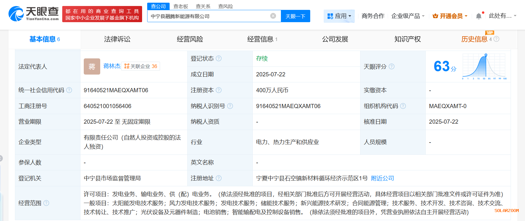 天眼查工商信(xin)息顯(xian)示,近日,中寧縣融騰新(xin)能源(yuan)有(you)限(xian)公(gong)司成立,法定代表人為蔣林杰(jie),注冊(ce)資本(ben)400萬(wan)人民幣,經營范(fan)圍含發(fa)電業務(wu)、輸電業務(wu)、供(配(pei))電業務(wu),太陽能發(fa)電技術(shu)服務(wu),風力發(fa)電技術(shu)服務(wu),發(fa)電技術(shu)服務(wu),儲能技術(shu)服務(wu)等。股東信(xin)息顯(xian)示,該公(gong)司由吉利(li)旗(qi)下吉利(li)融和(he)(寧波)新(xin)能源(yuan)有(you)限(xian)公(gong)司全資持股。 下一篇: 韓國研發出突破性柔性鈣鈦礦電池
