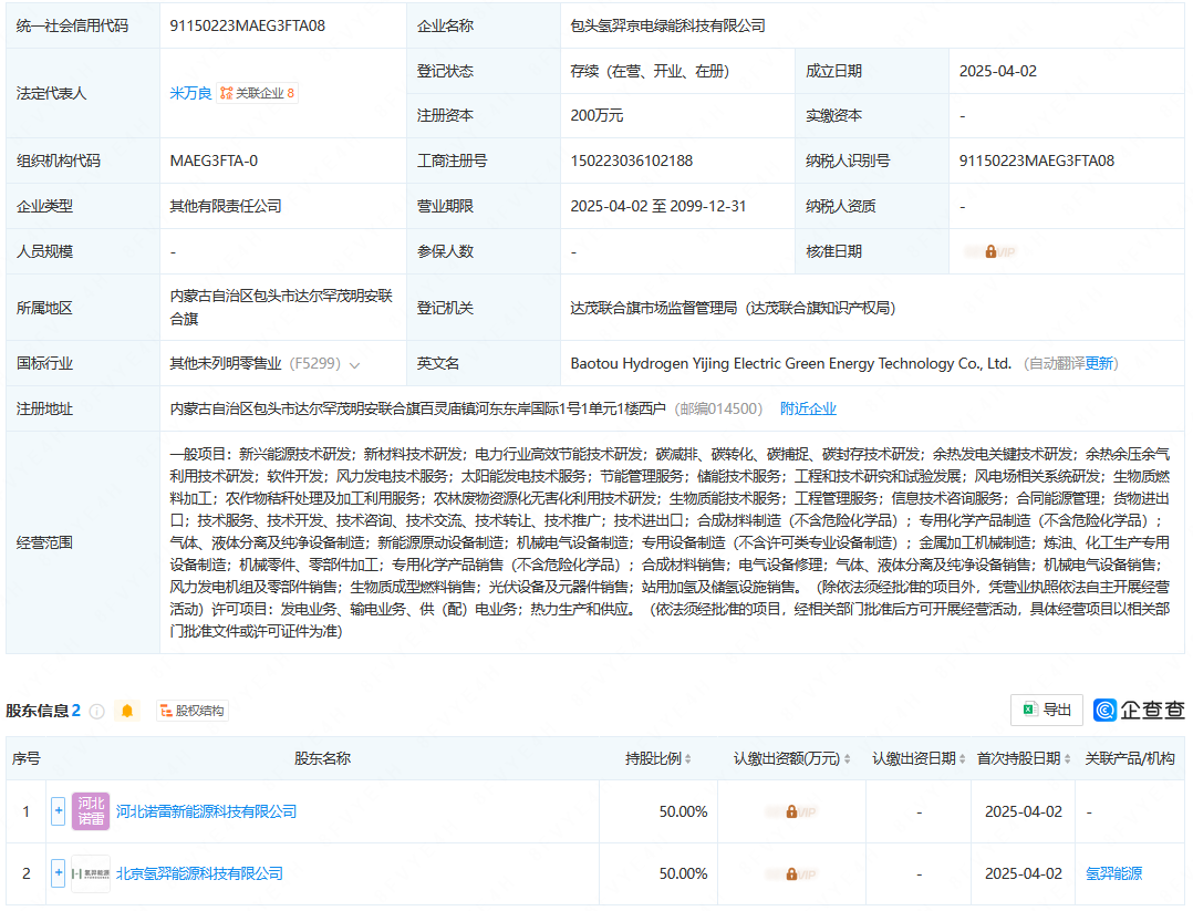 8月4日,內(nei)蒙古自(zi)治區(qu)投(tou)資項目(mu)在線審批大廳發布包(bao)頭(tou)氫(qing)羿京電綠能(neng)綠電制氫(qing)項目(mu)批復公告(gao)。 項目代(dai)碼:2507-150223-04-01-415465 項目單位:包頭氫羿京電綠能(neng)科技有限(xian)公司(si) 建設地(di)點:包頭市--達(da)爾罕茂明安聯合旗--包頭達(da)茂零(ling)碳園區新(xin)型工(gong)業(ye)園 總投資:300000萬元(yuan),其中 自有資金:60000 萬元(yuan) , 申(shen)請(qing)銀(yin)行貸款:240000萬元(yuan) , 其他(ta)0萬元(yuan) 計(ji)劃建設起止年限:2026/05至2028/07 建設規模及(ji)內容(rong):規劃建設用(yong)地:34.3890公頃,建設綠電電解水制(zhi)氫裝置(zhi);配套:制(zhi)氫廠房(fang)(fang)(fang)、壓縮機廠房(fang)(fang)(fang)、循環水廠、消防泵(beng)房(fang)(fang)(fang)及(ji)輔助用(yong)房(fang)(fang)(fang)。 補(bu)充(chong)說明(ming):項(xiang)(xiang)目(mu)單位要將(jiang)鑄牢中華民(min)族共同體意識納入項(xiang)(xiang)目(mu)實施中;嚴(yan)格遵守《安(an)全(quan)生產(chan)法(fa)》等法(fa)律法(fa)規,建(jian)立健(jian)全(quan)安(an)全(quan)生產(chan)各(ge)項(xiang)(xiang)制度;及時通過在線平臺上傳節能聲明(ming)表或節能報告,如實報送(song)項(xiang)(xiang)目(mu)開工、建(jian)設進度、竣工的(de)基本信息(xi)。 據了解,包頭(tou)氫羿京電綠能科技(ji)有(you)限公(gong)司(si)為北京氫羿能源科技(ji)有(you)限公(gong)司(si)子公(gong)司(si)。 上一篇: 中石化簽約年產40萬噸綠氫項目