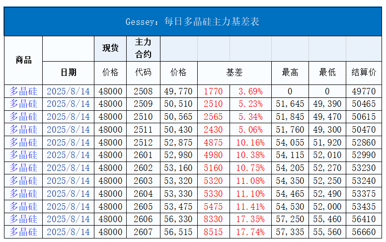 Gessey:8月14日每日光伏市場行情2025-08-14 19:08來源:gessey蓋(gai)錫新(xin)能源網瀏覽數:251次