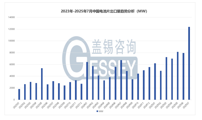2025年7月光伏電池片出口量井噴式增長,環比上升56%2025-08-21 17:30來源(yuan)(yuan):gessey蓋錫新(xin)能源(yuan)(yuan)網瀏覽數:231次