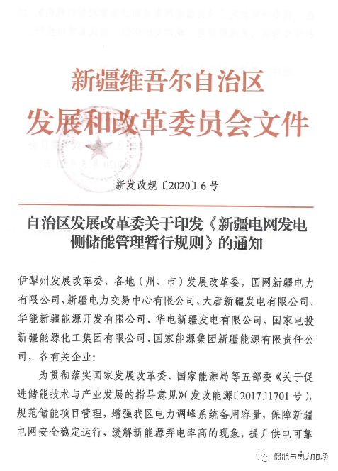 《新疆電網發電側儲能管理暫行規則》:新疆發電側儲能調峰補貼0.55元/kWh2020-05-29 17:36瀏覽數:178次