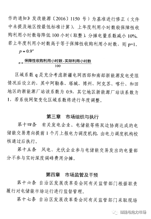 5月26日,新(xin)疆發改委印(yin)發了(le)《新(xin)疆電(dian)網發電(dian)側儲能(neng)管(guan)理暫(zan)行規則(ze)》,對根據電(dian)力調(diao)度機構指(zhi)令進(jin)入充電(dian)狀(zhuang)態的電(dian)儲能(neng)設施所充電(dian)的電(dian)量進(jin)行補償(chang),補償(chang)標準(zhun)為0.55元/千瓦時。 這一政(zheng)策(ce)的(de)發(fa)布,對(dui)儲能,尤其是光(guang)伏(fu)等新能源場站儲能來說,為解決光(guang)伏(fu)電站棄光(guang)逐漸減少后,儲能如何長期獲(huo)得收益的(de)關(guan)鍵問題,提供了一條可行的(de)路徑。 新疆發(fa)改委(wei)發(fa)布的正(zheng)式文件中,幾個關(guan)鍵的條款(kuan)可(ke)用下圖總結。 第(di)六(liu)條:鼓勵發(fa)電企(qi)業、售電企(qi)業、電力用(yong)戶、獨立輔(fu)助服務提供(gong)商(shang)等投資建(jian)設電儲能(neng)設施,要求充電功率在0.5萬千瓦(wa)及以(yi)上、持(chi)續充電時間(jian)2小時以(yi)上。 第七(qi)條(tiao):在火(huo)電廠(chang)發電上網關口內建設(she)(she)的(de)電儲能設(she)(she)施,與機(ji)組聯合參(can)與調峰,按照深度調峰管理、費(fei)用計算和補償。 第八條:在風(feng)電(dian)場、光伏電(dian)站發(fa)電(dian)上網關口內建設的電(dian)儲能設施,其(qi)充(chong)電(dian)能力(li)按照(zhao)《新疆電(dian)網電(dian)源側儲能電(dian)站調(diao)度運行管理規(gui)定》的要(yao)求,可(ke)申報為自用容(rong)(rong)量和(he)調(diao)峰可(ke)用容(rong)(rong)量。 第九條:自用容量由所在風電場和光伏電站(zhan)使(shi)用,釋放(fang)電量等同(tong)于發電廠發電量,按照(zhao)發電廠相關合同(tong)電價結算(suan),不參與市場結算(suan)。 第十條(tiao):在(zai)風電(dian)場、光(guang)伏(fu)電(dian)站發電(dian)上網關口內的儲能設(she)施也可自愿作(zuo)為獨立的電(dian)力用戶,申(shen)報調(diao)峰可用容量,并根據實際調(diao)用情況進行結(jie)算。 第十三條:電(dian)儲能設施根據電(dian)力(li)調度機構指令進入(ru)充電(dian)狀態(tai)的,對(dui)其充電(dian)電(dian)量(liang)進行補償,具體(ti)補償標準為0.55元/kWh。 敲(qiao)重(zhong)點(光伏儲能電站) 新規(gui)則的(de)(de)發布(bu),為光伏儲能電站提供了(le)兩種不同的(de)(de)運行模式: 1) 在棄光(guang)較(jiao)為嚴重(zhong)的(de)時期,光(guang)伏(fu)(fu)電(dian)(dian)(dian)(dian)站內儲(chu)能選擇(ze)儲(chu)能為自用容(rong)量(liang),存儲(chu)于(yu)儲(chu)能設備(bei)內的(de)電(dian)(dian)(dian)(dian)量(liang)經(jing)過市場電(dian)(dian)(dian)(dian)量(liang)的(de)方式(shi)放(fang)出,如(ru)果該電(dian)(dian)(dian)(dian)站享受(shou)0.9元(yuan)(yuan)/kWh的(de)光(guang)伏(fu)(fu)補貼政策(ce),即使市場合同電(dian)(dian)(dian)(dian)價為0元(yuan)(yuan)/kWh,儲(chu)能每放(fang)出1度電(dian)(dian)(dian)(dian),也可獲(huo)得0.9元(yuan)(yuan)/kWh的(de)收益。 2) 棄光逐漸(jian)減少,甚至沒有棄光的(de)時期,光伏電站內儲能(neng)選擇儲能(neng)為調(diao)峰可(ke)用容(rong)量,被(bei)電網調(diao)用后,可(ke)獲得0.55元(yuan)/kWh的(de)充(chong)電補貼,放電(據(ju)相關消息(xi))可(ke)按標桿(gan)上網電價0.25元(yuan)/kWh結算。 假設(she)按(an)最低(di)標(biao)準5MW/2h在光伏(fu)電站內(nei)配置儲能系(xi)統,儲能項(xiang)目成本(采用(yong)磷酸(suan)鐵鋰電池(chi)儲能系(xi)統)按(an)1.8元/kWh計(ji)算,全年運行330天,每天進行一次充放(fang)電操作,以上兩種模式下(xia),簡單計(ji)算儲能系(xi)統的(de)靜態回(hui)收期如下(xia)表(biao): 備注:全年330天(tian)的投運時間,非常(chang)理想(xiang),調(diao)峰時放電(dian)電(dian)價文件(jian)中未(wei)明確(que)說明,有(you)一定(ding)不可靠性。 盡管在這個政(zheng)(zheng)策(ce)(ce)下(xia),光(guang)伏電(dian)站儲能(neng)系統(tong)的投資收益(yi)期(qi)還較長,但新(xin)的政(zheng)(zheng)策(ce)(ce)給光(guang)伏電(dian)站儲能(neng)系統(tong)獲得持續性收益(yi)提供了依據,可(ke)認為有利于光(guang)伏儲能(neng)系統(tong)在新(xin)疆的發(fa)展。 2019年6月28日,新疆發(fa)改(gai)委和(he)新疆能(neng)監辦正(zheng)式聯合發(fa)布的《關于(yu)(yu)開展發(fa)電(dian)(dian)側光伏儲(chu)能(neng)聯合運(yun)行項目試點的通(tong)知》規(gui)(gui)定(ding),對于(yu)(yu)安裝(zhuang)有(you)儲(chu)能(neng)系統(tong)的光伏電(dian)(dian)站,每年增加100小時優先發(fa)電(dian)(dian)電(dian)(dian)量(liang),持續(xu)五(wu)年(從2020年開始實施)。但5年后如何支持,此文件并未說明(ming)。這次發(fa)布的《新疆電(dian)(dian)網發(fa)電(dian)(dian)側儲(chu)能(neng)管理暫行規(gui)(gui)則》在一定(ding)程(cheng)度上可認為是(shi)去年政策的持續(xu)。 附政策原文。