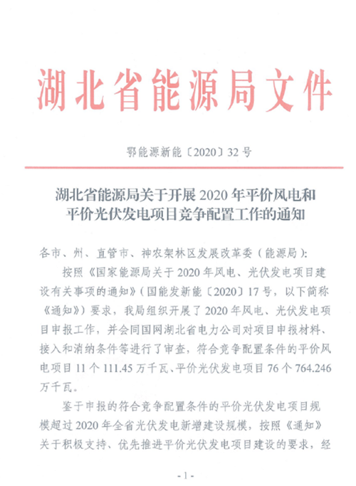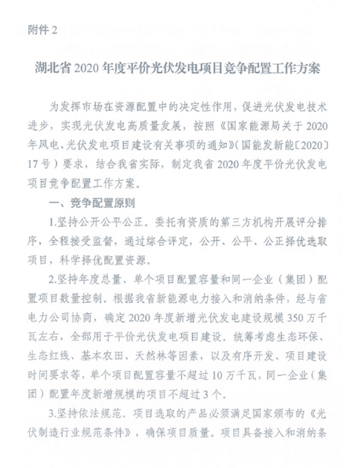 正式紅頭文件!7.64GW爭3.5GW 湖北發布平價光伏項目競爭配置方案(附項目名單)2020-06-09 21:08瀏覽數:2次
