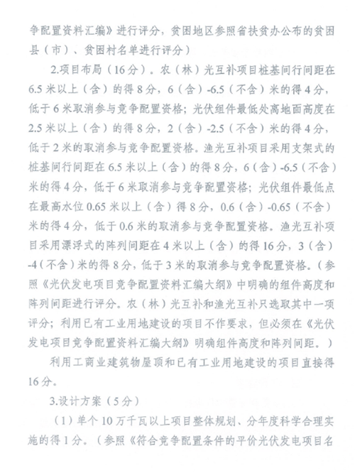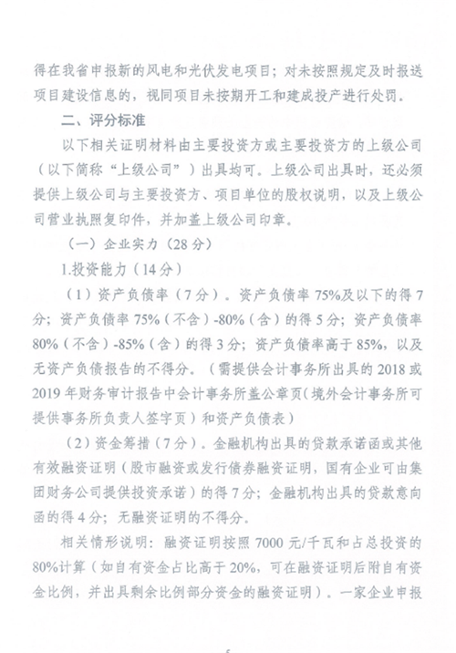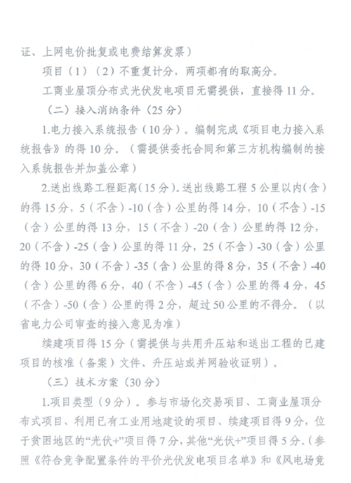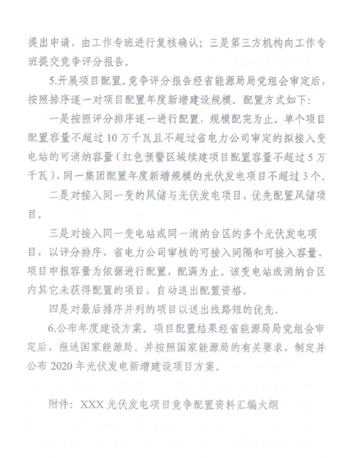 6月8日,湖北能源局發布了《關于開展2020年平價風電和平價光伏發電項目競爭配置工作的通知》,提出湖北省符合競爭配置條件的平價風電項目11個111.45萬千瓦、平價光伏發電項目76個764.246萬千瓦。 鑒于申報的符合競爭配置條件的平價光伏發電項目規模超過2020年全省光伏發電新增建設規模,經研究,確定2020年新增建設規模(風電50萬千瓦、光伏發電350萬千瓦)通過競爭配置方式全部用于平價風電和平價光伏發電項目建設。 簡而言之,上述76個764.246萬千瓦平價光伏項目還須通過競爭性配置爭搶3.5GW指標。 其中,競爭性配置評分標準分為企業能力25分、接入消納條件25分、技術方案30分、前期工作20分。 此外,項目需要在2020年年底前開工(開工標志為光伏場區樁基開始施工);容量5萬千瓦及以下的項目必須于2021年6月30日前全容量建成投產,容量5萬千瓦及以上的項目必須于2021年12月31日前全容量建成投產。 原文如下: 各市、州、直管市、神農架林區發展改革委(能源局): 按照《國家能源局關于2020年風電、光伏發電項目建設有關事項的通知》(國能發新能〔2020〕17號,以下簡稱《通知》)要求,我局組織開展了2020年風電、光伏發電項目申報工作,并會同國網湖北省電力公司對項目申報材料、接入和消納條件等進行了審查,符合競爭配置條件的平價風電項目11個111.45萬千瓦、平價光伏發電項目76個764.246萬千瓦。 鑒于申報的符合競爭配置條件的平價光伏發電項目規模超過2020年全省光伏發電新增建設規模,按照《通知》關于積極支持、優先推進平價光伏發電項目建設的要求,經研究,確定2020年新增建設規模(風電50萬千瓦、光伏發電350萬千瓦)通過競爭配置方式全部用于平價風電和平價光伏發電項目建設。 現將《湖北省2020年度平價風電項目競爭配置工作方案》《湖北省2020年度平價光伏發電項目競爭配置工作方案》,以及符合競爭配置條件的項目名單印發,請各市州發展改革委(能源局)按照競爭配置工作方案要求,組織做好競爭配置相關工作,并按時將相關資料以書面文件報送我局。項目比選結束后,項目競爭配置資料匯編省能源局留存1份,多余資料請各企業于評分排序公示結束后3天內到省能源局領回,逾期省能源局不再留存。 聯系人:新能源處 肖光武,電話:027-87894027 附件: 1.《湖北省2020年度平價風電項目競爭配置工作方案》 2.《湖北省2020年度平價光伏發電項目競爭配置工作方案》 3.符合競爭配置條件的平價風電項目名單 4.符合競爭配置條件的平價光伏發電項目名單 湖北省能源局 2020年6月8日