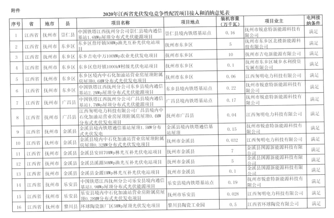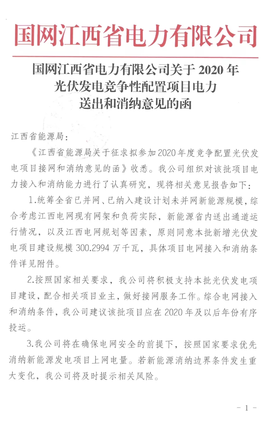 6月11日,國網江西發布關于2020年光伏發電競爭性配置項目電力送出和消納意見的函,根據文件,2020年江西參與競價的光伏項目共計286個,規模3GW。 其中大唐以610MW的規模絕對領先,其次是國家電投341.9MW、華能200MW、江西景森能源181.8MW、通威150MW、國開能源集團130MW、三峽100MW等。 文件原文如下: