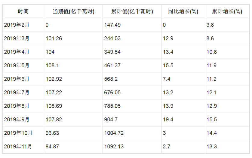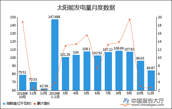 2019年1-11月全國太陽能發電量統計分析2020-01-08 21:51瀏覽數:3次