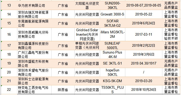 近期,市場監管總局公布了2019年并網光伏逆變器質量國家監督抽查情況。共抽查了7個省(市),包括華為,陽光,錦浪科技、禾望,固德威,特變電工、科士達在內的23家光伏逆變器企業生產的23批次光伏并(bing)網(wang)逆(ni)變(bian)器產(chan)品,其(qi)中(zhong)1批(pi)次(ci)產(chan)品不(bu)合格,不(bu)合格發(fa)現(xian)率為(wei)4.3%。 據了解本(ben)次檢查的重點是保(bao)護連接、接觸(chu)電(dian)流(常(chang)溫(wen))、固體(ti)絕緣(yuan)的工頻(pin)(pin)耐受電(dian)壓/工頻(pin)(pin)耐受電(dian)壓(常(chang)溫(wen))、額定輸入輸出/電(dian)氣參數驗證(zheng)、轉換效率(lv)(常(chang)溫(wen))、諧波(bo)和波(bo)形畸(ji)變(bian)(電(dian)流諧波(bo)總畸(ji)變(bian)率(lv))、功率(lv)因數、直流分量、交(jiao)流輸出側過/欠(qian)壓保(bao)護等9個項目,不合格項目為交(jiao)流輸出側過/欠(qian)壓保(bao)護。 整體來看光伏逆(ni)(ni)(ni)變(bian)器質量(liang)大幅提升,2017年光伏并網逆(ni)(ni)(ni)變(bian)器抽查合(he)格率不(bu)到80%,2018年全國光伏逆(ni)(ni)(ni)變(bian)器抽檢只有6.7%不(bu)合(he)格。