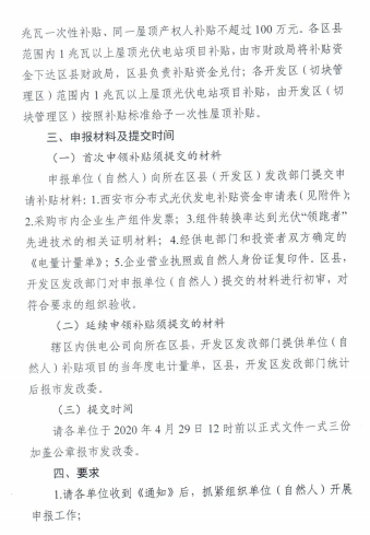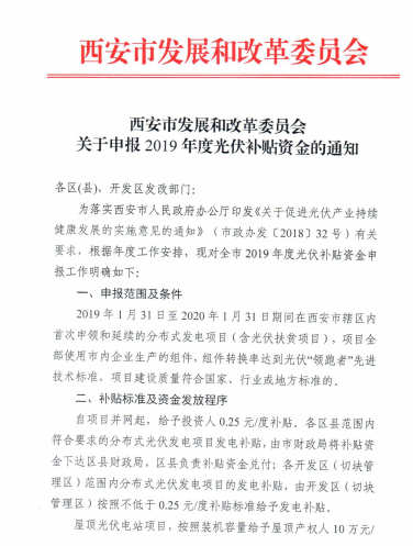 0.25元/度!陜西西安市發布申報2019年光伏補貼的通知2020-03-27 22:38瀏覽數:2次