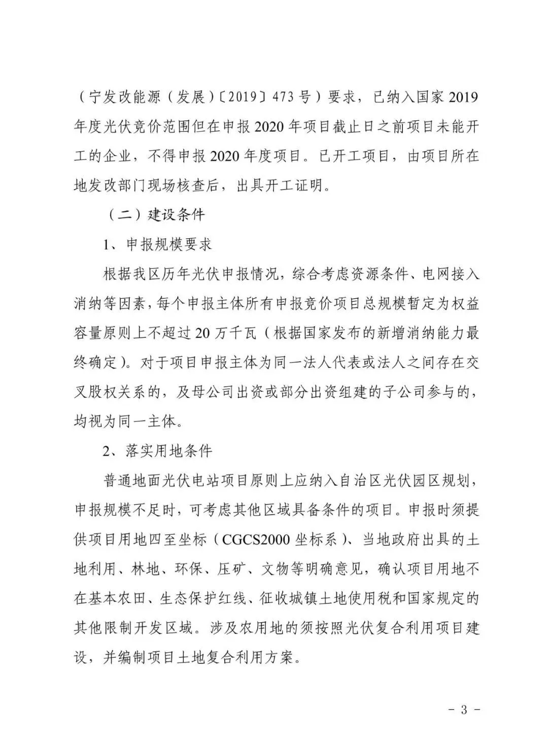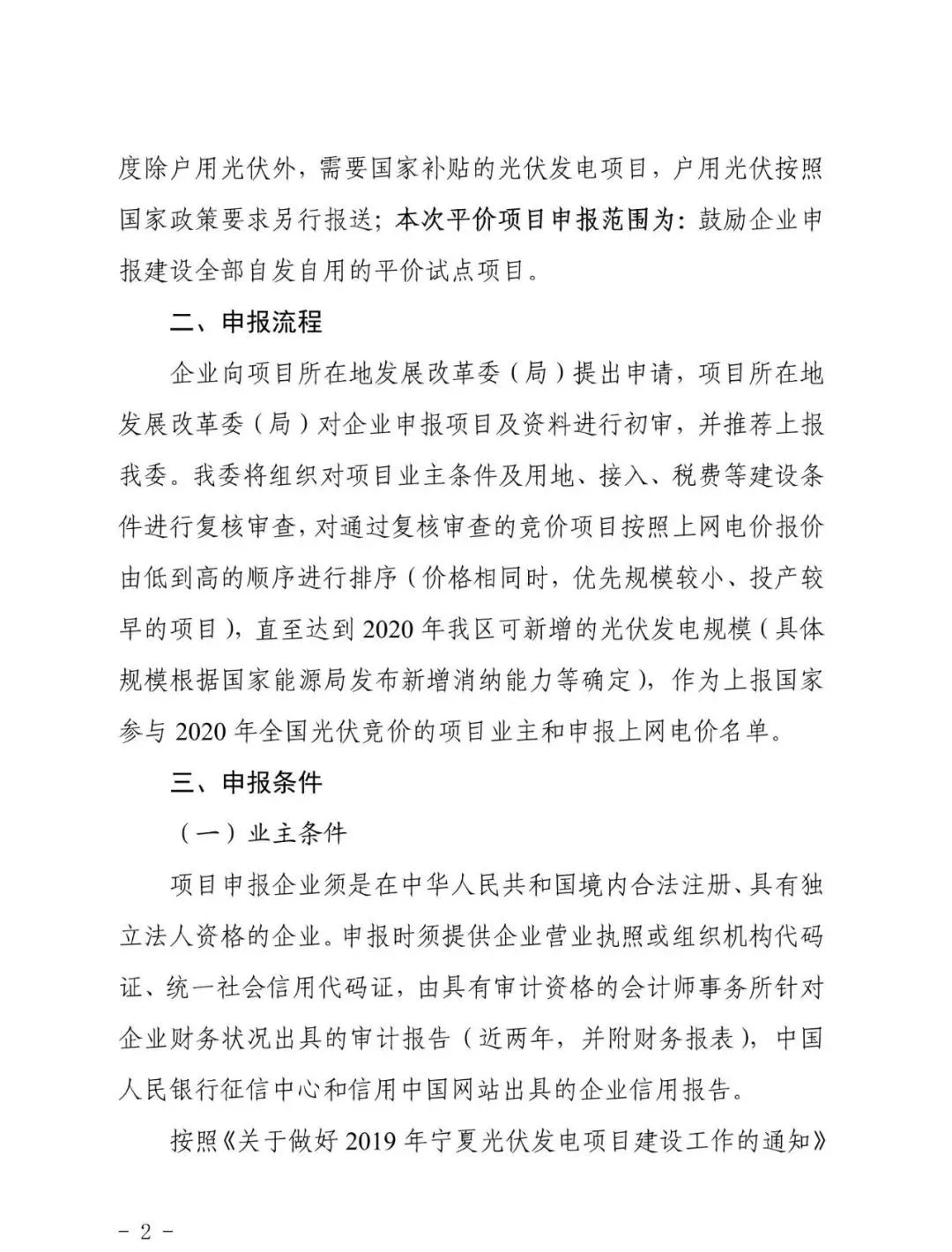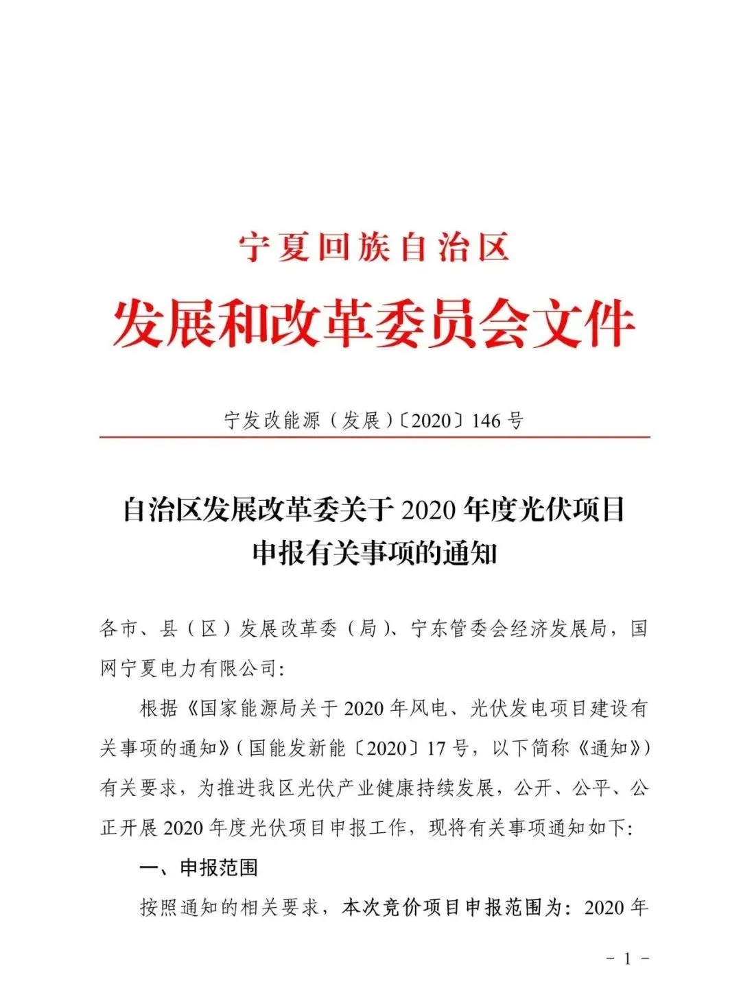 近日,寧夏發布關于2020年度光伏項目申報有關事項的通知,根據寧夏發改委文件要求,寧夏2020年光伏將不開展平價上網項目,全部消納空間用于競價上網項目。據國網發布的消納指標來看,預期將有1.25GW左右的項目通過省內競價,參與國家層面的競價。 此外,已納入2019年度光伏競價范圍但未在2020年5月31日前開工的企業,不得申報2020年度項目,原則上一個申報主體申請容量不超過200MW。5月31日前,需報送相關資料至發改委。 以下為文件原文: