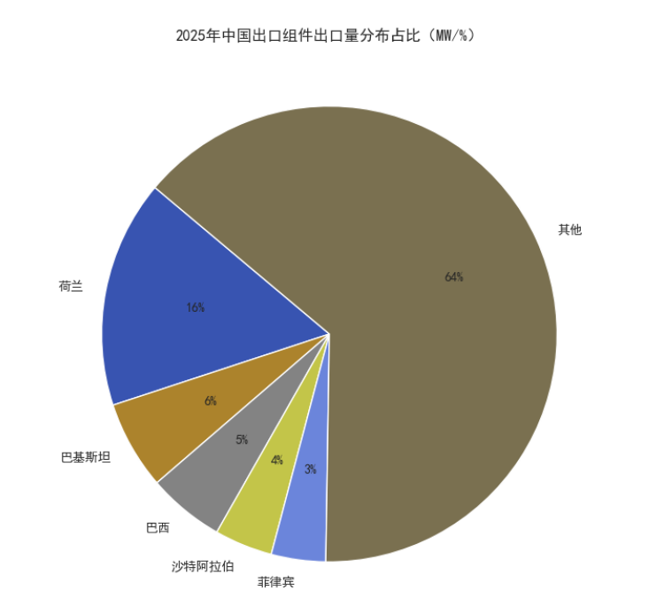 1-8月中國光伏組件累計出口量為166.1GW 8月組(zu)件(jian)出(chu)口(kou)量(liang)(liang)大(da)幅提(ti)上,8月出(chu)口(kou)量(liang)(liang)環比上升(sheng)29.7%,同(tong)(tong)比上升(sheng)21.6%。2025年1-8月,中(zhong)國光伏(fu)(fu)組(zu)件(jian)累(lei)計出(chu)口(kou)量(liang)(liang)為(wei)166.1GW,同(tong)(tong)比下降(jiang)(jiang)3.0%。2025年1-8月,中(zhong)國光伏(fu)(fu)組(zu)件(jian)累(lei)計出(chu)口(kou)金額為(wei)15.9億美元(yuan),同(tong)(tong)比下降(jiang)(jiang)21.6%。 2025組件出口變化量分析: 2025年8月組件出口前五國家分布 根據(ju)出口量排名來看8月中國(guo)光伏組(zu)件(jian)的(de)前(qian)五(wu)大(da)出口國(guo)家分別(bie)為:荷蘭, 巴基斯坦, 巴西(xi), 沙特阿(a)拉伯(bo), 菲律賓。 往年7-8月份(fen)均(jun)為(wei)行(xing)業(ye)歐洲行(xing)業(ye)淡季(ji),但是(shi)今(jin)年淡季(ji)不淡,中國光伏組件出(chu)(chu)口(kou)的(de)荷蘭1-8月出(chu)(chu)口(kou)25807.9MW,累(lei)計(ji)MW同比下降27.7%。8月環(huan)比上升(sheng)38.5%,同比上升(sheng)4.5%。均(jun)價環(huan)比下降13.0%,同比下降9.3%。基于(yu)國內(nei)中國出(chu)(chu)口(kou)退稅(shui)取(qu)消的(de)傳(chuan)聞刺(ci)激下,一(yi)方面,國內(nei)組件企(qi)業(ye)提前發貨(huo)港口(kou)備貨(huo),另外一(yi)方面客戶提前釋放(fang)訂單(dan),避免出(chu)(chu)口(kou)退稅(shui)取(qu)消后促(cu)使的(de)成本(ben)上升(sheng)。 除(chu)了荷蘭外,中國(guo)光伏組件出口(kou)的(de)巴基斯坦1-8月出口(kou)15221.9MW,累計MW同比(bi)(bi)上升(sheng)34.2%。8月環(huan)比(bi)(bi)上升(sheng)80.1%,同比(bi)(bi)上升(sheng)30.4%。均價環(huan)比(bi)(bi)下降1.2%,同比(bi)(bi)下降8.9%。巴基斯坦依(yi)然(ran)躍升(sheng)為8月出口(kou)第二大市場(chang)。 中國(guo)光伏(fu)組件出口的巴西(xi)1-8月出口8992.5MW,累計(ji)MW同(tong)比下(xia)(xia)降(jiang)40.9%。8月環比上升(sheng)58.4%,同(tong)比下(xia)(xia)降(jiang)21.6%。均價環比下(xia)(xia)降(jiang)4.3%,同(tong)比下(xia)(xia)降(jiang)11.4%。 中國光伏組件(jian)出口(kou)的沙特阿拉伯1-8月出口(kou)6527.1MW,累計MW同(tong)比(bi)(bi)(bi)下(xia)降42.7%。8月環(huan)比(bi)(bi)(bi)下(xia)降5.5%,同(tong)比(bi)(bi)(bi)下(xia)降44.3%。均價環(huan)比(bi)(bi)(bi)上升14.1%,同(tong)比(bi)(bi)(bi)上升35.2%。 中國光(guang)伏組件出口的(de)菲律(lv)賓1-8月(yue)出口4572.6MW,累計MW同(tong)(tong)比上(shang)(shang)升110.7%。8月(yue)環(huan)比上(shang)(shang)升13.0%,同(tong)(tong)比上(shang)(shang)升639.3%。均價環(huan)比上(shang)(shang)升12.5%,同(tong)(tong)比上(shang)(shang)升16.2%。 今年來政策導(dao)向下(xia)行業(ye)競爭(zheng)格(ge)(ge)局(ju)正在優(you)化,前期”430”,“530“促(cu)使分布式市場搶裝下(xia)組(zu)件價(jia)(jia)格(ge)(ge)居高不(bu)下(xia),從海(hai)外(wai)市場客戶角度(du)看(kan),國內”反內卷“導(dao)向下(xia),上游(you)(you)材料價(jia)(jia)格(ge)(ge)持續上漲,上游(you)(you)價(jia)(jia)格(ge)(ge)持續上漲下(xia),后續或傳導(dao)至組(zu)件成本上漲,價(jia)(jia)格(ge)(ge)推高,另(ling)一方面疊(die)加出(chu)口退稅或取消傳聞,促(cu)使8月份出(chu)口出(chu)口大幅提振。