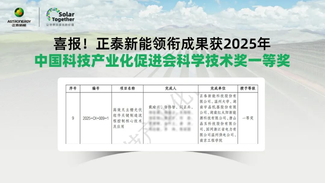 9月(yue)26日(ri),中國(guo)科(ke)(ke)技產(chan)業(ye)(ye)化(hua)促進會(hui)發布(bu)《關于第五(wu)屆中國(guo)科(ke)(ke)技產(chan)業(ye)(ye)化(hua)促進會(hui)科(ke)(ke)學(xue)技術(shu)(shu)獎(jiang)(jiang)(jiang)獎(jiang)(jiang)(jiang)勵(li)的決定》。正泰新能主(zhu)持(chi)完(wan)成的項(xiang)目成果“高效無(wu)主(zhu)柵(zha)光伏(fu)組(zu)件關鍵制造流程控制核心技術(shu)(shu)及應用”獲中國(guo)科(ke)(ke)技產(chan)業(ye)(ye)化(hua)促進會(hui)科(ke)(ke)學(xue)技術(shu)(shu)獎(jiang)(jiang)(jiang)一等獎(jiang)(jiang)(jiang)。 “高效無主柵光伏組件關鍵制(zhi)造流(liu)程(cheng)控制(zhi)核心技術及(ji)應用(yong)”項目(mu)由正泰新(xin)能牽頭(tou),與溫州大(da)學等單位(wei)共(gong)同完成(cheng)(cheng),該項創新(xin)成(cheng)(cheng)果已(yi)成(cheng)(cheng)功實現規模化量產,在(zai)一系列(lie)貼近(jin)民生、引領商業模式的標桿項目(mu)中得到生動體現。 在(zai)江蘇昆山(shan)一座18kW的別(bie)墅(shu)屋頂光伏項目(mu)中,正泰(tai)(tai)新能(neng)與(yu)(yu)正泰(tai)(tai)安(an)能(neng)聯合(he)打造了(le)(le)一套光儲充熱整體解決方案。該(gai)項目(mu)在(zai)屋頂上安(an)裝了(le)(le)多塊ASTRO N7s全黑組件,將清(qing)潔能(neng)源發(fa)(fa)電功能(neng)與(yu)(yu)高(gao)端住宅(zhai)建筑美學無(wu)縫融合(he)。自2025年5月并網后,預計年發(fa)(fa)電量可(ke)達約26338度(du),不僅(jin)能(neng)滿(man)足家庭大部分用電需(xu)求,每年還可(ke)減少(shao)二氧(yang)化碳排(pai)放(fang)超7.9噸,實現了(le)(le)環境價值(zhi)(zhi)與(yu)(yu)經濟價值(zhi)(zhi)的共贏,為(wei)高(gao)端綠色建筑領域樹(shu)立了(le)(le)全新標桿。 同時,該技術(shu)也(ye)正(zheng)驅(qu)動(dong)著(zhu)綠色交(jiao)通基礎設施的(de)(de)(de)升級。在蔚來(lai)杭州(zhou)首座光儲充換(huan)一(yi)(yi)體站(zhan)中,正(zheng)泰(tai)新能的(de)(de)(de)組件成為(wei)其綠色能源生態(tai)的(de)(de)(de)關鍵一(yi)(yi)環。這座采取“換(huan)電站(zhan)加裝光伏”模(mo)式的(de)(de)(de)一(yi)(yi)體站(zhan),集(ji)成了(le)光伏發(fa)電、儲能技術(shu)和換(huan)電服務(wu),能夠為(wei)電動(dong)汽車(che)提供便捷、高效、多元且綠色的(de)(de)(de)能源補(bu)給。該站(zhan)不(bu)僅是新能源汽車(che)產業與可再生能源深度融合(he)的(de)(de)(de)典范,也(ye)是正(zheng)泰(tai)新能憑借(jie)先(xian)進(jin)組件技術(shu),助(zhu)力“出(chu)行(xing)碳中和”的(de)(de)(de)完美(mei)實踐(jian),在行(xing)業內樹立了(le)新的(de)(de)(de)綜合(he)能源服務(wu)示(shi)范性標桿。 中國科(ke)(ke)技(ji)(ji)產業(ye)化促(cu)進會科(ke)(ke)學(xue)技(ji)(ji)術獎是經國家科(ke)(ke)學(xue)技(ji)(ji)術獎勵工(gong)作辦公室批準(zhun)設立的社會科(ke)(ke)技(ji)(ji)獎項,由中國科(ke)(ke)技(ji)(ji)產業(ye)化促(cu)進會評選,旨在充分調動廣大(da)科(ke)(ke)學(xue)技(ji)(ji)術工(gong)作者、科(ke)(ke)研(yan)單位和科(ke)(ke)技(ji)(ji)企業(ye)的積極性(xing)和創造(zao)性(xing),助(zhu)力(li)科(ke)(ke)技(ji)(ji)成(cheng)果轉移轉化和產業(ye)化,助(zhu)力(li)國民經濟建設和社會發展(zhan)。 此次正(zheng)泰(tai)新能榮獲一(yi)等獎,不(bu)僅(jin)代(dai)表著(zhu)一(yi)項技術(shu)(shu)榮譽,更意味著(zhu)無主(zhu)柵(zha)技術(shu)(shu)作為下一(yi)代(dai)高性(xing)能光伏(fu)組件(jian)的(de)重要發展方向,已獲得(de)產(chan)業界(jie)的(de)廣泛認同(tong),市場應用前景廣闊。未來(lai),正(zheng)泰(tai)新能將(jiang)繼續(xu)深化(hua)在高效(xiao)光伏(fu)技術(shu)(shu)領域的(de)研(yan)發投入(ru),持續(xu)引領產(chan)業進步,為構建清(qing)潔、低碳、安(an)全、高效(xiao)的(de)新型能源體系貢獻“正(zheng)泰(tai)力(li)量”。 上一篇: 上能電氣與中石油濟柴簽署框架合作協議
